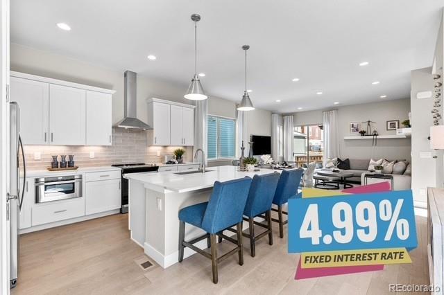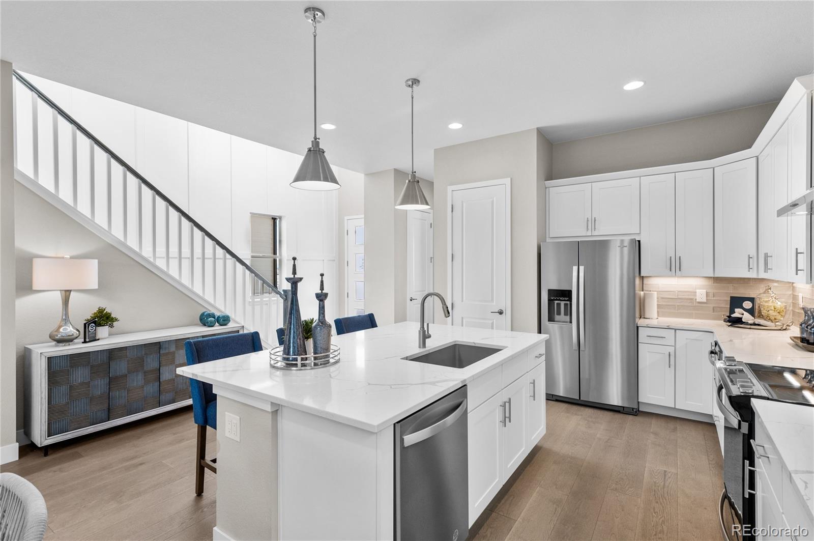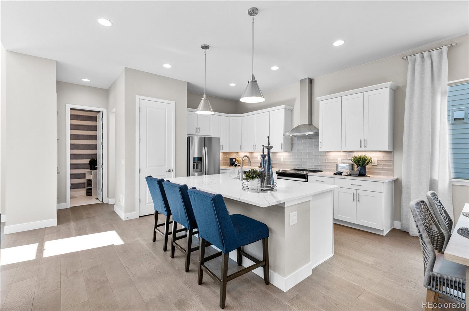 NOW IS YOUR CHANCE TO OWN A BERKELEY HOMES MODEL HOME AND TAKE ADVANTAGE OF BERKELEY HOMES SPECIAL OFFER 4.99% 30 YEAR FIXED RATE PLUS $25k BUILDER FINANCING INCENTIVE that can be utilized towards rate buy-downs, closing costs, or further price reduction. TOO MANY DESIGNER UPGRADES TO COUNT! This home includes upgraded Whirlpool appliances, quartz counter tops, main floor study, living and dining spaces! Upstairs features primary suite with walk in closet, two secondary bedrooms and loft. Attached 2 car garage, covered front porch and extended outdoor living space for you to enjoy Colorado summer evenings. Full finished basement with 9' ceilings. Front yard landscaping is included and maintained. Located in Painted Prairie, Denver Metro's newest Neo-traditional residential community that includes 129 acres of open space parks, trails, community gardens and green spaces. Located near The Gaylord and the new Town Center that is coming soon!