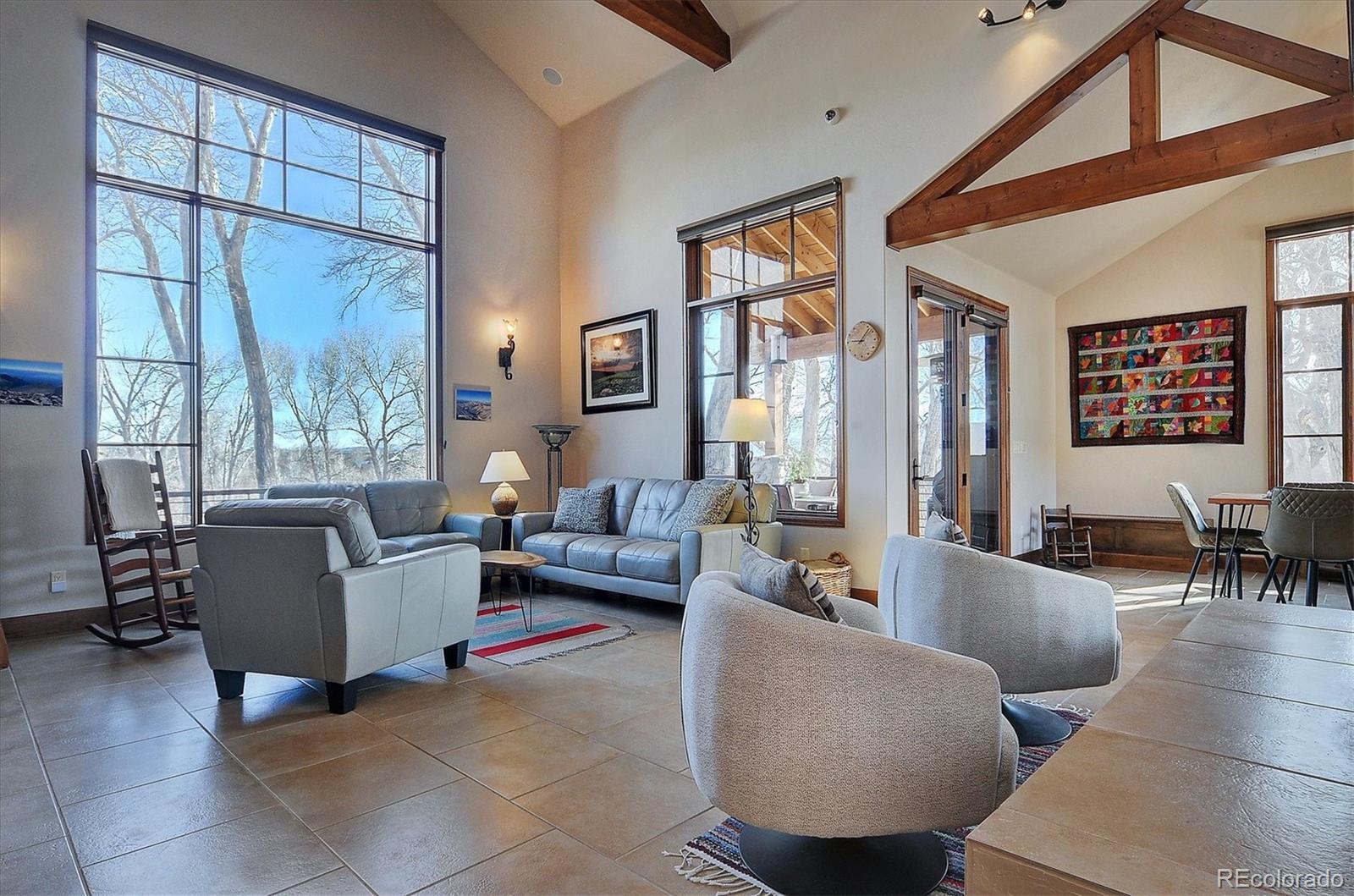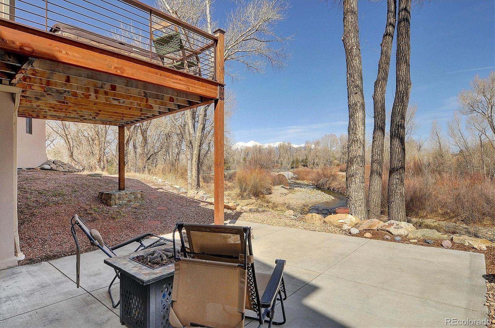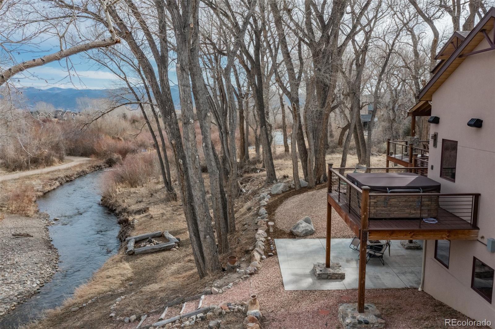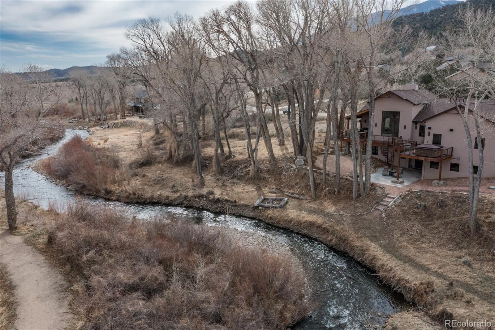 Looking for your very own in-town oasis? This home's setting is absolutely gorgeous. River frontage, trees, public utilities, south facing driveway, all nestled along the South Arkansas River! Here you can enjoy your own private river access where fishing is literally right out your door. This roomy custom 3 bedroom home has stunning views in every direction, allowing each window to frame a perfect mountain setting from Methodist Mountain to the Collegiate Peaks, the Sangres, even Tenderfoot Mountain and Chipeta! You will have plenty of space for your hobbies, projects, and fitness activities. Speaking of fitness, Little River Ranch has a recreational trail that traverses several miles all within the subdivision! What truly makes this home unique are the soaring vaulted ceilings and timber accents in the Great Room. You will appreciate the sophisticated extra touches including the dual facing fireplace, expansive wood countered kitchen island, luxurious steam shower, and tall ceilings throughout. Homes with river frontage don't come along often. Add to that public land across the river and a conservation easement to the west, it's a rare find that's ideally located 5 minutes from the City of Salida! Take a look through the 3D tour, then contact us today to make an appointment to tour this exceptional property in person. This home requires 24 hours notice for showings. Note: The adjoining 0.58 acre vacant parcel to the east presents an exceptional opportunity for inclusion in the offering, available for an additional $300,000.