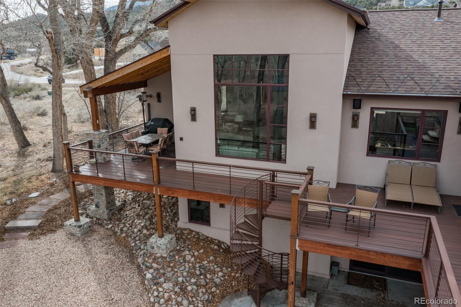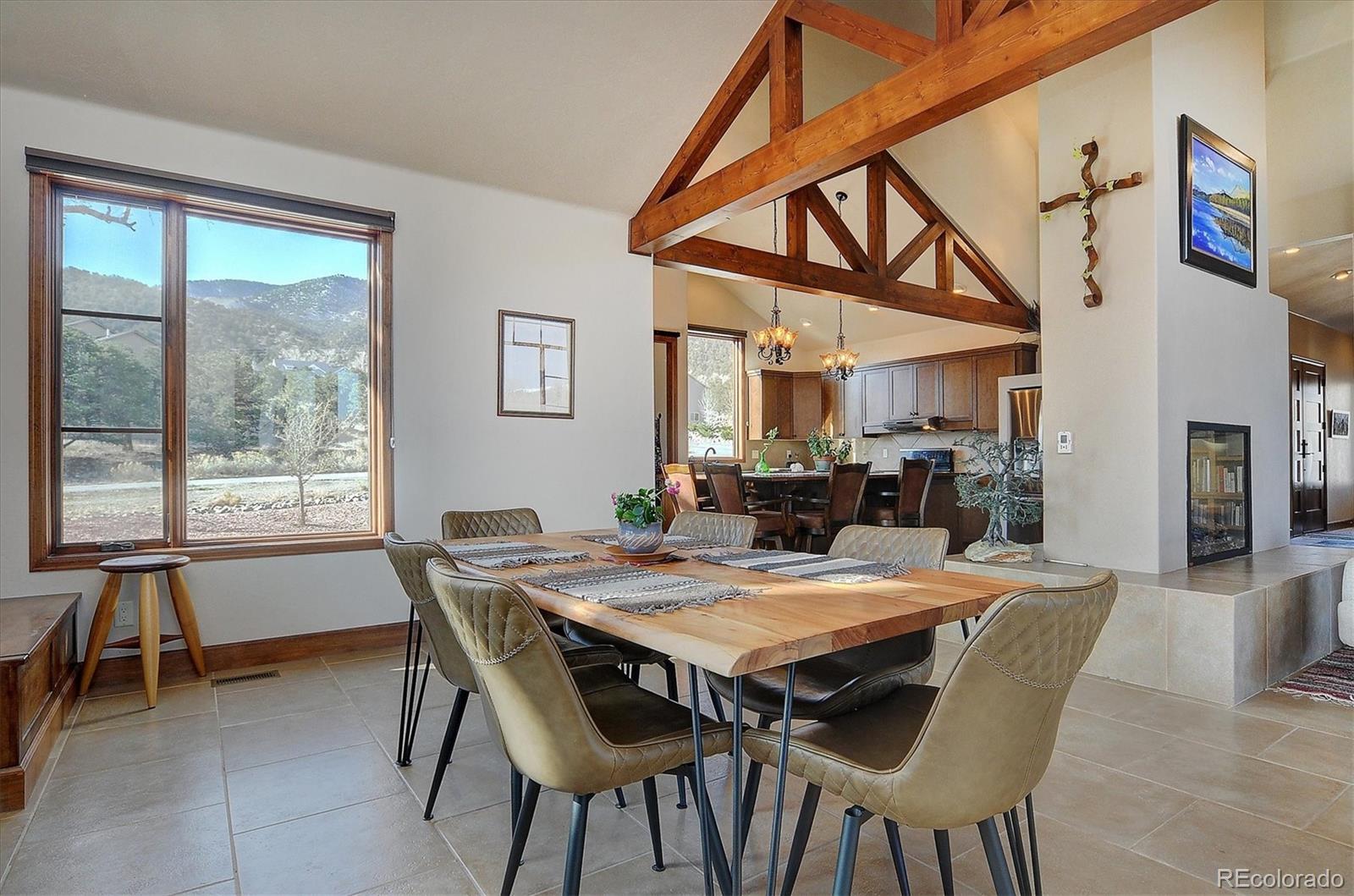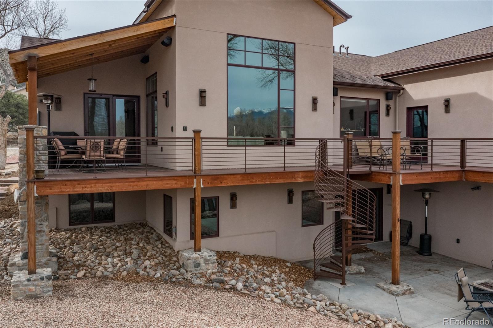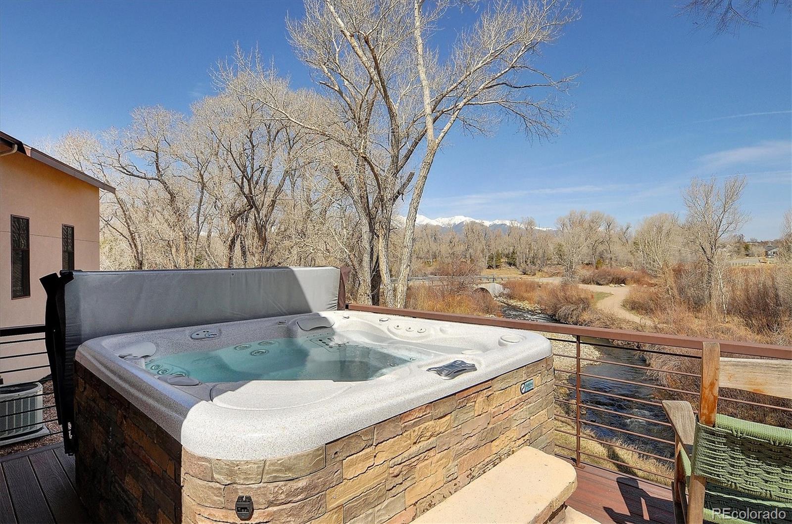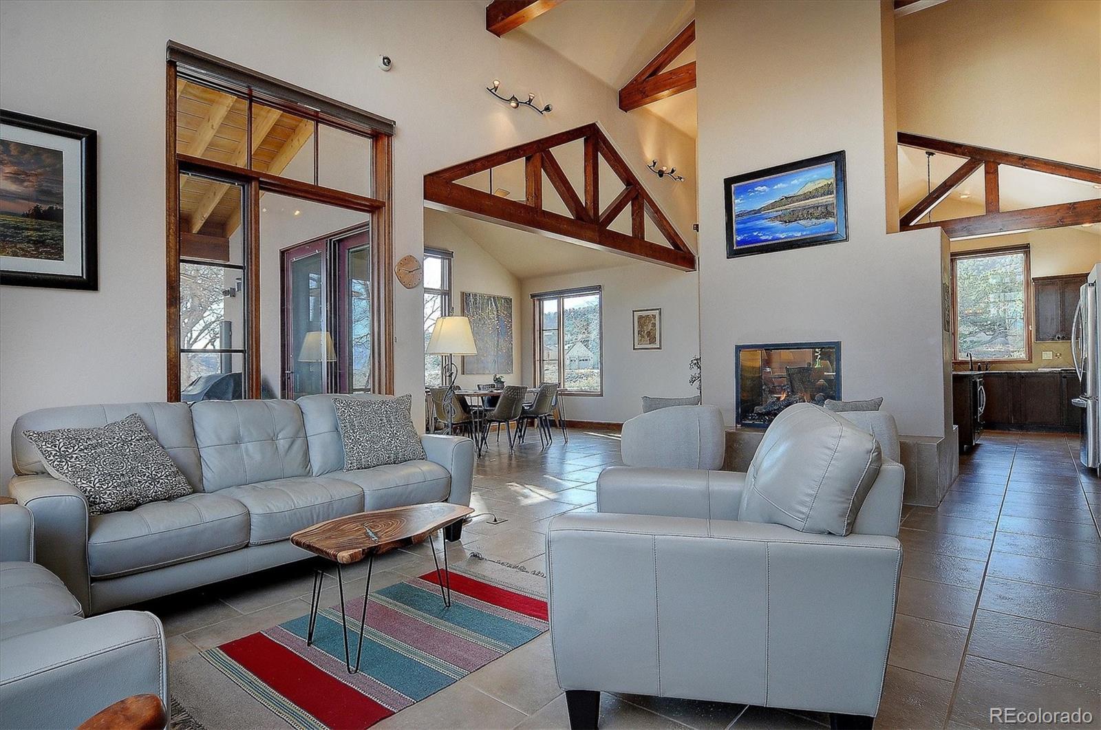 Looking for your very own in-town oasis? This home's setting is absolutely gorgeous. River frontage, trees, public utilities, south facing driveway, all nestled along the South Arkansas River! Here you can enjoy your own private river access where fishing is literally right out your door. This roomy custom 3 bedroom home has stunning views in every direction, allowing each window to frame a perfect mountain setting from Methodist Mountain to the Collegiate Peaks, the Sangres, even Tenderfoot Mountain and Chipeta! You will have plenty of space for your hobbies, projects, and fitness activities. Speaking of fitness, Little River Ranch has a recreational trail that traverses several miles all within the subdivision! What truly makes this home unique are the soaring vaulted ceilings and timber accents in the Great Room. You will appreciate the sophisticated extra touches including the dual facing fireplace, expansive wood countered kitchen island, luxurious steam shower, and tall ceilings throughout. Homes with river frontage don't come along often. Add to that public land across the river and a conservation easement to the west, it's a rare find that's ideally located 5 minutes from the City of Salida! Take a look through the 3D tour, then contact us today to make an appointment to tour this exceptional property in person. This home requires 24 hours notice for showings. Note: The adjoining 0.58 acre vacant parcel to the east presents an exceptional opportunity for inclusion in the offering, available for an additional $300,000.