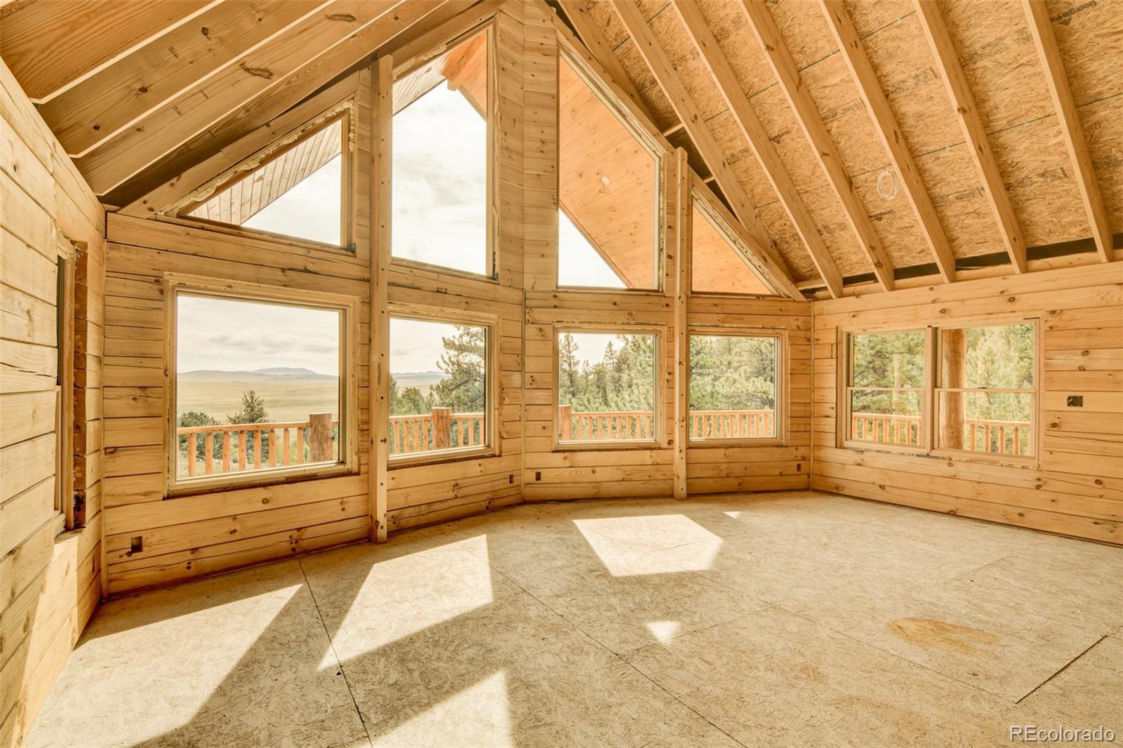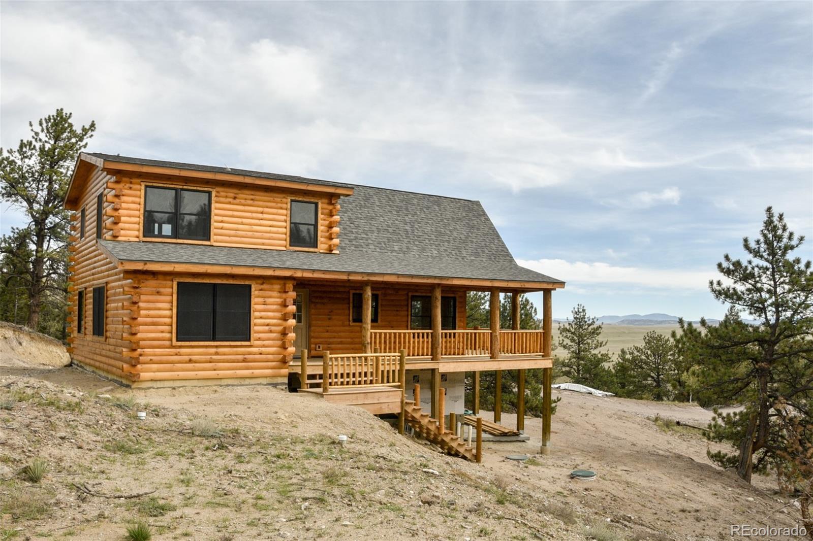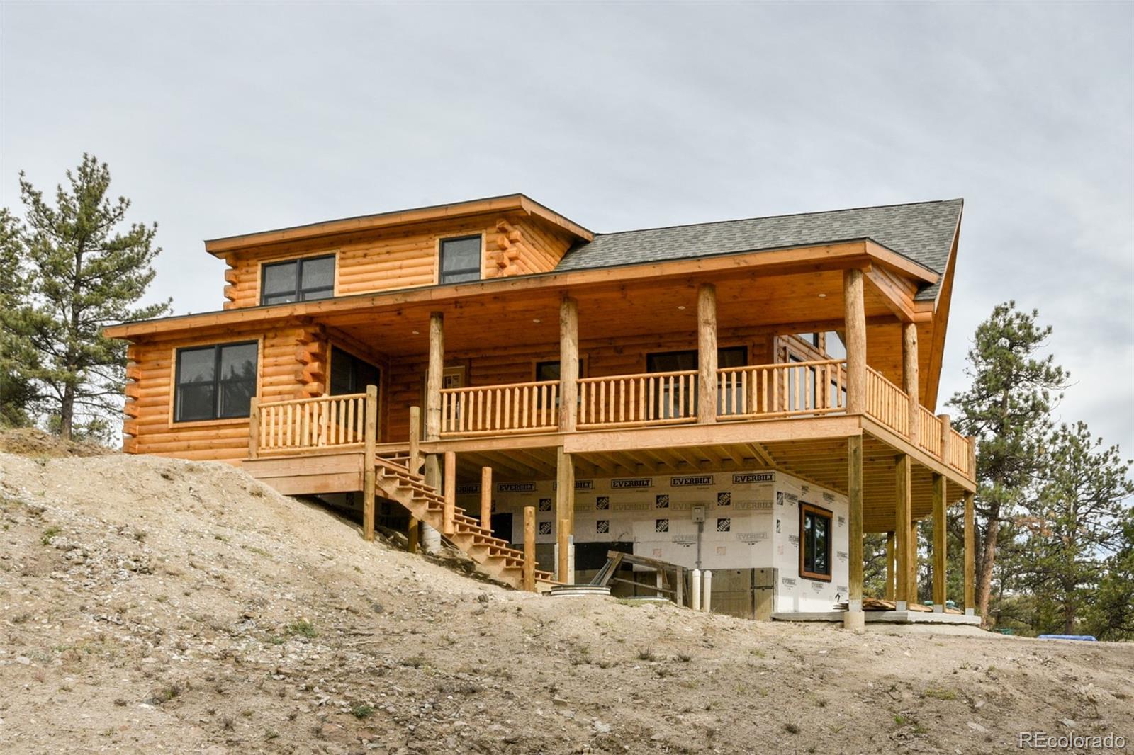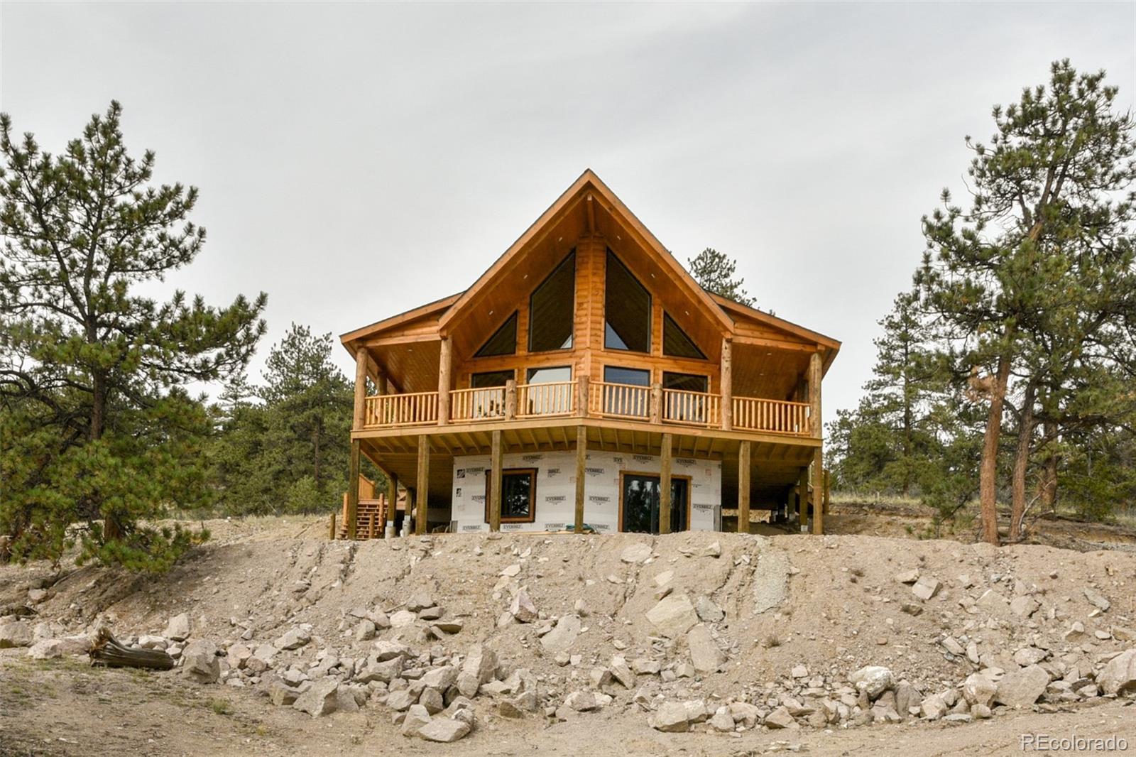 This spectacular mountain D-log home is unfinished. Designed to be a three bedroom, three bathroom, with bonus room. Total square feet is 3,107 on three floors including walk out basement. The home has 5 acres of extreme privacy and unobstructed views of Pikes Peak! The cabin exterior was just stained and roof installed. Septic, electrical, and well are now installed. You will take notice of the large walk around covered deck and floor to ceiling Anderson windows looking out over incredible scenery of South Park. There are many custom features like the use of natural tree trunks for support of deck roof and tree trunk for the ridge beam. The solid Douglas Fir staircase is special and Eastern White Pine deck and stair railings are nice touches. HOA includes central trash service, dog park, pavilion, and a stocked fishing reservoir for all property owners and guests. You are close to world class fishing, hiking, ATV trails, skiing, and biking. Colorado Springs and Denver are a short drive away. If you are looking for a true legacy property located in the heart of the Colorado mountains, it does not get any better than this. Come check it out!