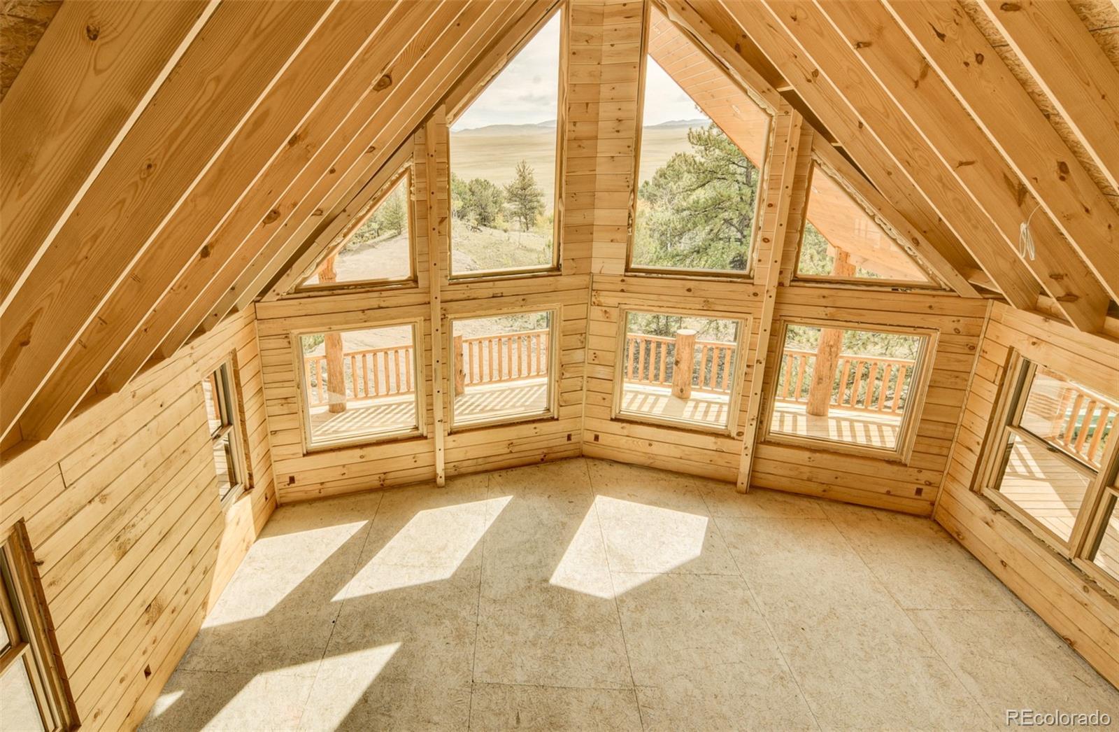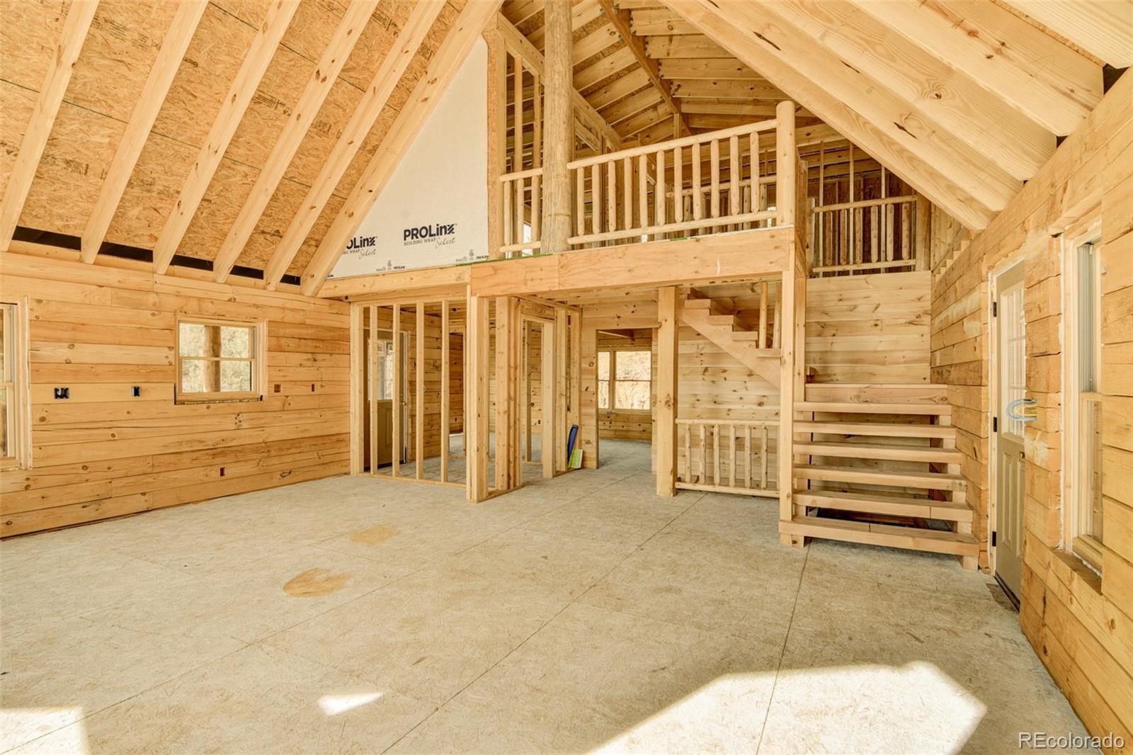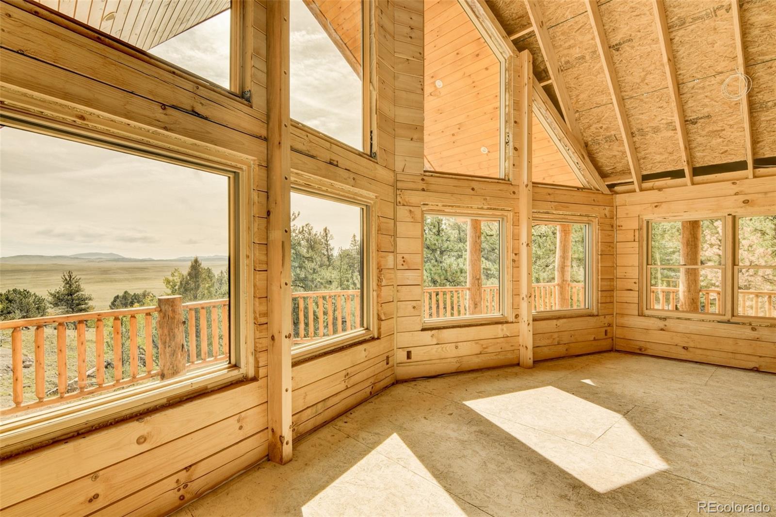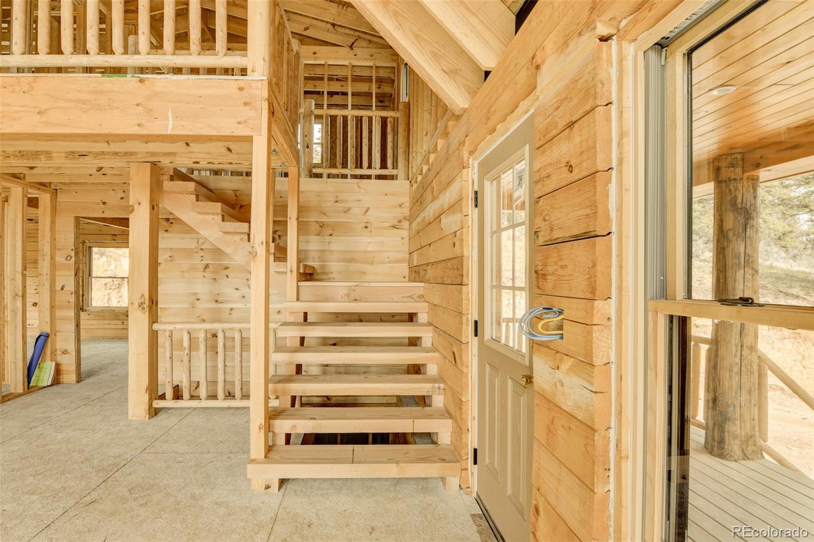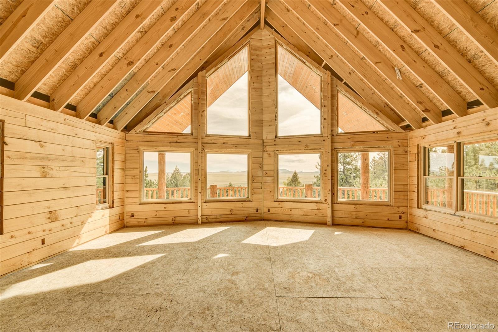 This spectacular mountain D-log home is unfinished. Designed to be a three bedroom, three bathroom, with bonus room. Total square feet is 3,107 on three floors including walk out basement. The home has 5 acres of extreme privacy and unobstructed views of Pikes Peak! The cabin exterior was just stained and roof installed. Septic, electrical, and well are now installed. You will take notice of the large walk around covered deck and floor to ceiling Anderson windows looking out over incredible scenery of South Park. There are many custom features like the use of natural tree trunks for support of deck roof and tree trunk for the ridge beam. The solid Douglas Fir staircase is special and Eastern White Pine deck and stair railings are nice touches. HOA includes central trash service, dog park, pavilion, and a stocked fishing reservoir for all property owners and guests. You are close to world class fishing, hiking, ATV trails, skiing, and biking. Colorado Springs and Denver are a short drive away. If you are looking for a true legacy property located in the heart of the Colorado mountains, it does not get any better than this. Come check it out!