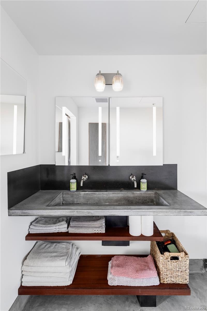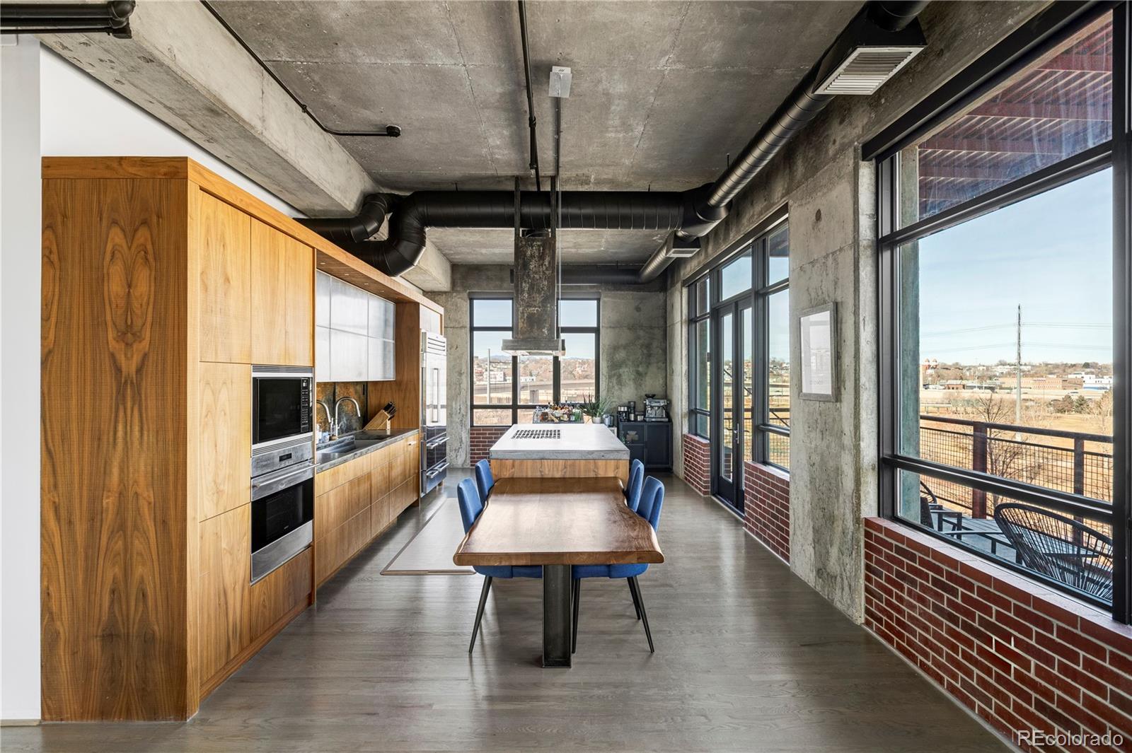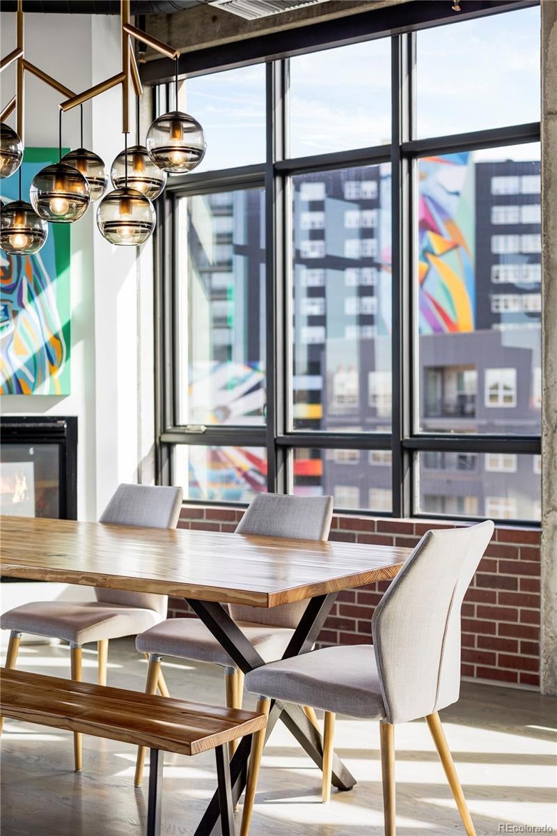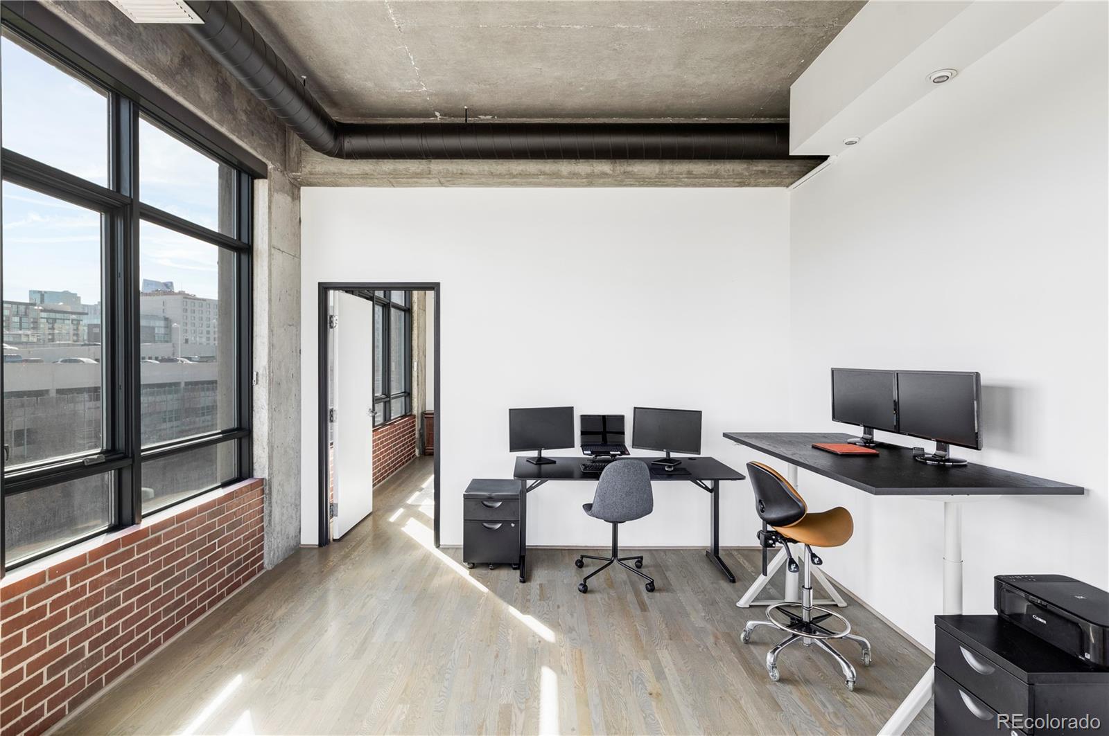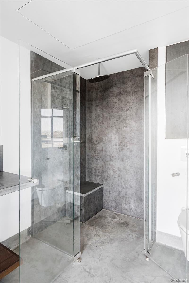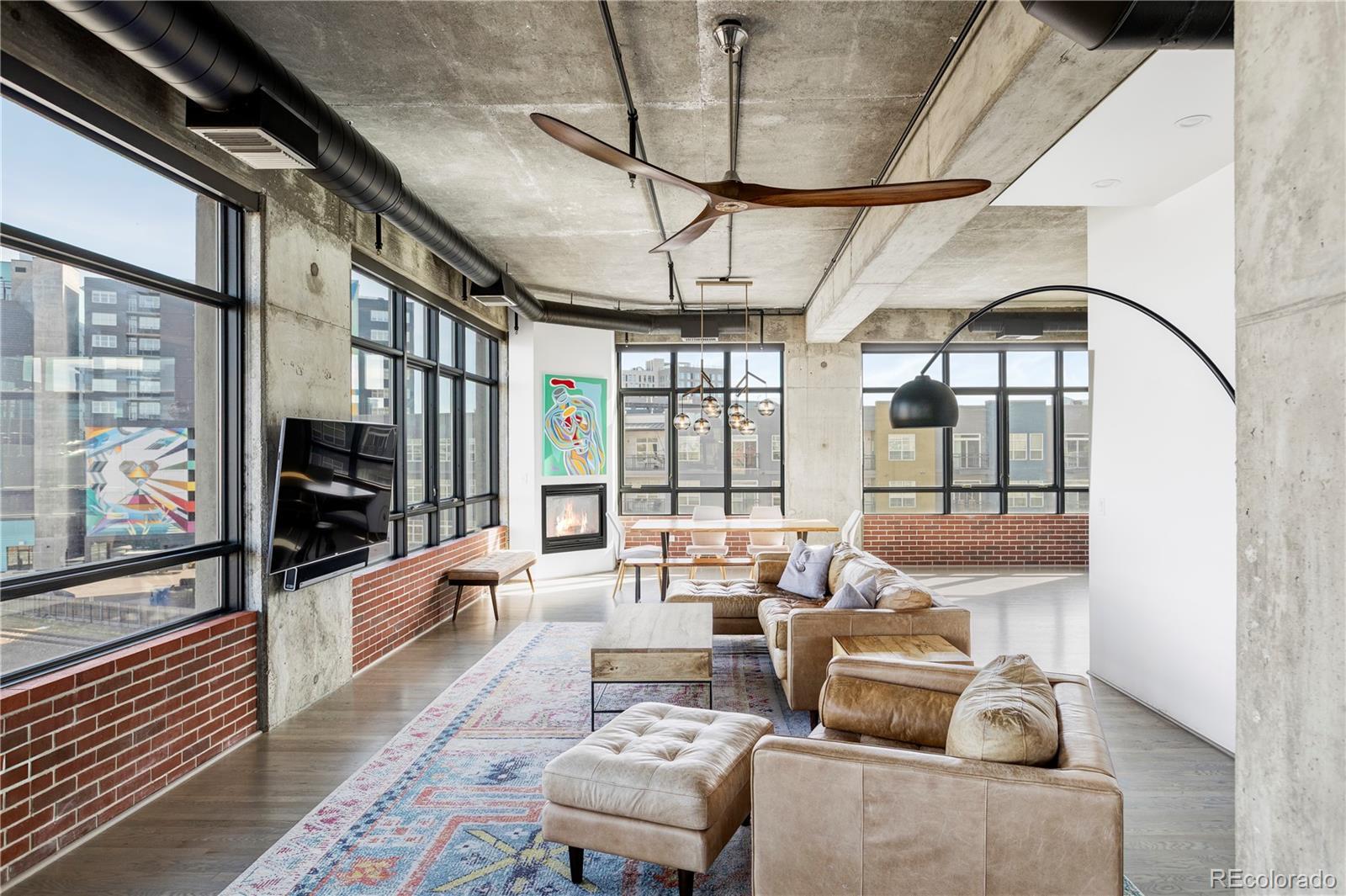 Extensively remodeled 2-bedroom + den + office nook, 2.5-bath end-unit loft in the iconic Flour Mill Lofts, one of downtown Denver’s most architecturally distinctive historic buildings. This light-filled residence offers an open industrial aesthetic and expansive windows with sweeping city, mountain, and park views. The thoughtfully designed floor plan flows seamlessly from the chef’s kitchen into dining, living, and flexible workspace areas—ideal for both everyday living and entertaining. The custom kitchen features premium Wolf and Sub-Zero appliances, abundant walnut cabinetry, a striking metal hood and backsplash, and a large Galley workstation sink designed for serious cooking and hosting. Both spacious bedrooms include en-suite bathrooms, walk-in closets, and automated blackout shades for comfort and privacy. The primary suite also features a custom concrete vanity, floating wood shelving, glass shower, and heated concrete flooring. Additional highlights include: Large private balcony with gas hookup Interior den/flex space suitable for office, nursery, gym, or storage Dedicated office nook within the main living area Hardwood flooring and modernized systems Two side-by-side parking spaces and two adjacent storage units Located directly on Cuernavaca Park with immediate access to riverfront trails, Union Station, RiNo, and downtown amenities, Flour Mill Lofts combines historic character, strong community appeal, and unbeatable urban convenience.