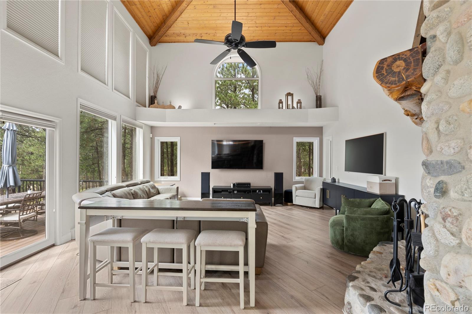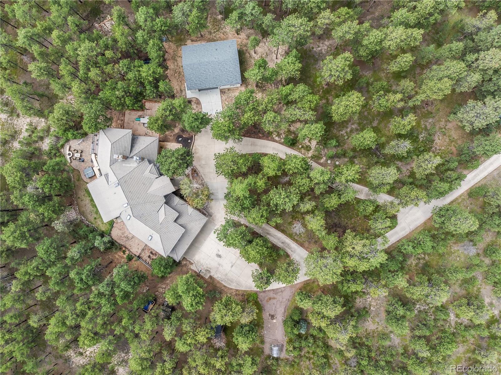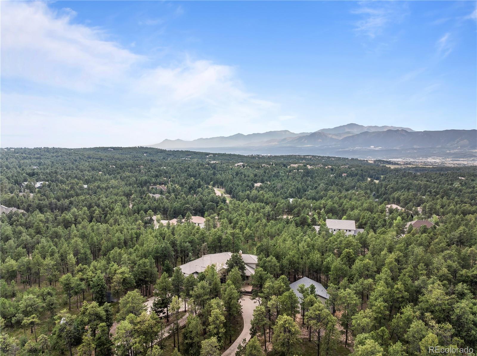 Situated on 3.5 wooded acres in the coveted Bent Tree community, this custom home combines timeless Colorado architecture with THOUSANDS in thoughtful updates. Designed for both comfort and lifestyle, the property offers unmatched privacy in the pines with sweeping Pikes Peak and Air Force Academy views. Recent improvements include $20k in mini-split air conditioning units on the main and upper levels, new energy-efficient windows across the back of the home, and luxury vinyl plank flooring throughout much of the home. A custom dog wash, refreshed kitchen with dry bar in the dining room, and a spacious sunroom highlight the home’s blend of function and style. The expansive floor plan includes 5 bedrooms and 5 bathrooms, with a private master retreat featuring a sitting area, fireplace, walk-in closet, and private deck overlooking the Front Range. Upstairs bedrooms share a Jack-and-Jill bath and built-in study area, while the lower level offers a guest suite, large rec room with wet bar, and entertainment space. Outdoors, enjoy Colorado living with an outdoor kitchen (and burner), fire pit, and oversized deck—perfect for gatherings with a backdrop of mountain views. Car enthusiasts, hobbyists, and professionals alike will appreciate the new detached garage with 10’ door, gas heat, and an expansive bay. Inside, a finished office or bedroom with kitchenette and bathroom (equipped with forced air and central A/C) creates the ideal space for a studio, business, or guest suite. The oversized attached 3-car garage adds even more flexibility with heated bays, workshop space, and RV parking. This is a rare opportunity to own a Bent Tree estate that blends privacy, acreage, extensive updates, and luxury features—all within minutes of Monument, Colorado Springs, and District 38 schools. With extensive updates already completed, generous square footage, and unmatched views, this home is priced to make it yours.