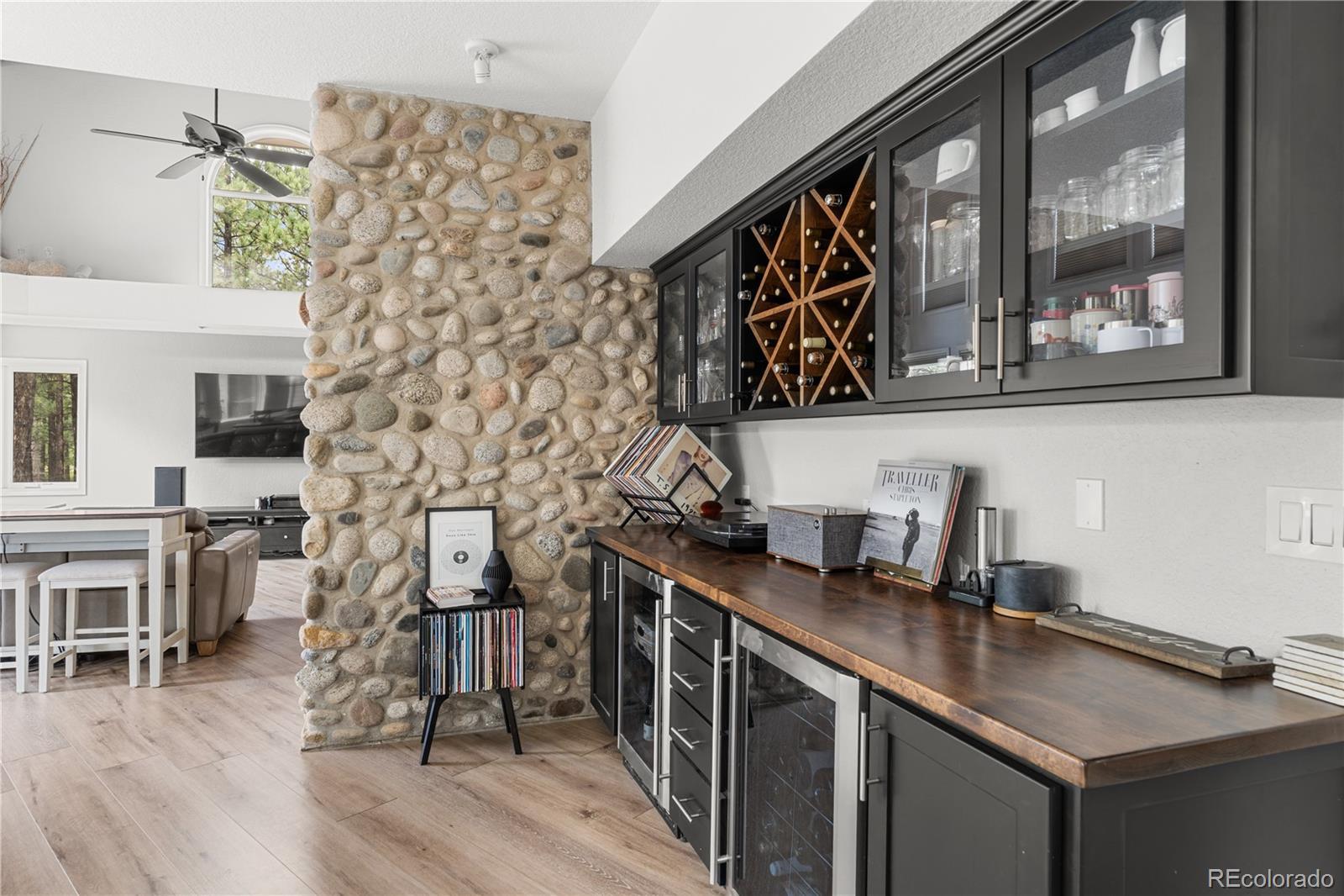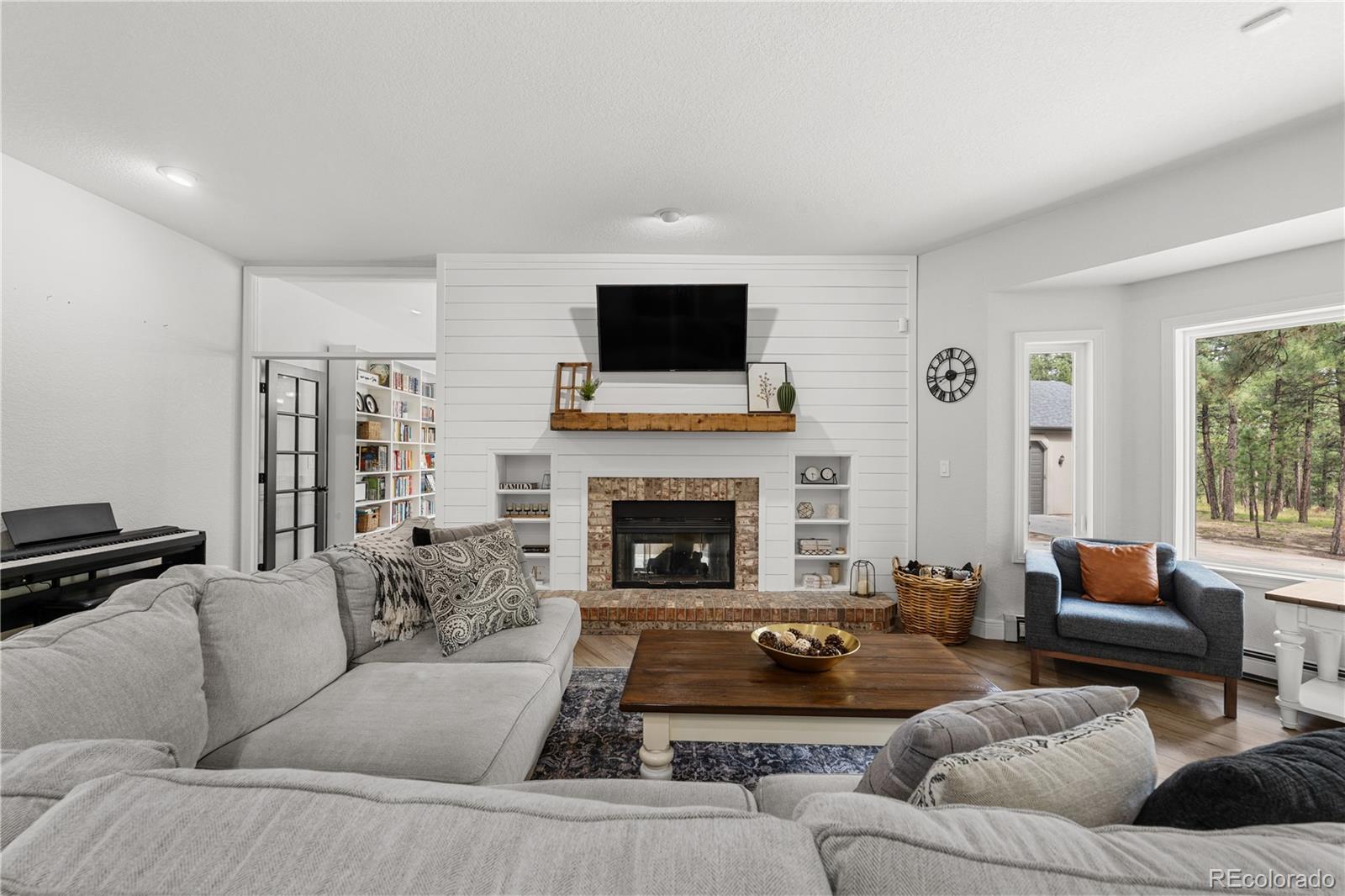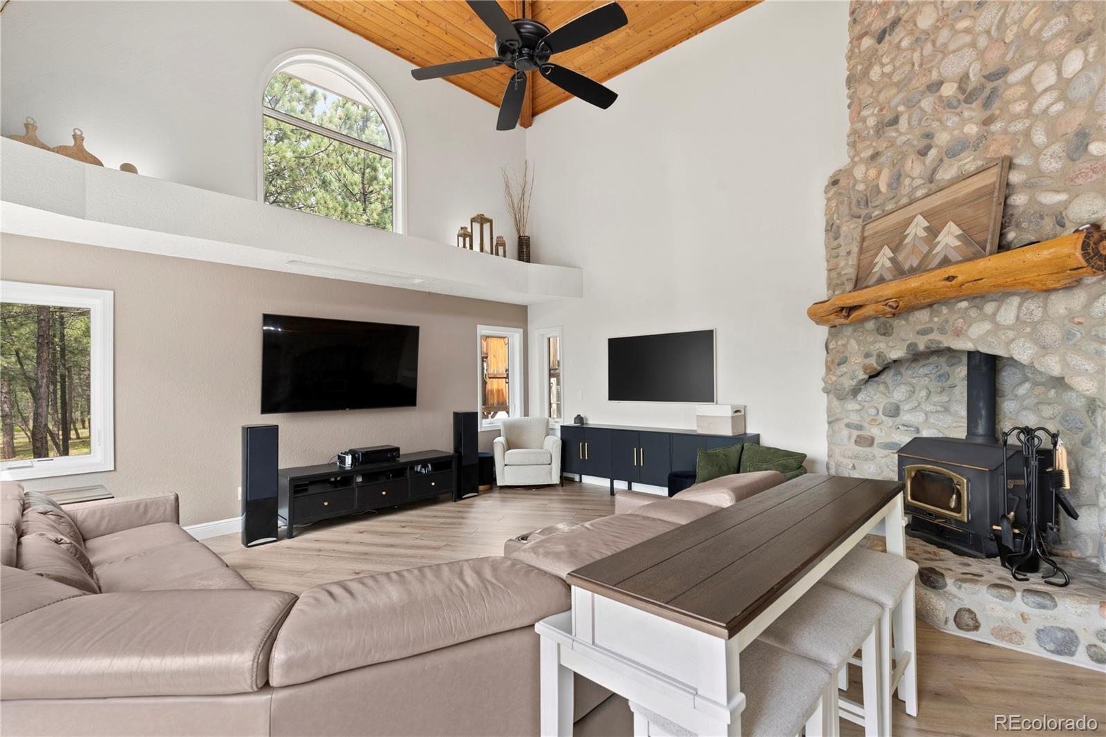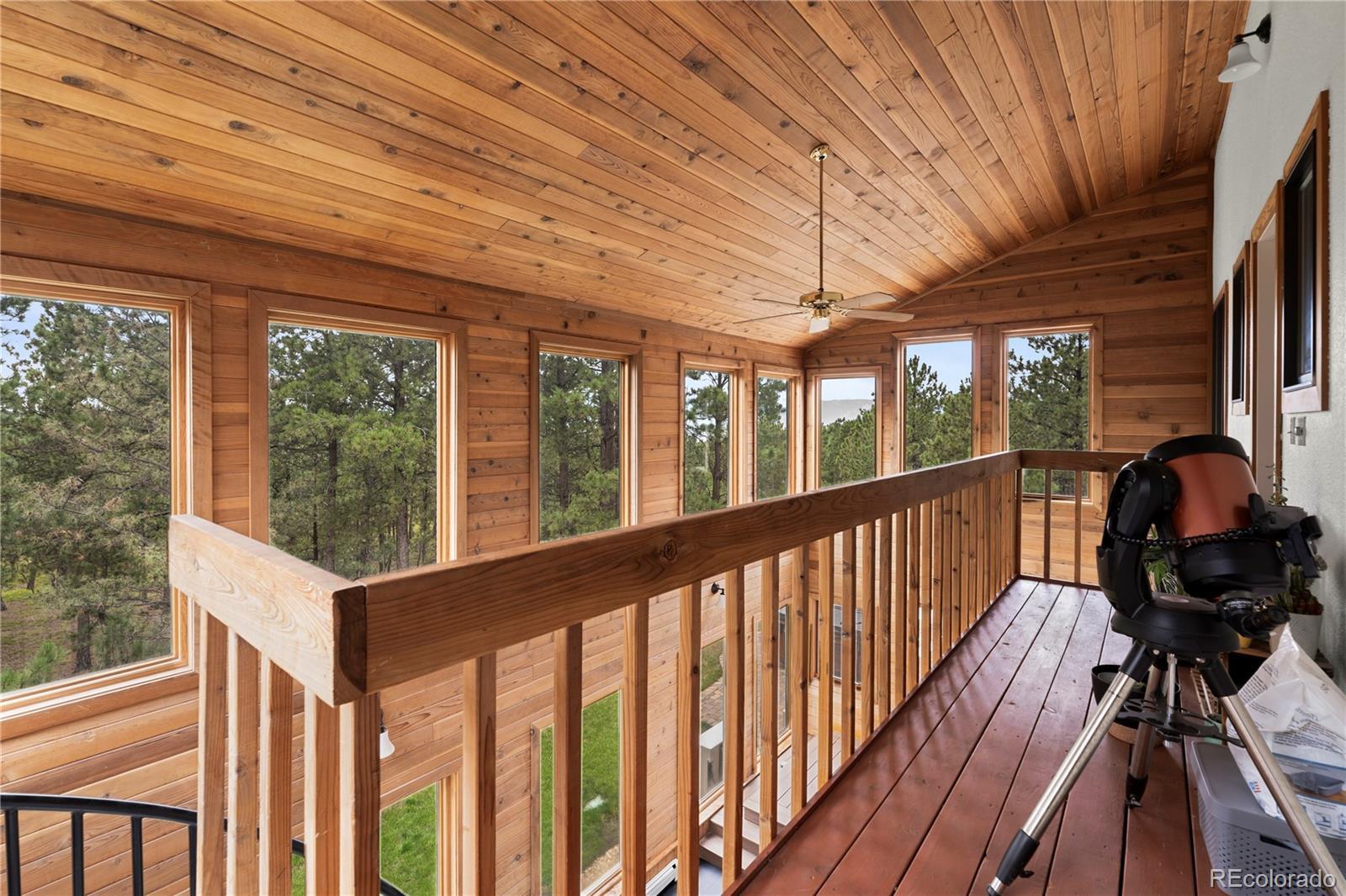 Situated on 3.5 wooded acres in the coveted Bent Tree community, this custom home combines timeless Colorado architecture with THOUSANDS in thoughtful updates. Designed for both comfort and lifestyle, the property offers unmatched privacy in the pines with sweeping Pikes Peak and Air Force Academy views. Recent improvements include $20k in mini-split air conditioning units on the main and upper levels, new energy-efficient windows across the back of the home, and luxury vinyl plank flooring throughout much of the home. A custom dog wash, refreshed kitchen with dry bar in the dining room, and a spacious sunroom highlight the home’s blend of function and style. The expansive floor plan includes 5 bedrooms and 5 bathrooms, with a private master retreat featuring a sitting area, fireplace, walk-in closet, and private deck overlooking the Front Range. Upstairs bedrooms share a Jack-and-Jill bath and built-in study area, while the lower level offers a guest suite, large rec room with wet bar, and entertainment space. Outdoors, enjoy Colorado living with an outdoor kitchen (and burner), fire pit, and oversized deck—perfect for gatherings with a backdrop of mountain views. Car enthusiasts, hobbyists, and professionals alike will appreciate the new detached garage with 10’ door, gas heat, and an expansive bay. Inside, a finished office or bedroom with kitchenette and bathroom (equipped with forced air and central A/C) creates the ideal space for a studio, business, or guest suite. The oversized attached 3-car garage adds even more flexibility with heated bays, workshop space, and RV parking. This is a rare opportunity to own a Bent Tree estate that blends privacy, acreage, extensive updates, and luxury features—all within minutes of Monument, Colorado Springs, and District 38 schools. With extensive updates already completed, generous square footage, and unmatched views, this home is priced to make it yours.