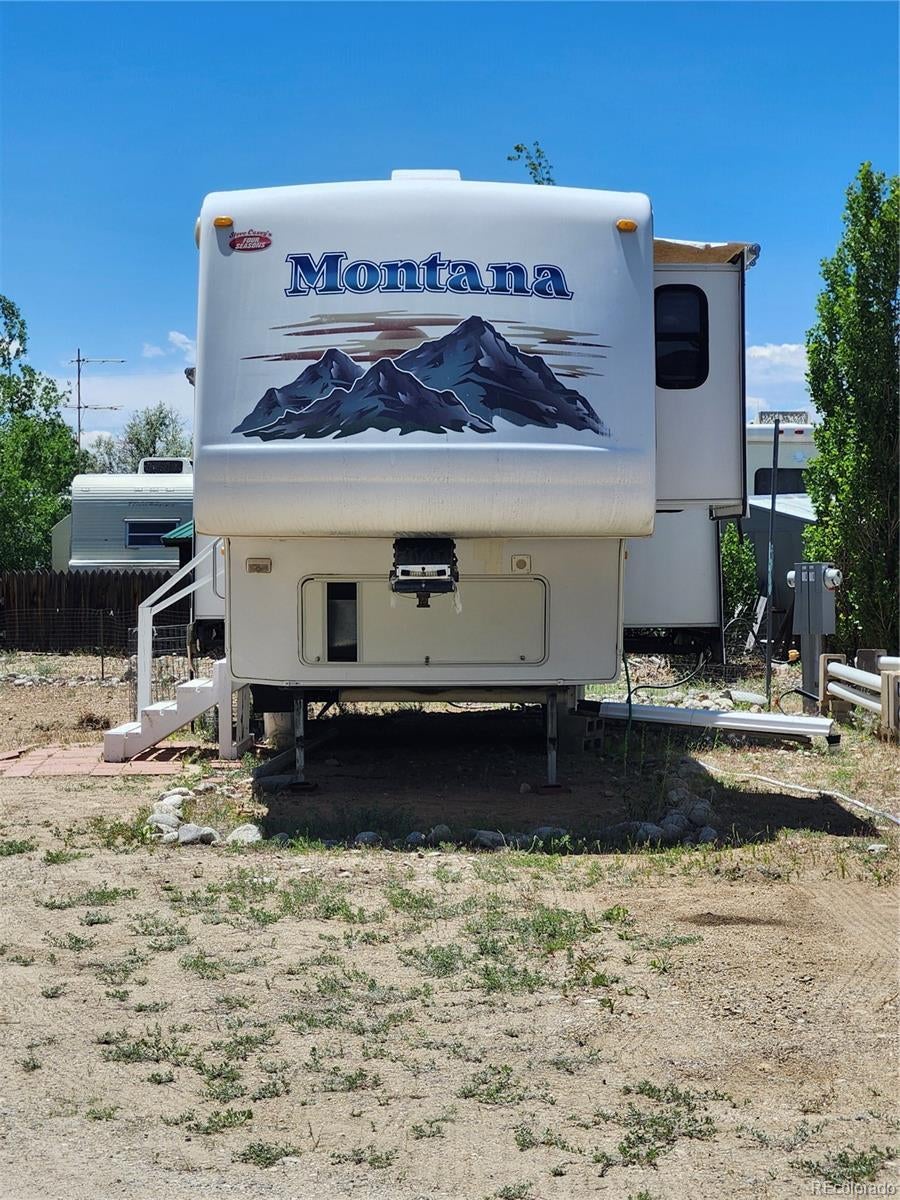 Arkansas river access and Brown's Canyon National Monument trails from this affordable year round home base. Own .048 acres in the Chateau Chaparral subdivision. Well maintained 2003 Montana fifth wheel with 3 bump outs for added indoor space. Enter into the open concept living, dining, kitchen area. Built in TV console has hidden desk option, floor to ceiling entryway cabinets; you can never have enough storage. Bump out kitchen has wood floor, wrap around kitchen counter with sunken sinks and wood paneled hidden refrigerator matches upper and lower wood cabinets. Dark (for privacy) to light (for more transparency) magnetic fabric blinds on windows. Bump out living space has lots of seating options. Up two steps from main floor to the bathroom section; shower and vanity sink. Separate toilet closet with skylight and vent. For ultimate privacy in the bump out bedroom extend pull out wall. Bedroom has lots of windows for natural light. Big enough to fit a queen size bed with underneath storage, built in dresser and full length mirrored closet. Extra closet has washer/ dryer hook up capability. Furniture included. Electricity and sewer hooked up, add winter water for all season usage. Buy the adjoining lot 176 and gain more space for gathering or investment option. Live halfway between the towns of Salida and Buena Vista and close to all the town amenities. The Chalet style clubhouse has workout area and game space, coin laundry facilities, commercial kitchen, and community hall, along with outdoor grilling and gathering space with great views. Escape out your back door to fishing, rafting, biking, and hiking or enjoy relaxing at nearby hot springs. This hidden oasis provides the best of all worlds.