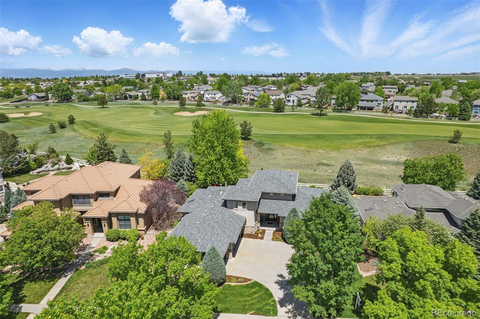 Nestled in the gated enclave of The Island at Broadlands, this custom ranch-style home is thoughtfully designed, perfectly blending elegance and comfort. This lovely property offers 5BR/4BA, a main-floor study, plus a finished basement and 3-car garage. The sunny, south-facing orientation bathes the interior in natural light and the premier lot backs to the golf course with stunning views just out your back door. This home boasts vaulted ceilings, hardwood floors, and three inviting fireplaces, creating a warm and elegant ambiance. The spacious kitchen is the heart of the home, showcasing warm pecan cabinetry, granite countertops, a walk-in pantry, and updated appliances. The corner sink offers stunning golf course views, while the layout flows seamlessly into the inviting family room with a cozy fireplace. Adding to the home’s architectural charm, the dramatic two-story turret-style dining room makes a striking statement. The primary suite is a true sanctuary, where you can unwind by the warm glow of the fireplace, relax in the spa-like bath, and wake up to peaceful patio views. Dual walk-in closets offer plenty of space, adding to the suite’s comfort and luxury. The finished basement offers incredible versatility—the wet bar features a kegerator, wine cooler, and extra fridge adding a touch of luxury, while three additional bedrooms and a full bath provide ample flexibility. Step outside and take in the breathtaking golf course and mountain views. The serene outdoor setting is perfect for morning coffee, evening sunsets, or gathering with loved ones. Lush landscaping and raised garden beds invite you to embrace Colorado’s beauty right in your own backyard. The three-car finished garage is a dream for hobbyists, offering a workbench, compressor, and two 220V, 30-amp outlets.