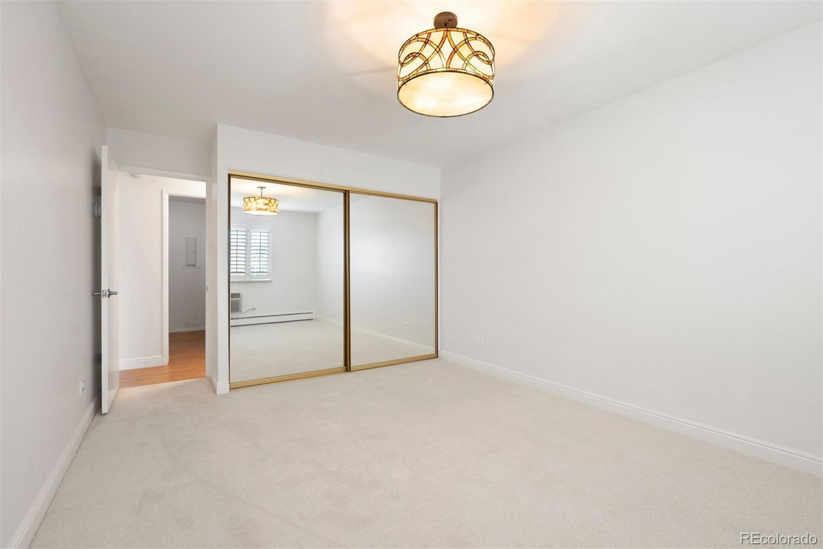 This is the 55+ condo you’ve been waiting for—fresh, move-in ready, and one of the largest floorplans in Windsor Gardens. The standout kitchen is thoughtfully designed and beautifully styled, featuring crisp white cabinetry with soft-close drawers, clever pull-outs, under-cabinet lighting, and abundant storage. Stainless appliances—including a KitchenAid French door refrigerator and dishwasher—pair perfectly with Corian countertops and an integrated sink. Upgraded wood flooring extends from the kitchen through all main living areas, creating a seamless, polished feel throughout. The spacious living and dining areas offer crown molding, plantation shutters, and excellent natural light. A newer sliding glass door opens to a large covered patio—perfect for morning coffee or summer evenings. The primary suite includes a generous walk-in closet, an updated ensuite bathroom with quartz countertops, an upgraded shower with frameless Euro-style shower glass, and a separate vanity area. A huge, versatile hall closet adds flexibility for crafts, hobbies, or collections. Additional highlights include additional storage in the hallway storage unit, a detached and conveniently located garage, and an easy-access building with ample parking right out front. Windsor Gardens is Denver’s premier 55+ community, offering low-maintenance living and resort-style amenities: clubhouse, indoor and outdoor pools, fitness center, 9-hole golf course, walking paths, on-site restaurant, library, and a full calendar of social events. Monthly HOA dues include property taxes, heat, water, sewer, trash, building insurance, and more. This well-run community is FHA and VA approved. It also qualifies for Community Reinvestment Act (CRA) financing incentives through Sunflower Bank (& other participating banks). Buyers may be eligible for a 1.75% lender credit of their loan amount, which can be applied toward closing costs or lowering interest rate. Start summer off right in this move-in ready condo!
