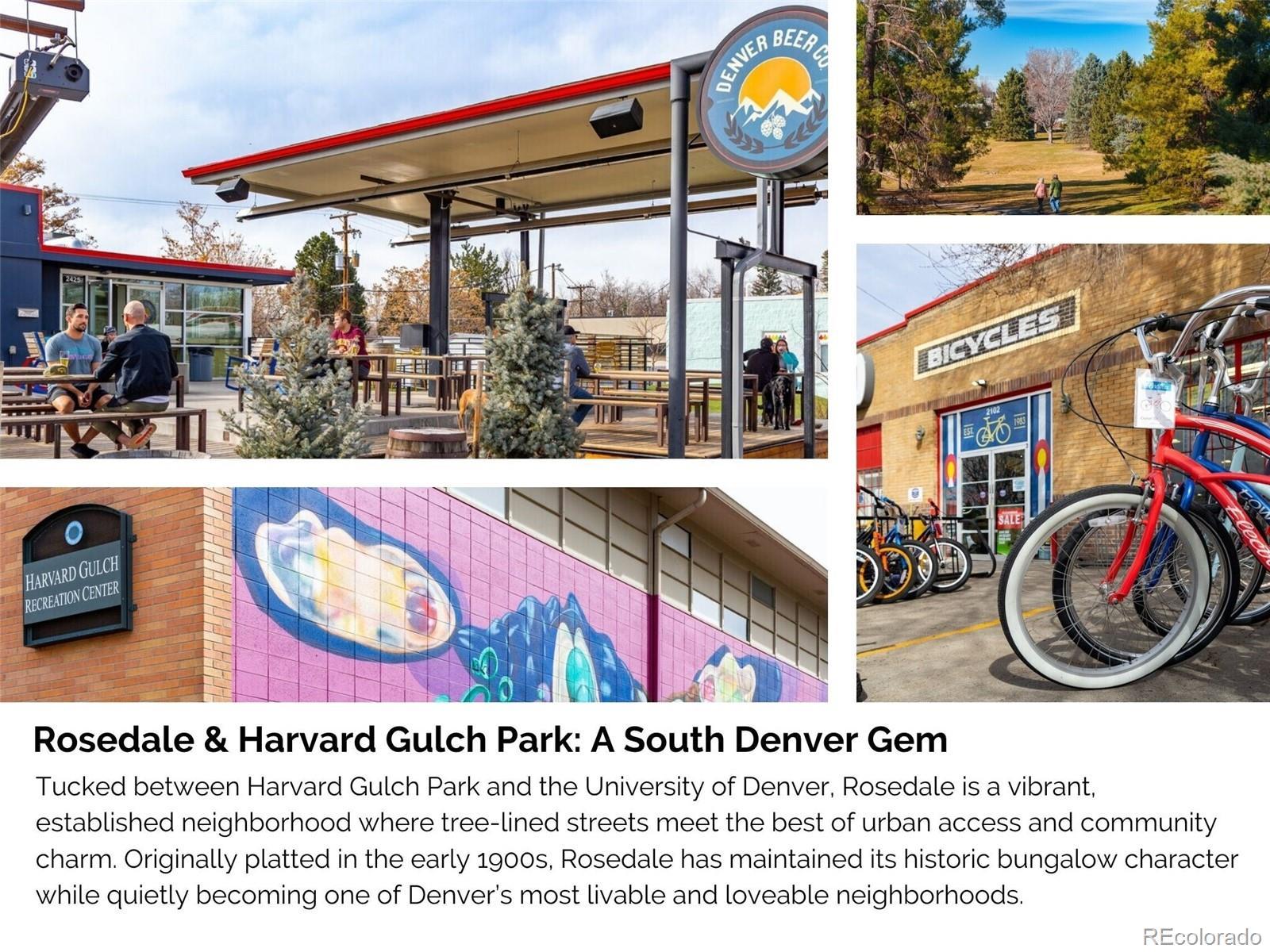 Bright + Breezy Bungalow in the Heart of Rosedale. Nestled in the sought-after Rosedale neighborhood, this 4-bedroom, 2-bath bungalow blends 1920s charm with modern updates in all the right places. Thoughtfully remodeled with an open floor plan, hardwood floors, and natural light throughout, the home features an updated kitchen with granite countertops, 42” white cabinetry, stainless steel appliances, and a gas range. Two main-floor bedrooms and a full bathroom flow seamlessly to the spacious backyard, complete with a newly installed paver patio, fresh sod, raised garden beds, and ample room to relax or entertain. Downstairs, the finished basement offers two additional bedrooms, an updated ¾ bath, a laundry room, and bonus storage. Recent updates include a newer roof and water heater (2019). Ideally located just blocks from Harvard Gulch Park, Porter Hospital, University of Denver, and local favorites like The Post Chicken, Bacon Social House and Pearl Street’s Farmers Market. This is urban living with a neighborhood feel - move-in ready and walkable to the best of South Denver! Welcome Home.