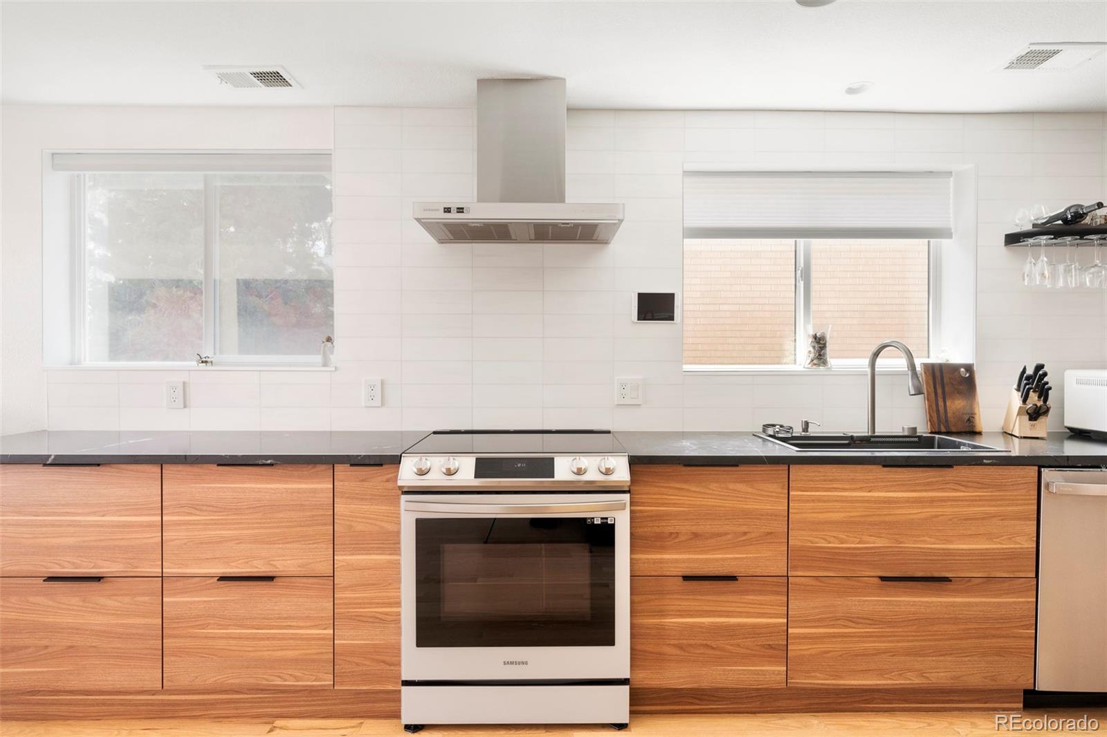 Gorgeously remodeled and thoughtfully updated, this bright and modern ranch-style home offers stylish living in the heart of Virginia Vale. Situated on a spacious corner lot, this residence showcases an open floorplan cascading with rich hardwood floors, exposed beams and a modern gas fireplace. The gourmet kitchen impresses with sleek countertops, newer stainless steel appliances with induction range, and a coffee + beverage bar accented by recessed lighting. The spacious primary suite enjoys privacy in its own wing with a luxe en-suite bath, walk-in closet, and floor-to-ceiling windows. There are two specious bedrooms, one with a private en-suite that perfect for guests. The open living space connects to a covered back patio and a private fully fenced backyard retreat. Updated systems, a whole-home air purifier, newer windows, newer roof, and a large 2-car attached garage add to the convenience. Located moments from Crestmoor and Cranmer Parks, Lowry and Cherry Creek, this home offers close proximity to Hilltop favorites including High Point Creamery, Call Your Mother and Park Burger.