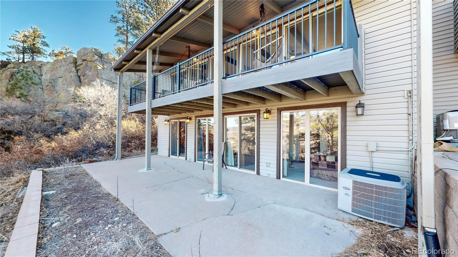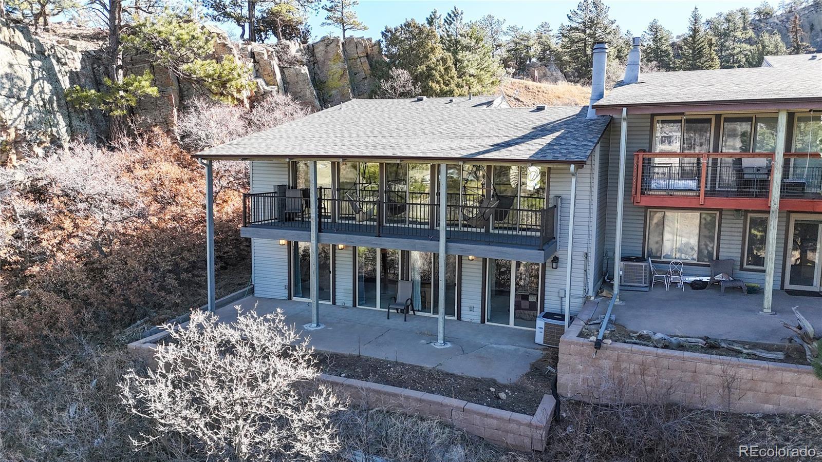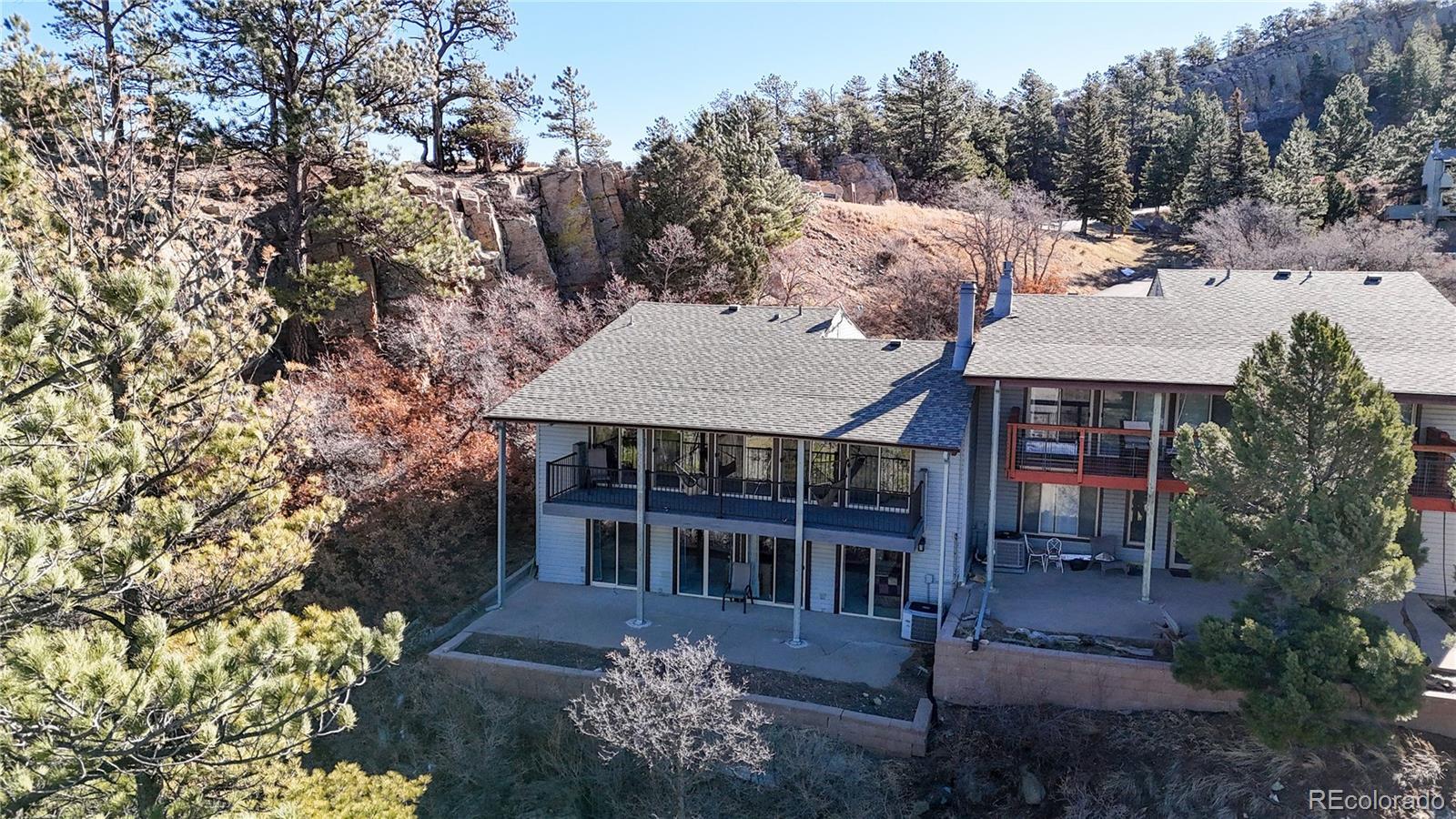 NEW PRICE! PRICED TO SELL! Experience the beauty of Perry Park in this charming 2-bedroom, 3-bathroom townhome nestled in the sought-after Echo Hills neighborhood. The main-level living room exudes warmth with a stunning stone-encased wood-burning fireplace, built-in shelving, wood beam accents, and large windows that frame breathtaking views of red rock formations, Sentinel Rock, and Lake Wauconda. Step onto the covered deck with brand-new composite decking from the living or dining room and soak in the serene surroundings. The kitchen boasts tile flooring, Alder cabinets with crown molding, granite countertops, a pantry & a stylish tile backsplash. The dining area features barstool seating, a ceiling fan & wood beam accents, creating a cozy yet spacious setting for entertaining. Retreat to the primary suite with a walk-in closet, covered patio access, and an en-suite bath featuring a dual-sink vanity with custom tile countertops and a walk-in shower with stunning tile surround. A second bedroom also offers patio access with scenic views, while the updated guest bath showcases a stylish vanity and walk-in shower. NEW furnace installed 3/13/2025! New hot water heater installed 6/9/2025! Additional highlights include a two-car attached garage & a storage shed for added convenience. Located in one of the most desirable Douglas County Golf communities. Perry Park Golf Course is highly rated & recent winner of the coveted CAGGY awards from Colorado Avid Golfer. Not a golfer? Social memberships are also available. Perry Park boasts acres of open space, hiking trails, horse stables & stunning red rock formations & it is only 5 minutes from Douglas County's new Sandstone Ranch Open Space & Sandstone Ranch Trails. Secluded but not isolated, this remarkable home is only 20 mins to Castle Rock & 40 mins to DTC or CO Springs. Be sure to view the beautiful aerial video at https://vimeo.com/10555577560 and the 3D Matterport tour at https://my.matterport.com/show/?m=11Ge7uFJKd9