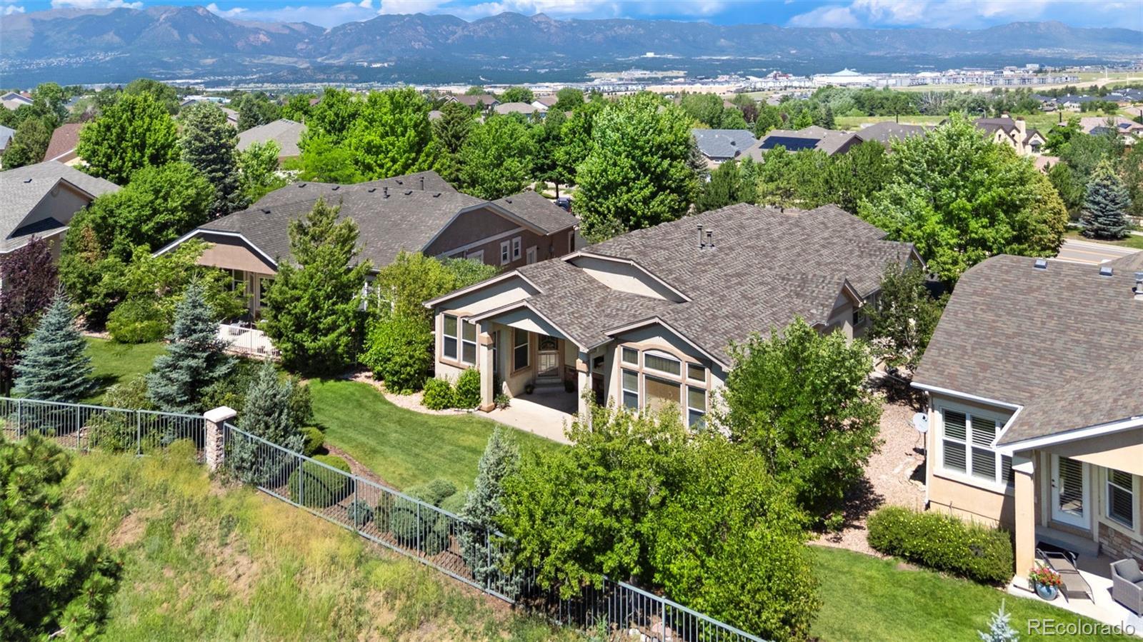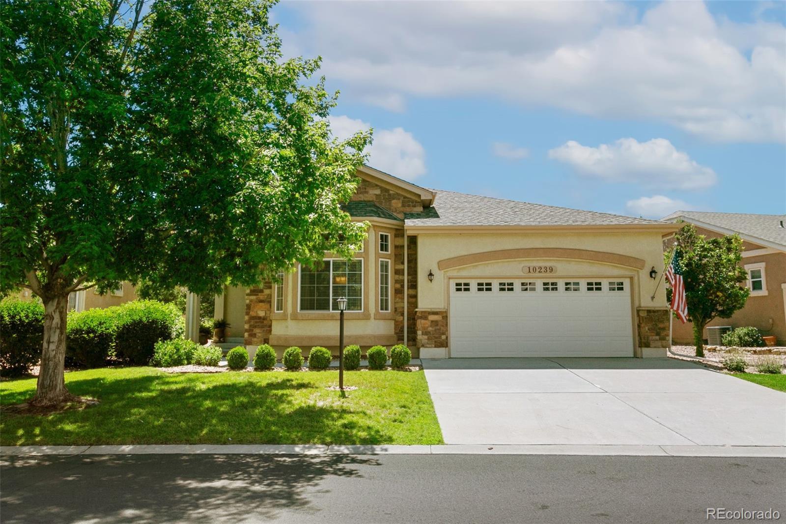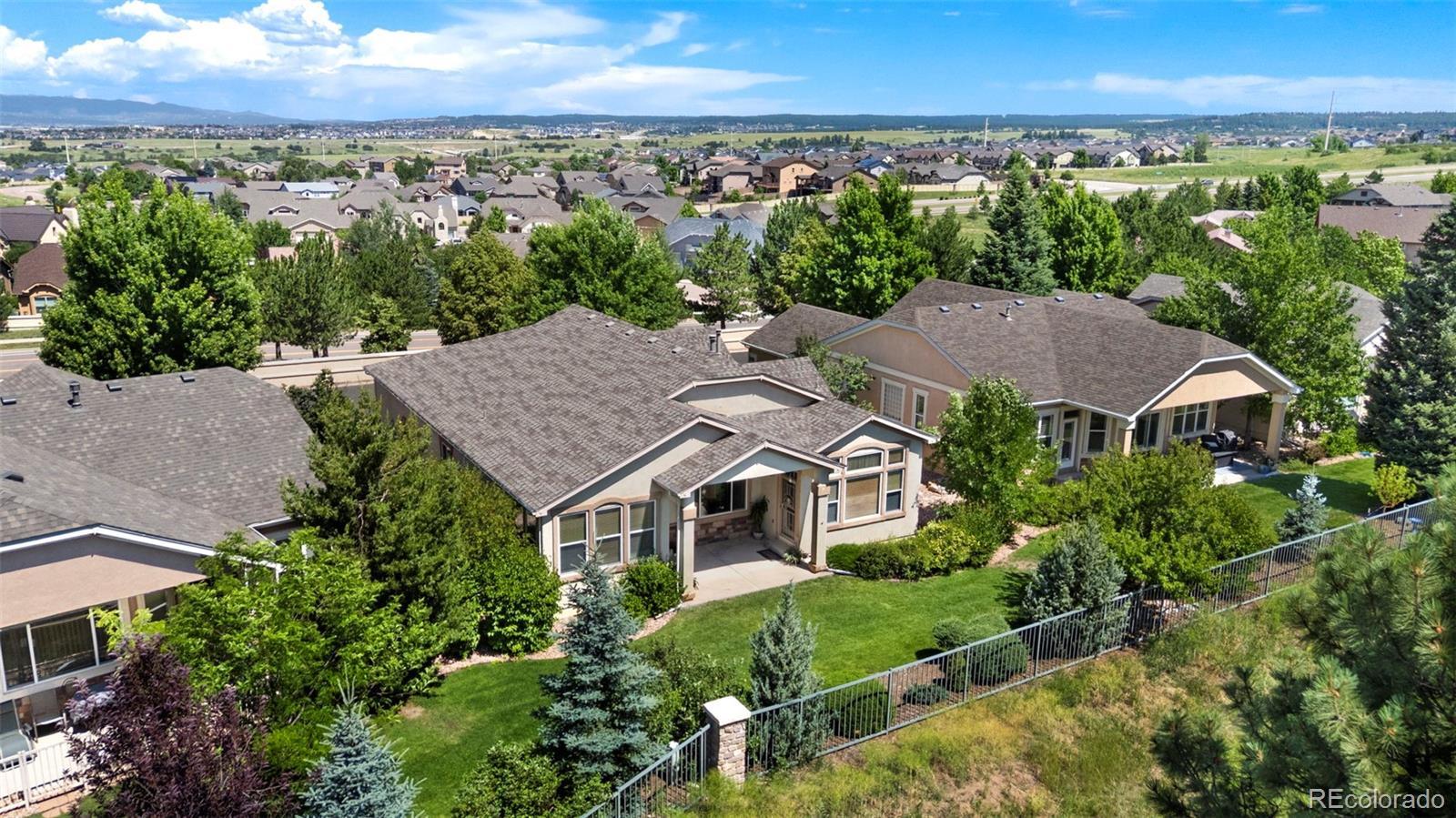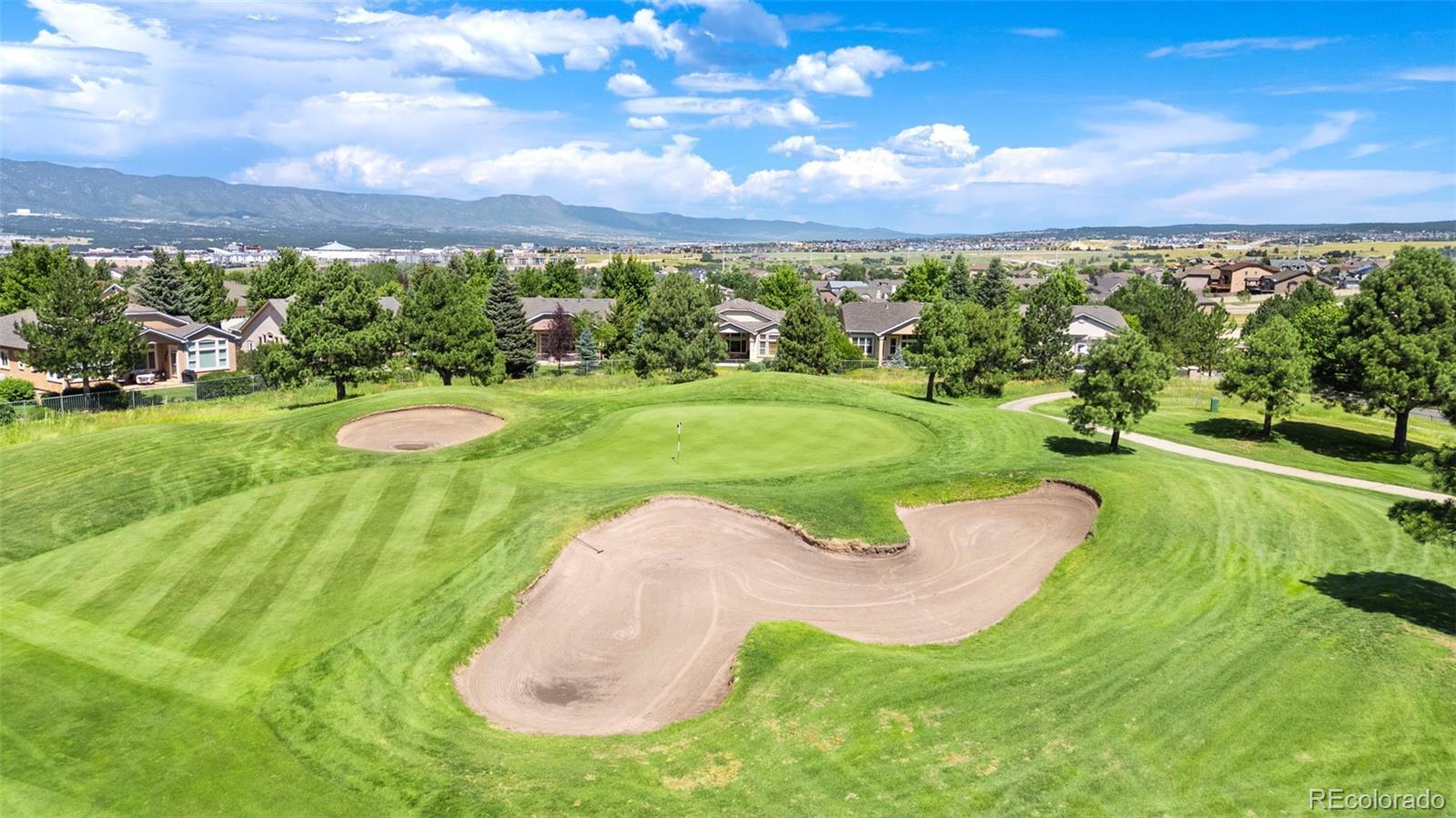 Enjoy low-maintenance living in this beautifully updated ranch-style home located on the golf course in the prestigious Pine Creek Community. This gorgeous home offers a spacious floor plan with 4 bedrooms, 4 bathrooms, and soaring 10-foot ceilings throughout the main level to create a bright, open atmosphere filled with natural light. The updated kitchen is the heart of the home, featuring abundant cabinetry, granite countertops, a central island with counter seating, and a spacious dining nook with a charming bay window overlooking the backyard and golf course. A formal dining room adds additional space for entertaining, while the great room offers a cozy gas fireplace and a wall of windows adorned with beautiful views. The main-level primary suite is a true retreat with a luxurious five-piece bath and generous walk-in closet. A second bedroom and ensuite full bath, along with the laundry room and another half bath round out the main level. The finished basement expands your living space with two additional bedrooms, a large family room, a bonus room perfect for crafts or hobbies, a full bath, and a spacious storage room. Enjoy outdoor living year-round on the covered back patio, with scenic views and room to relax. The home has been thoughtfully updated with quality finishes and attention to detail throughout. Conveniently located near I-25, hospitals, shopping centers, and restaurants—this home combines comfort, style, and accessibility in a highly desirable golf course setting.