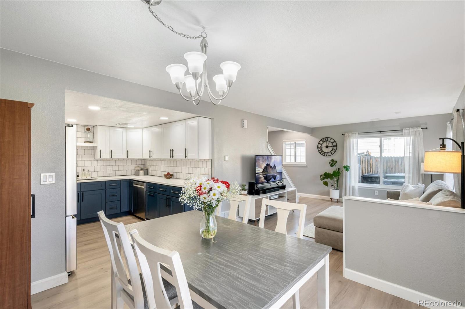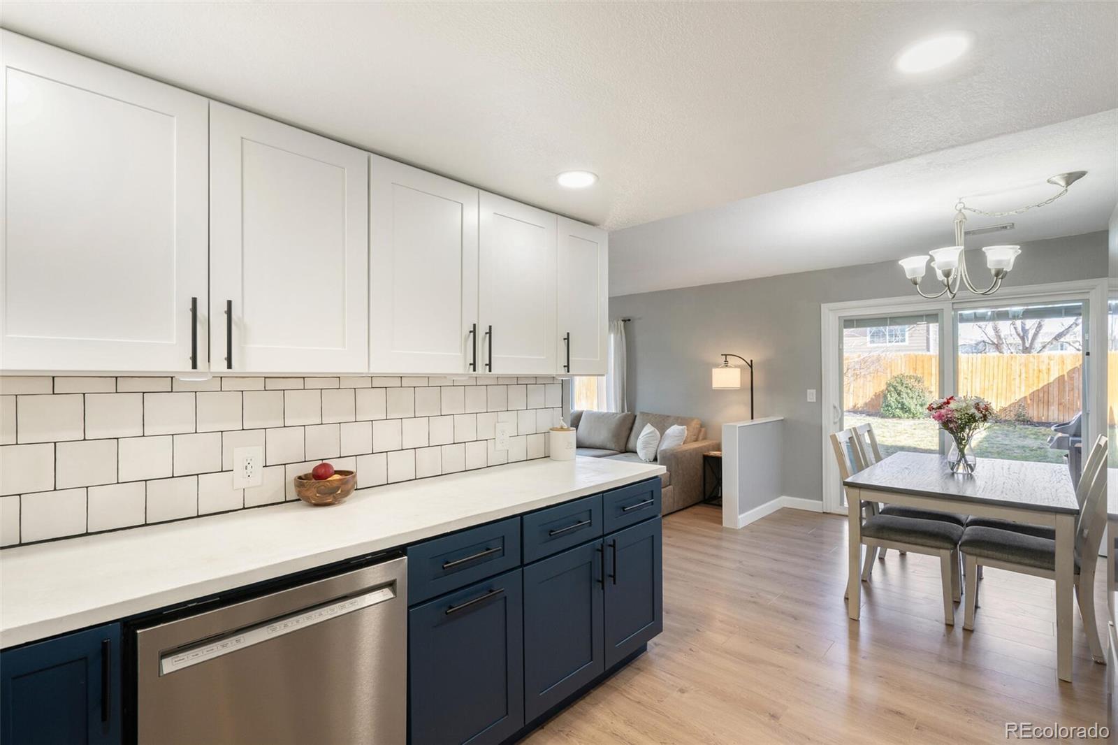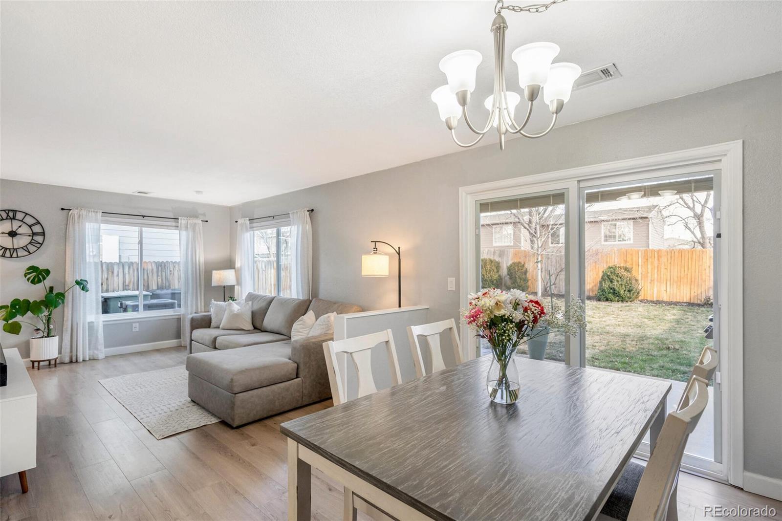 Adorable updated two-story home in the desirable Deer Run neighborhood in central Thornton location. This half duplex lives like a single family with private entrance and large backyard. Step inside to an inviting main level where the living, dining, and kitchen areas flow seamlessly together, enhanced by abundant natural light. The kitchen has been thoughtfully updated with newer stainless steel appliances including gas five burner range, concrete counters with generous prep space, and a functional layout perfect for everyday living and entertaining. A convenient mudroom near attached 2-car garage and updated powder bath complete this level. Upstairs, you’ll find a spacious king size primary bedroom featuring an updated attached bath. Two additional guest bedrooms round out the upper level, offering flexibility for family, guests, or a home office. Outside, the large paver brick patio and landscaped backyard provide plenty of space for kids and dogs to play, all enclosed by a six-foot privacy fence. Additional updates to the property include newer exterior paint and roof, new driveway and sidewalk, and new vinyl flooring throughout main level. Ideally located near shopping and entertainment like Topgolf and The Orchard Town Center, plus popular local spots such as Blue Agave Grill, Postino’s, and Snooze A.M. Eatery, this home offers both comfort and convenience in one fantastic location. Commuters and adventurers alike will appreciate access to the RTD N Line — the Denver metro’s commuter rail connecting Thornton and the north suburbs to downtown Denver. Come check out this home today!