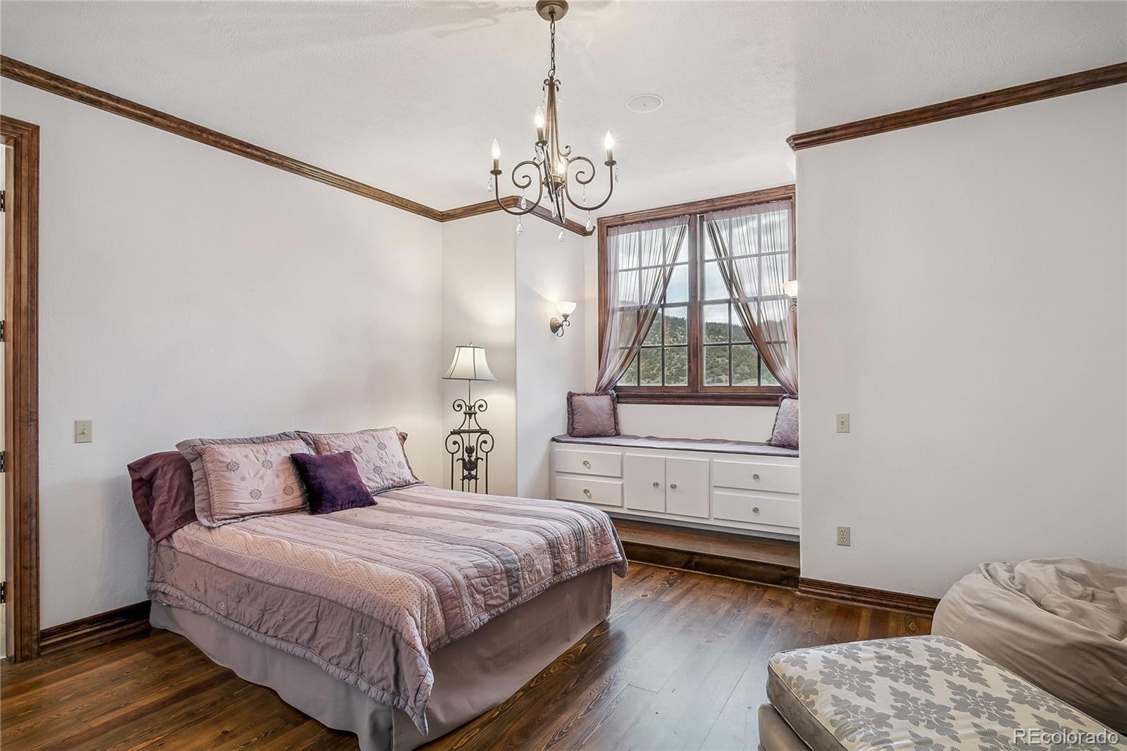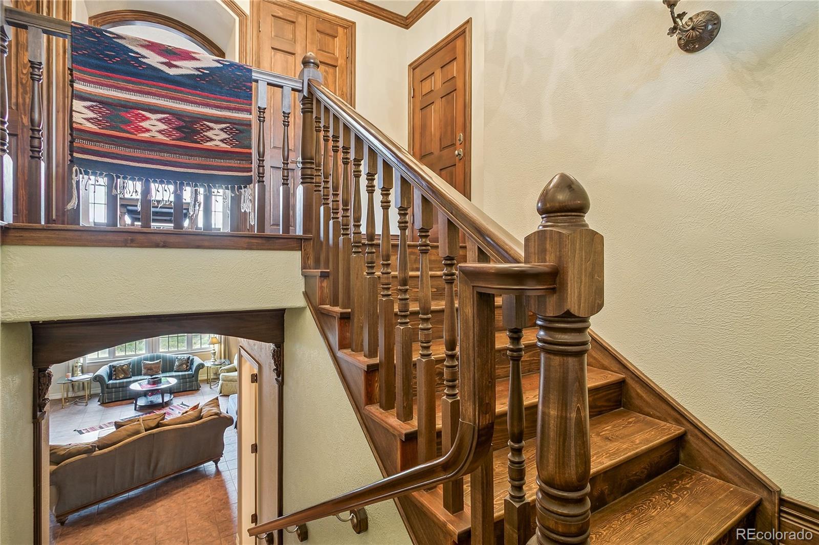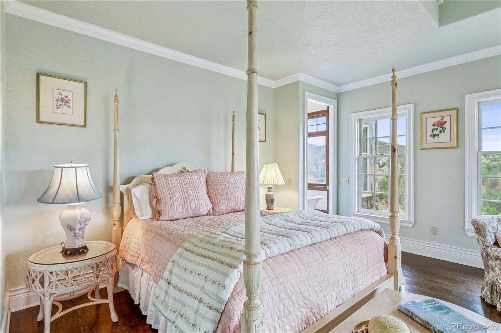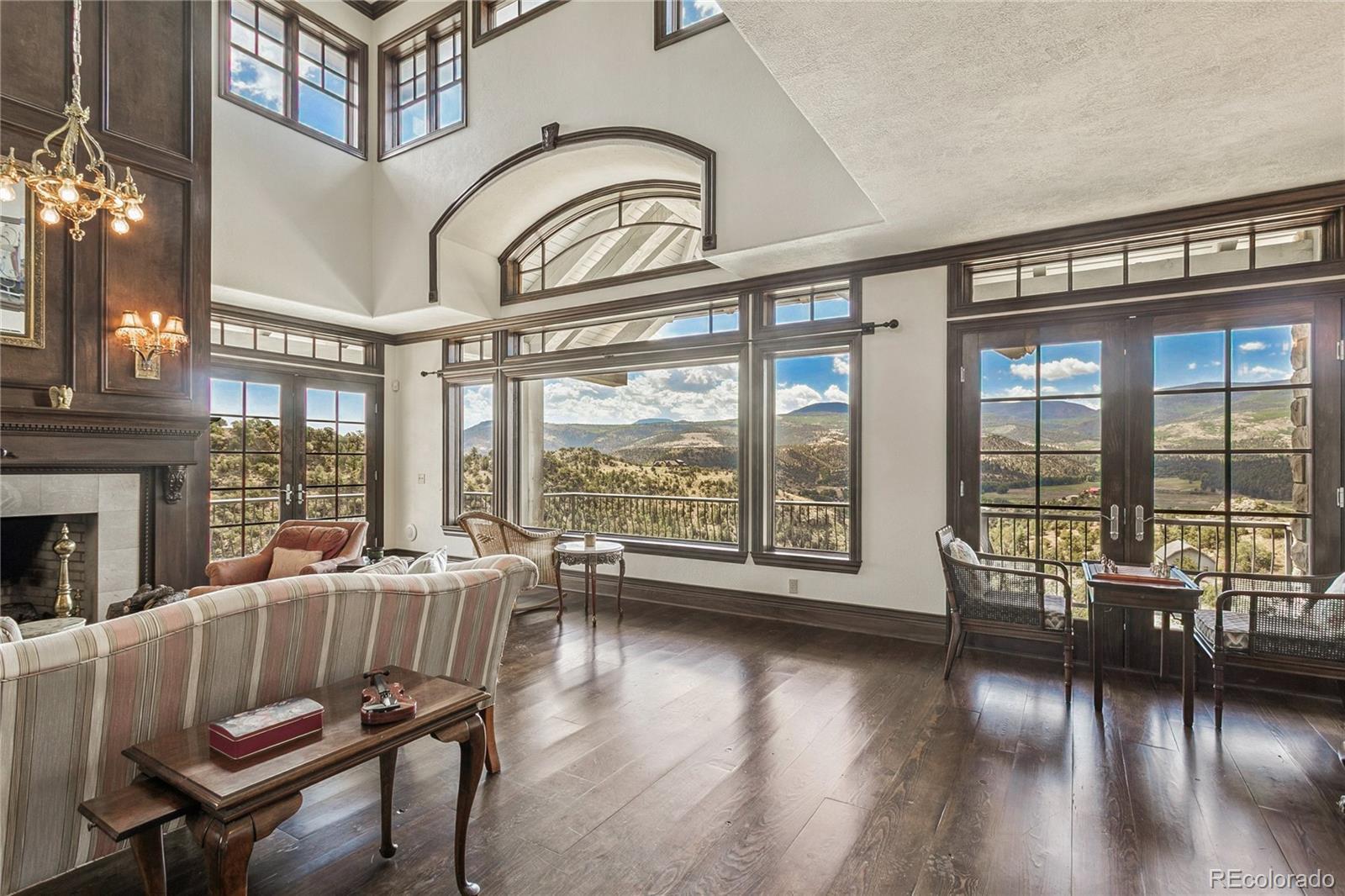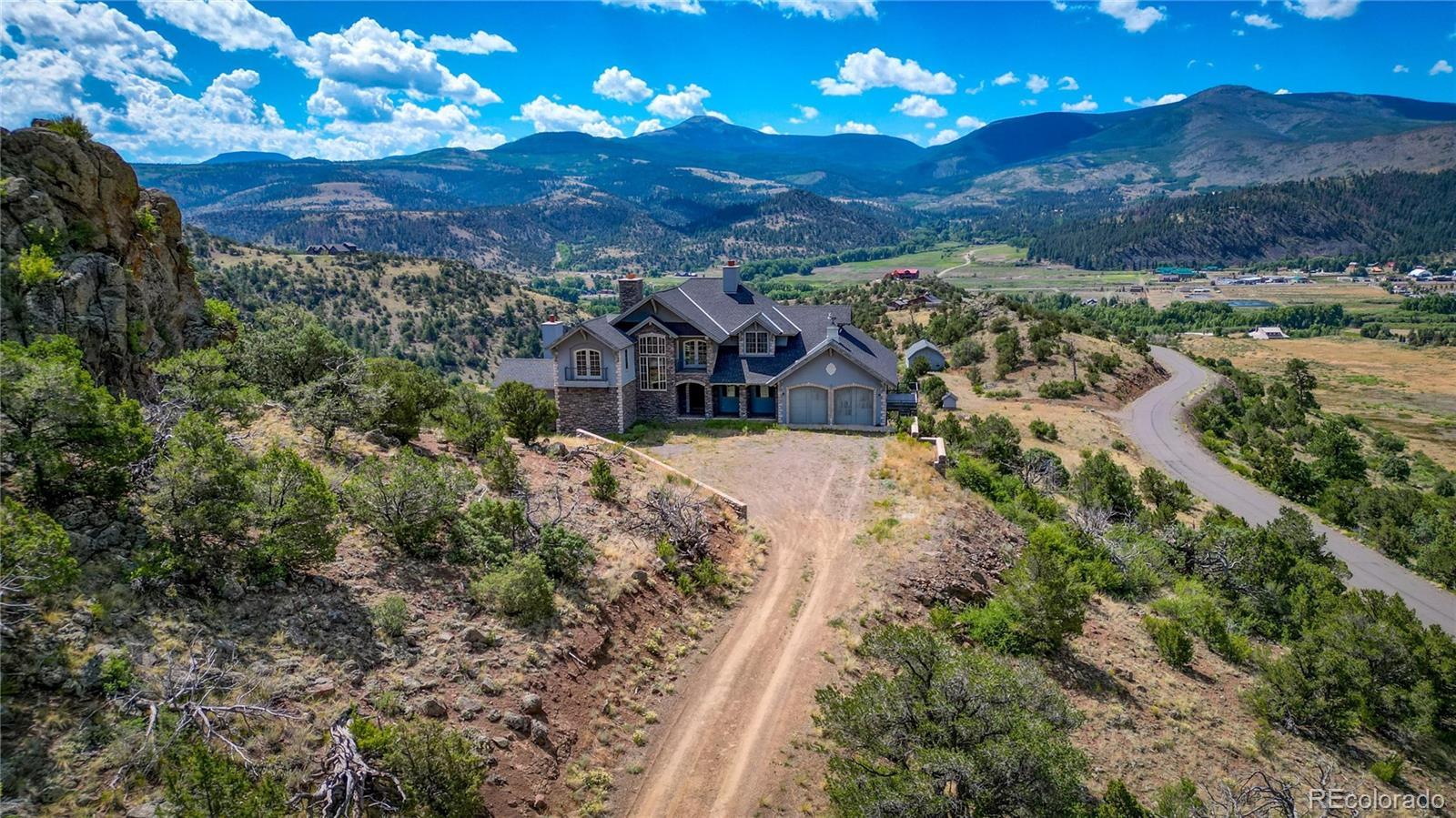 Welcome to 326 Soaring Eagle Lane—a rare mountain estate on two combined lots in the gated Bear Creek community of South Fork, Colorado. Designed by Segerberg, Mayhew & Associates and built by Hathorn Construction, this 6,053 sq ft luxury home offers architectural excellence, privacy, and breathtaking views in every direction. Commanding a ridgeline, the home overlooks Bear Creek and its canyon to the east, the Rio Grande River to the south, the Continental Divide to the west, and the Rio Grande National Forest and Weminuche Wilderness to the north. The fully fenced property includes private trails, rock formations, climbing access, and Bear Creek frontage. Gold Medal fly fishing and a scenic 18-hole golf course are just minutes away. Crafted from stone, timber, stucco, and custom ironwork, the home welcomes you with a long, scenic drive and handcrafted alderwood entry doors. Inside, the main living room features soaring ceilings, floor-to-ceiling millwork, a gas fireplace, and French doors opening to a covered porch. The chef’s kitchen includes authentic Rutt cabinetry, Ann Sacks limestone, Viking appliances, and a built-in window seat. A formal dining room sits between the kitchen and living room with arched entries and porch access. The main-floor primary suite features a tray ceiling, soapstone wood stove, and a luxury bath with clawfoot tub, walk-in shower, and custom closet. Upstairs, three guest suites include private baths, window seats, and stunning views. The lower level offers a family room, study, custom bunk room, full bath, and laundry with alder cabinetry and a soapstone sink. A separate drive leads to the custom garage barn with heated office, half bath, loft, horse stalls with auto waterers, and storage for vehicles and gear. An artesian well provides ample water. This is Colorado mountain living at its finest.