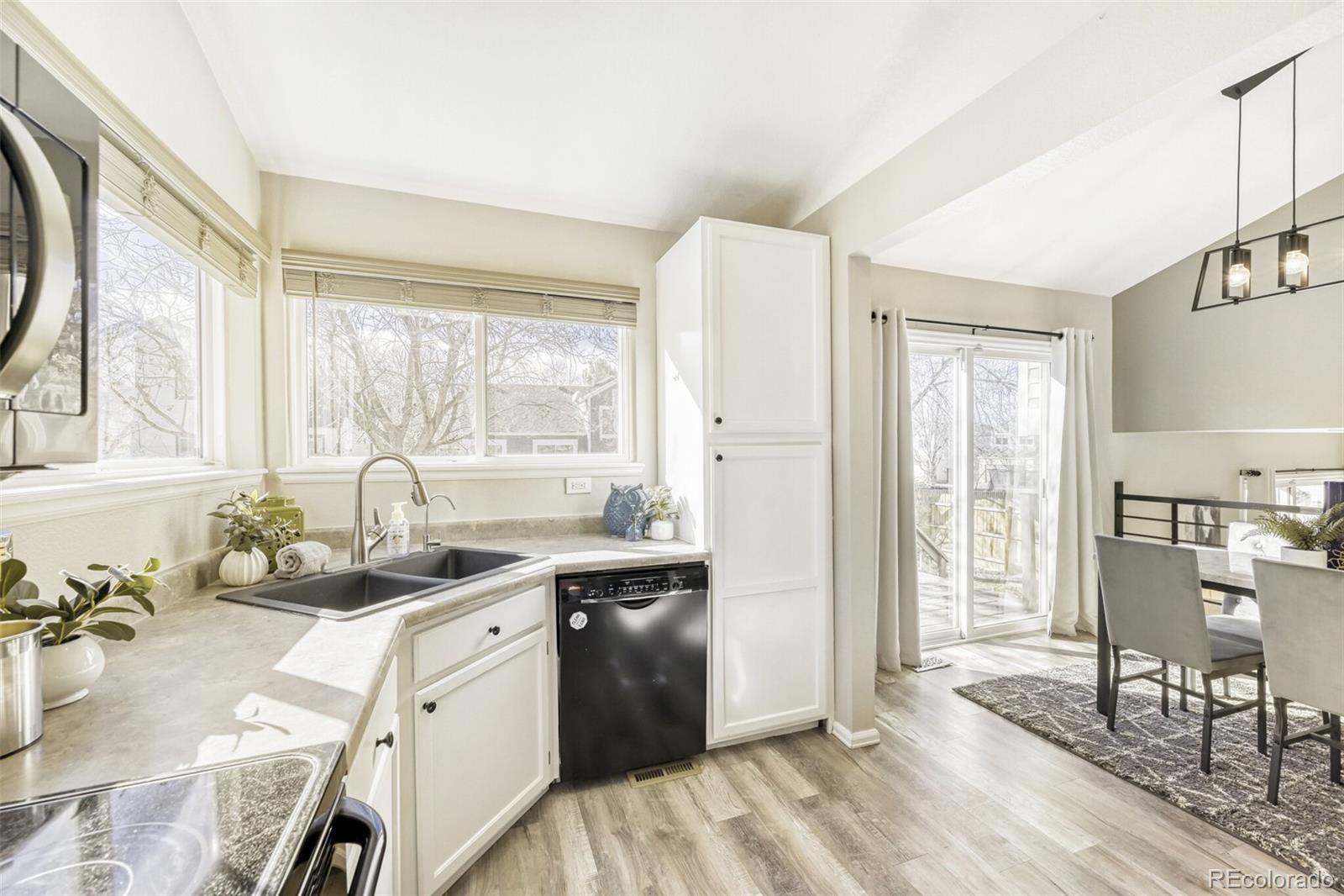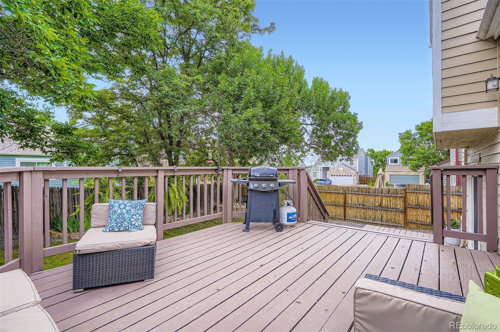 Light filled, welcoming, and thoughtfully updated, this home blends comfort with modern style in all the right ways. An open floor plan showcases contemporary gray luxury vinyl plank flooring, striking black metal railings, and tasteful upgrades throughout. The kitchen and dining area flow seamlessly onto an upper deck, creating an easy indoor outdoor setting perfect for summer dinners and morning coffee alike. Two spacious living areas offer flexibility for entertaining, movie nights, or quiet retreats. The lower level features a cozy gas fireplace and walkout access to a second private deck, ideal for enjoying peaceful Colorado evenings beneath mature shade trees. Upstairs, the primary suite includes a three quarter bath and walk in closet, while two additional bedrooms and a full bath provide comfortable space for family or guests. The finished basement adds a fourth bedroom or versatile bonus room, perfect for a home office, workout space, or playroom. Outside, you will find two private decks, established trees for natural shade, and a dedicated garden area ready for your personal vision. A brand new furnace has just been installed, and owned solar panels by SunRun along with an attic fan help keep utility costs low and efficiency high. Located in the desirable Stratford Lakes community, residents enjoy five scenic lakes, a clubhouse, pool, tennis and pickleball courts, and a playground. The nearby Westminster Trail System connects you to miles of picturesque paths filled with wildlife and wildflowers. You are also just minutes from Front Range Community College and the Westminster Public Library, with easy access to both Boulder and Denver in about 20 minutes. Stratford Lakes offers a rare blend of community, convenience, and natural beauty—come see why this gem is the perfect place to call home!