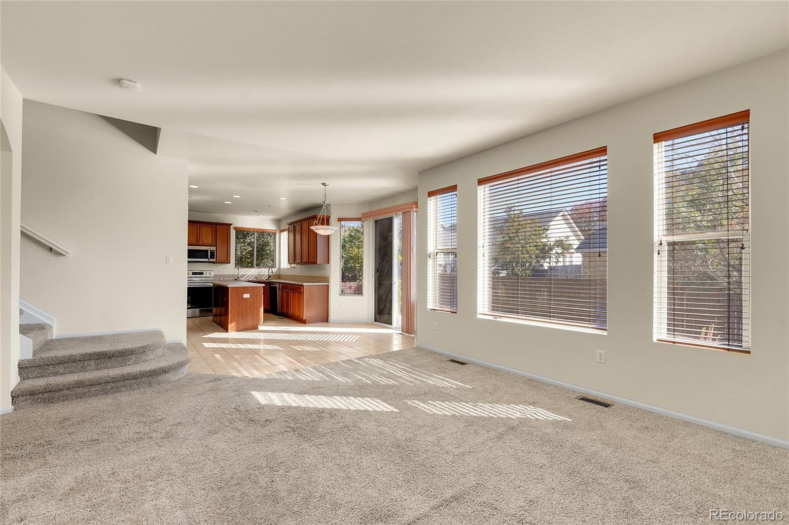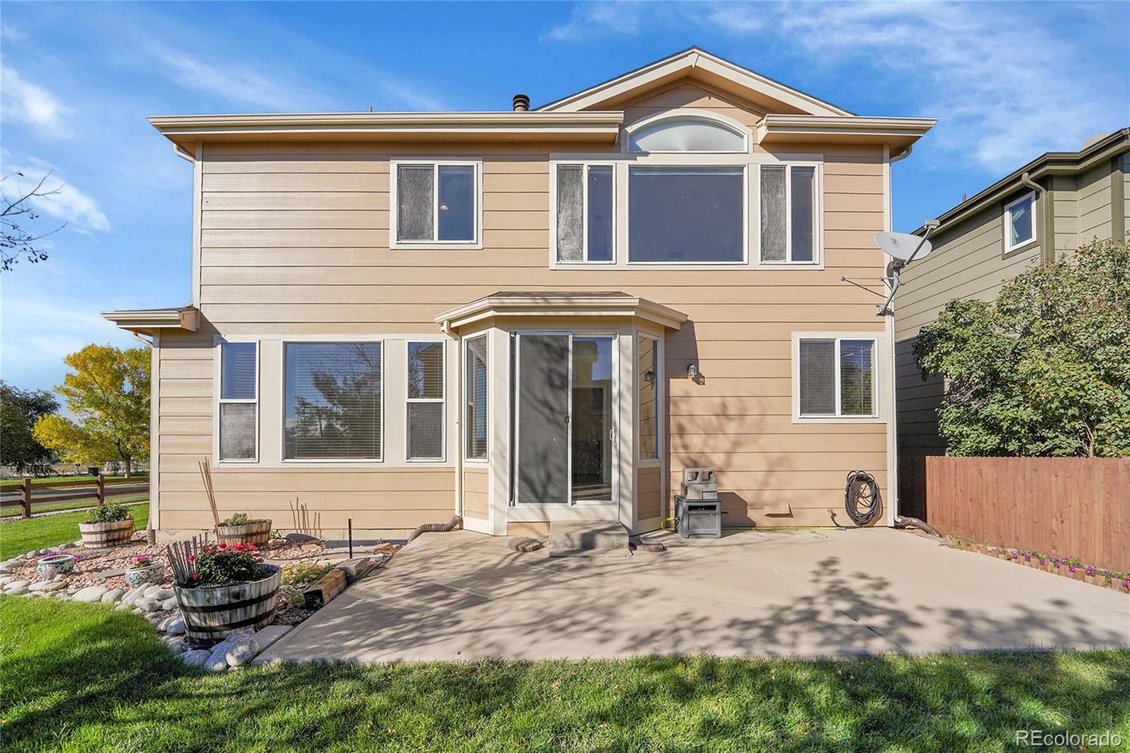 Step into this meticulously updated 4-bedroom, 3.5-bath residence where soaring ceilings, abundant natural light, and an open-concept design provide a harmonious setting for daily living—ready for you to personalize. The open floor plan seamlessly integrates the kitchen, dining, and living areas—crafted to accommodate your lifestyle, gatherings, and relaxation. Three bedrooms are situated upstairs for added privacy, while a bedroom on the lower level, complete with its own bathroom, is ideal for privacy or multi-generational living. Each room boasts ample closet space and a practical, user-friendly layout. Outdoors, the backyard beckons you to create your own sanctuary—whether for entertaining, gardening, or simply enjoying a peaceful retreat. Just a short walk away, the community pool and playground foster neighborly connections, and the sought-after Valance Lake trail is less than five minutes away—perfect for morning walks or evening strolls. With easy access to Highway 85, you are ideally located for trips to Denver, Boulder, and DIA. A residence that embodies both community and convenience—this home is ready to embrace you.