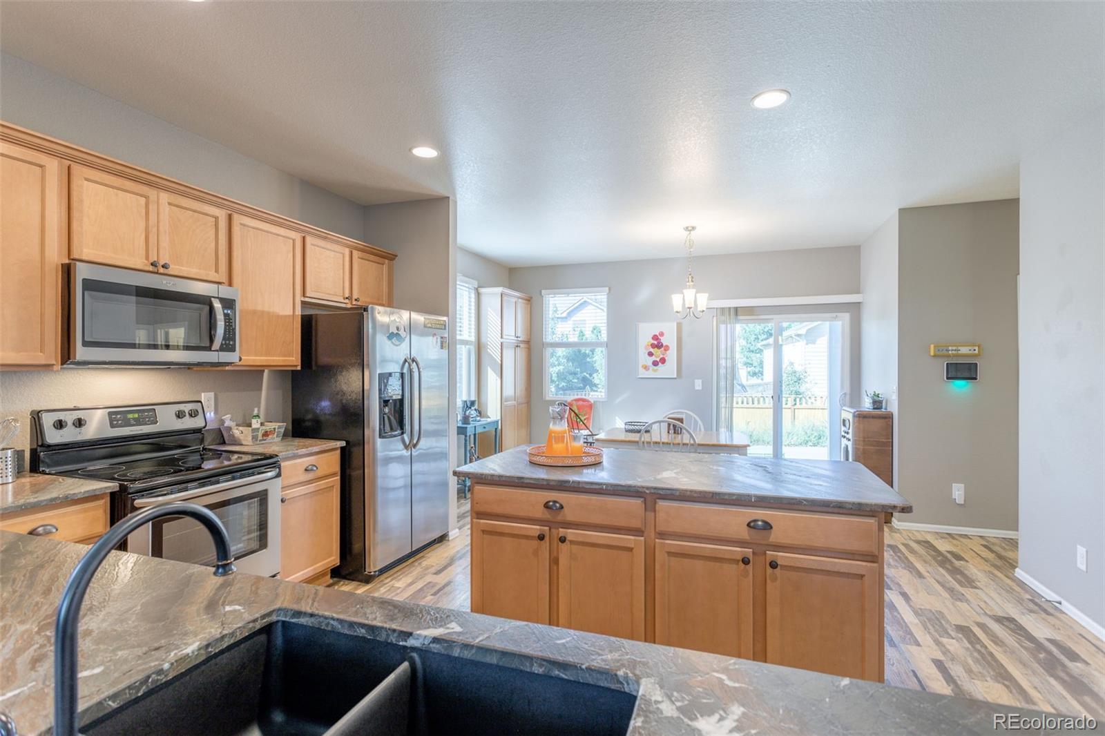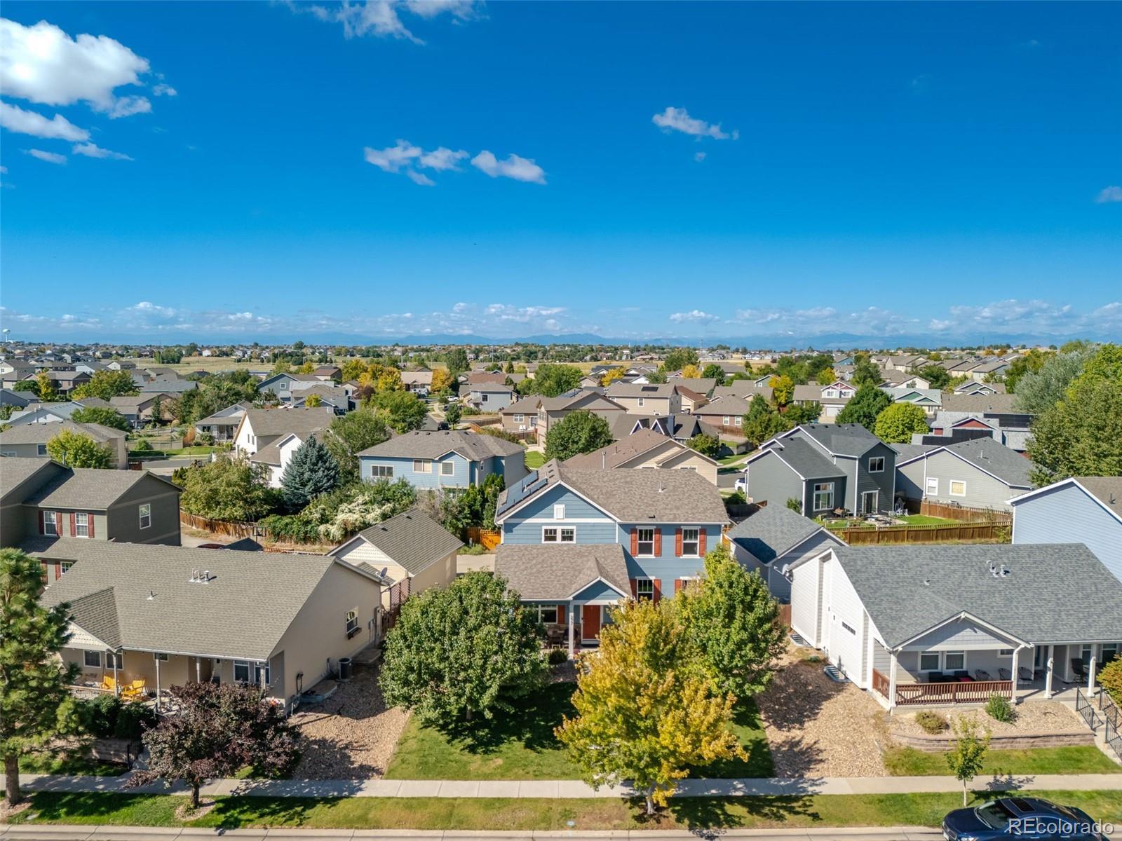 Discover your new home in the heart of the Silver Peaks Community! This inviting two-story residence offers 1,773 sq. ft. of well-designed living space with 3 spacious bedrooms and 3 bathrooms. A welcoming entry with a striking stone tile floor creates an inviting first impression for guests & homeowners alike. The open floor plan seamlessly connects the family room, kitchen, & dining area—perfect for everyday living and entertaining. The kitchen features beautiful stone-leather finished countertops, a large island, and plenty of workspace. The primary suite is a true retreat with a walk-in closet, double sinks, and a spacious stand-up shower. Additional highlights include a large laundry room with washer & dryer included, an oversized 2-car garage with epoxy-finished floors, ample storage with multiple closets and built-ins, and a Vivint Security System with a doorbell camera and door sensors for added peace of mind. Relax on the charming front porch and enjoy your morning coffee while watching the sunrise. The landscaped front yard includes a sprinkler system for easy maintenance. Conveniently located near parks, schools, shopping, and with quick access to Highway 85 and I-76. Experience the best of Silver Peaks living in this fantastic home!