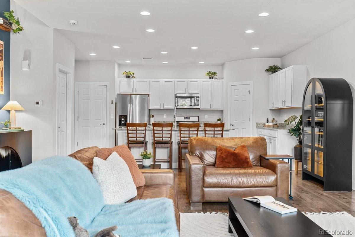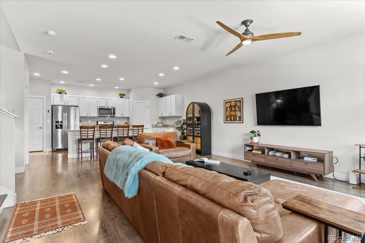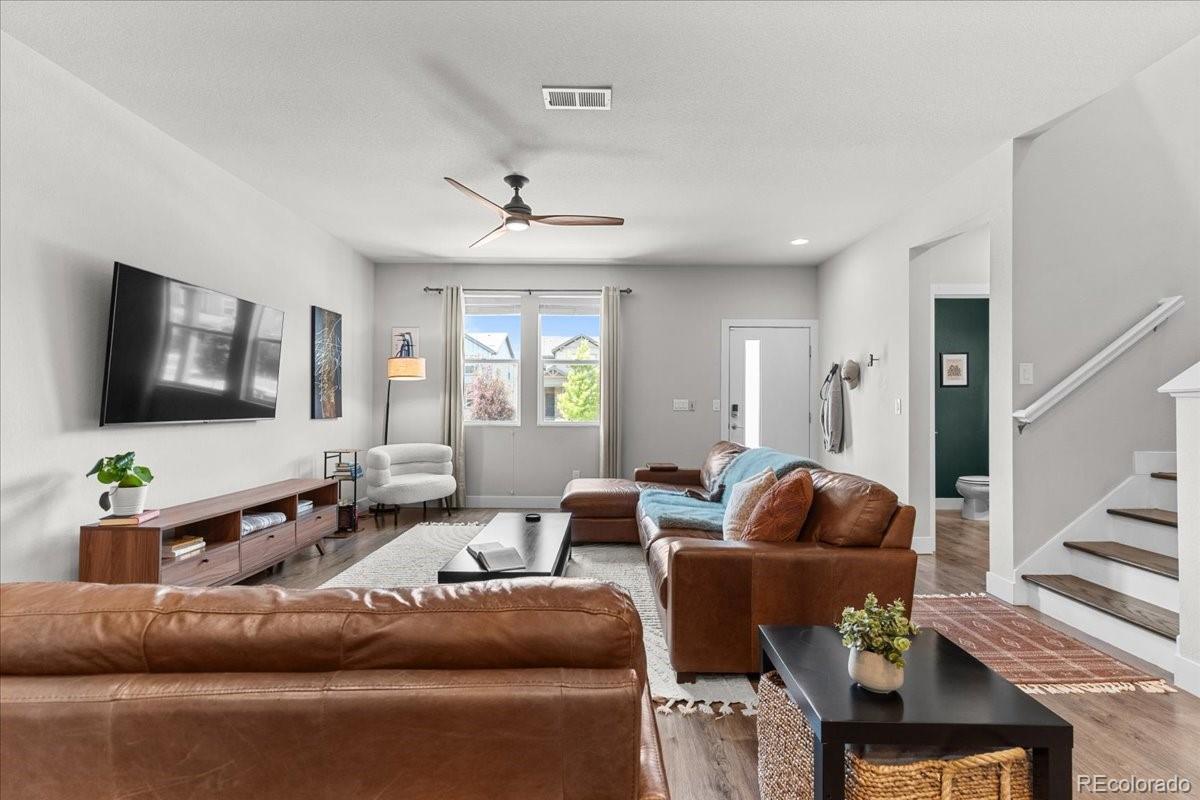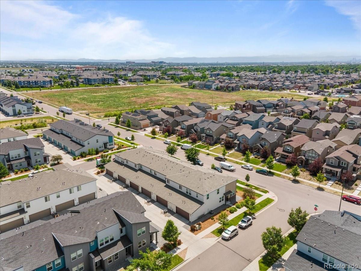 Great price to make this your own. Modern and move-in ready townhome featuring a spacious, light-filled floor plan and stylish finishes throughout. The gourmet kitchen is equipped with a gas range, granite slab countertops, stainless steel appliances, solid white wood cabinetry, a large island, and integrated dining-perfect for cooking and entertaining family and friends. High ceilings and abundant natural light enhance the open feel, while a versatile flex space offers the ideal spot for a home office. The primary suite includes a luxurious ensuite bathroom and a generous walk-in closet. Freshly painted, hard wood flooring and a 2 car spacious attached garage. Enjoy your morning coffee on the charming covered front porch and an oversized private patio with beautifully maintained landscaping cared for by the HOA. Residents of this vibrant community enjoy access to 40 acres of parks and amenities, including a dog park a "community hub" for social gatherings, and a planned 10-acre city park coming soon. Located near The Anschutz Medical Campus, with convenient access to biking trails, parks, community pools, and Dick's Sporting Goods Park-Denver's premier sports and entertainment complex. Great location near the Denver International Airport.