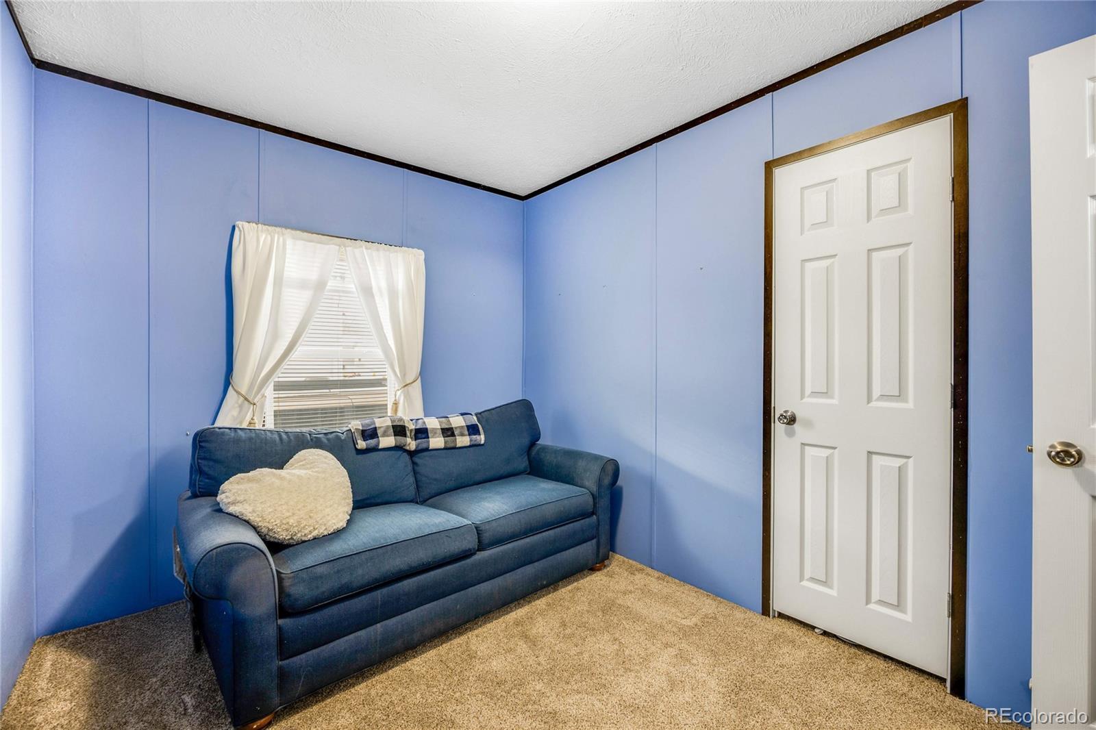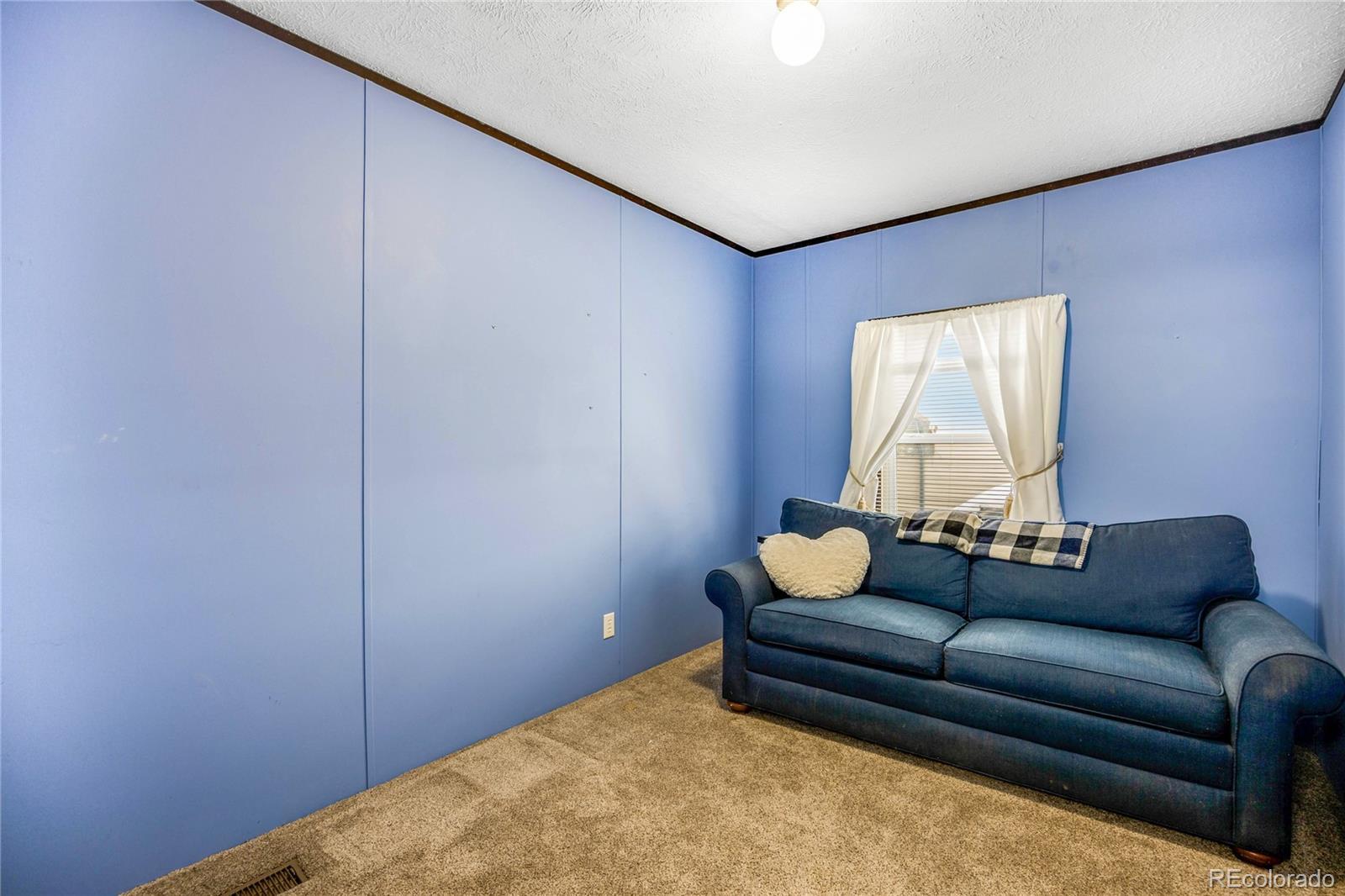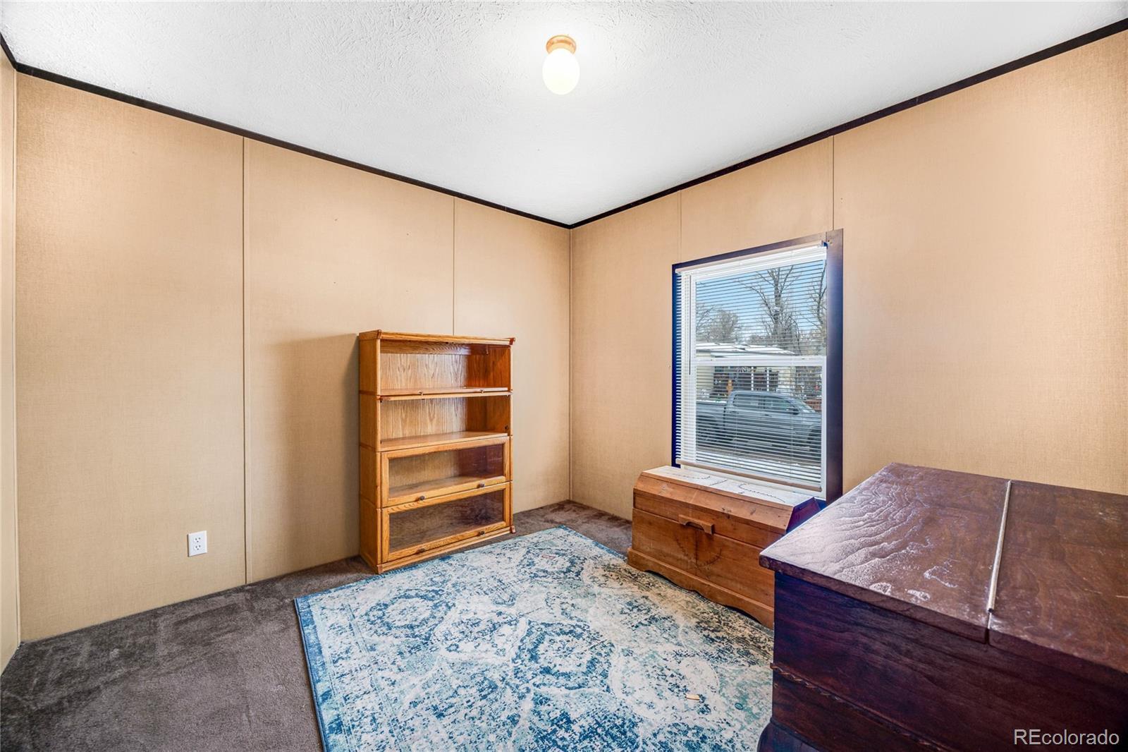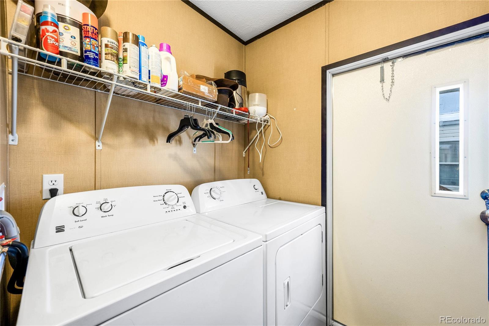 Come and see this 3-bed, 2-bath SINGLE AND A HALF WIDE home that features an open-concept living area and an inviting eat-in kitchen complete with all appliances, including a range, dishwasher, fridge, and garbage disposal. The spacious primary bedroom could home a king size bed, includes a private 5-piece bath with a relaxing soaker tub. A dedicated laundry room with washer and dryer, an attached carport, and a small storage shed add everyday practicality. Holiday Village, an active 55+ community, offers residents a wealth of amenities: clubhouse, fitness center, library, billiards room, swimming pool, spa, sauna/whirlpool, and large screen TV. Sidewalks and off-street parking and a full calendar of social activities will keep you near plenty of friends. Conveniently located with quick access to I-25 and Fillmore, this community offers both ease of living and a welcoming lifestyle. BUYERS MUST COMPLETE AN APPLICATION FOR THE LAND LEASE. APPLICATIONS ARE AT https://share.google/mooEFHjJEK5wslBjH