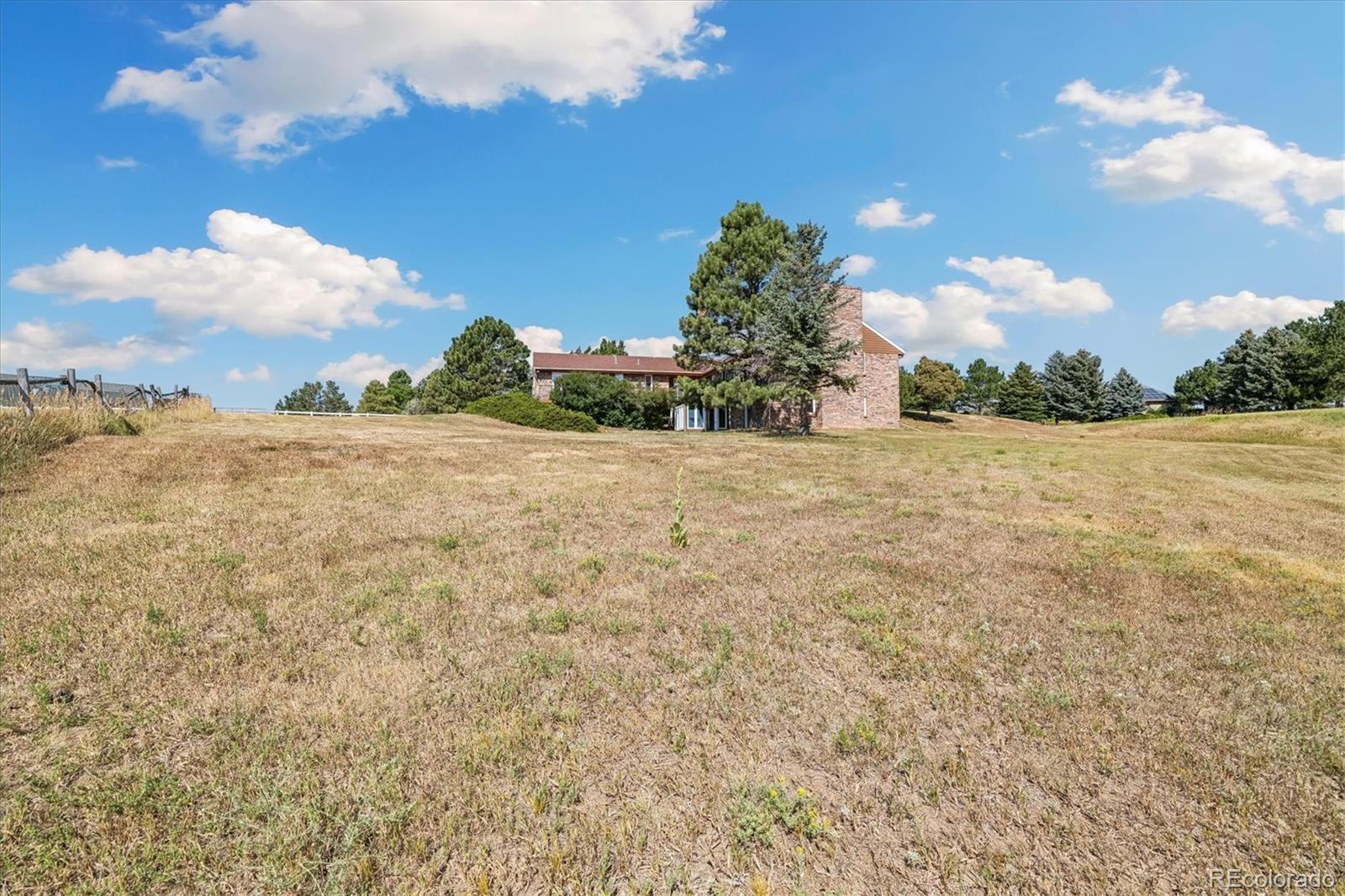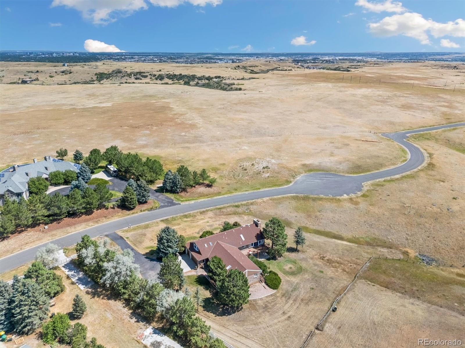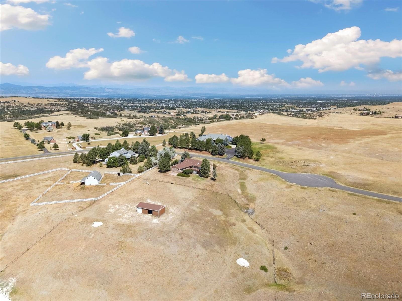 HUGE price improvement!!! Private and RARE 5 acre site! No active HOA! Feel the open space and meadow/mountain views! Expansive outside decking - Custom ranch with a finished walk out basement and 4,798 square feet on a rare to the market 5 acre site in Surrey Ridge Estates - Just 15 minutes back to the DTC! 2 x 6 construction for sturdy living! Not many 5 acre sites this close to town, most are under 2 acres! Traditional 1980's charm with vaulted knotty pine ceilings in the main floor great room! 4 bedroom / 4 bathroom total - Unique over the garage office accessed from the main level! Central A/C with electric heat pump heat!! Granite kitchen - newer laminate - multiple ceiling fans - 2 wood stove style brick fireplaces - Finished walk-out basement with a 2nd large family room, guest bedroom/full bathroom and a traditional spa/hot tub room! Perfect for those who want a ton of square footage that they can update to their own desires + a huge lot for privacy! 40' x 20' - 2 stall horse / tractor barn with electricity - limited covenants and only a voluntary HOA! Original owner home! See it and submit your offer!