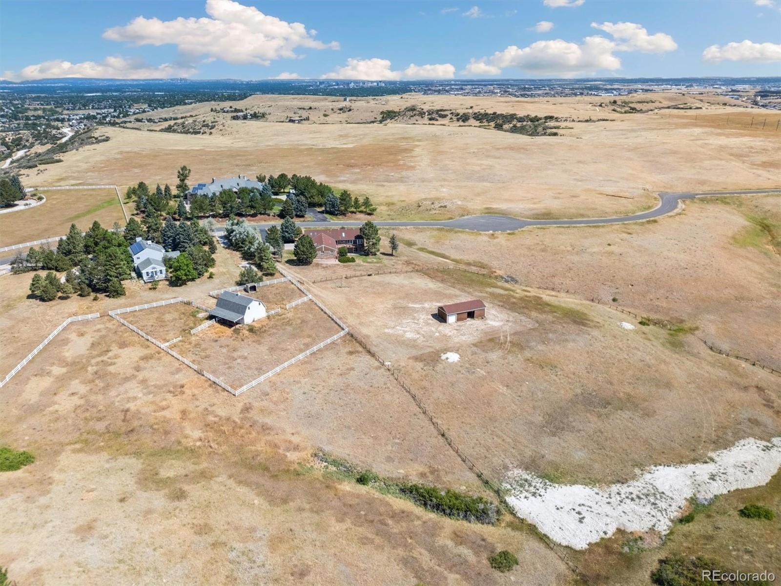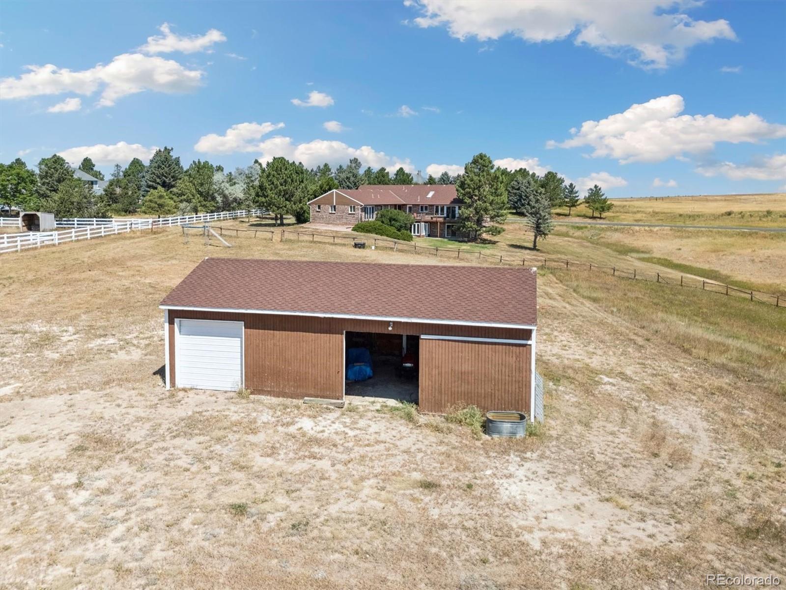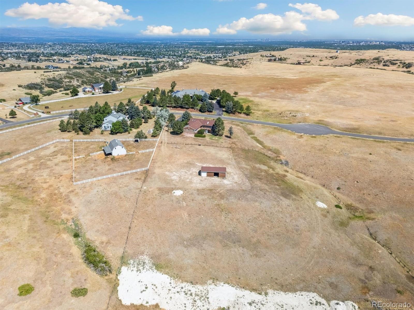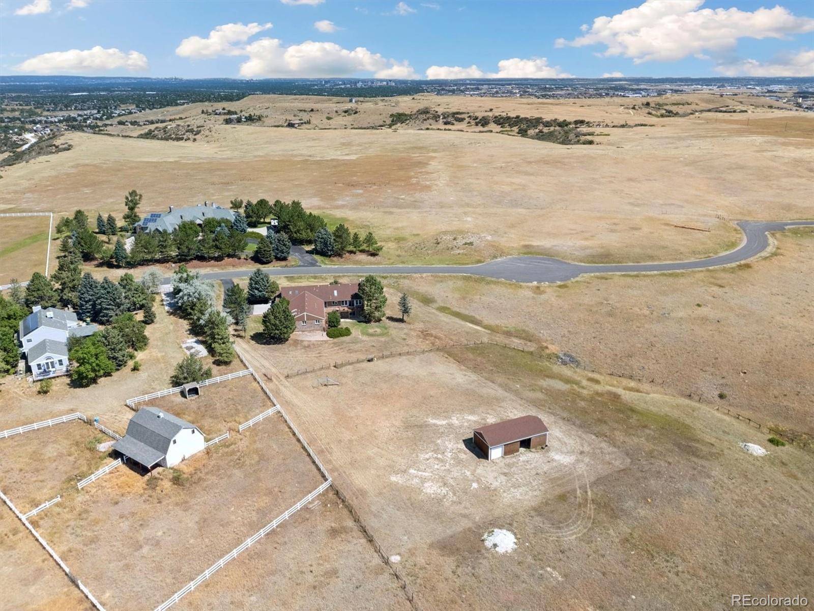 HUGE price improvement!!! Private and RARE 5 acre site! No active HOA! Feel the open space and meadow/mountain views! Expansive outside decking - Custom ranch with a finished walk out basement and 4,798 square feet on a rare to the market 5 acre site in Surrey Ridge Estates - Just 15 minutes back to the DTC! 2 x 6 construction for sturdy living! Not many 5 acre sites this close to town, most are under 2 acres! Traditional 1980's charm with vaulted knotty pine ceilings in the main floor great room! 4 bedroom / 4 bathroom total - Unique over the garage office accessed from the main level! Central A/C with electric heat pump heat!! Granite kitchen - newer laminate - multiple ceiling fans - 2 wood stove style brick fireplaces - Finished walk-out basement with a 2nd large family room, guest bedroom/full bathroom and a traditional spa/hot tub room! Perfect for those who want a ton of square footage that they can update to their own desires + a huge lot for privacy! 40' x 20' - 2 stall horse / tractor barn with electricity - limited covenants and only a voluntary HOA! Original owner home! See it and submit your offer!