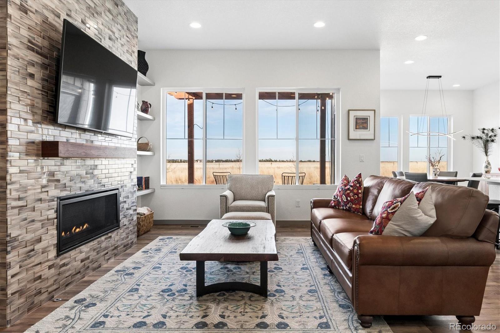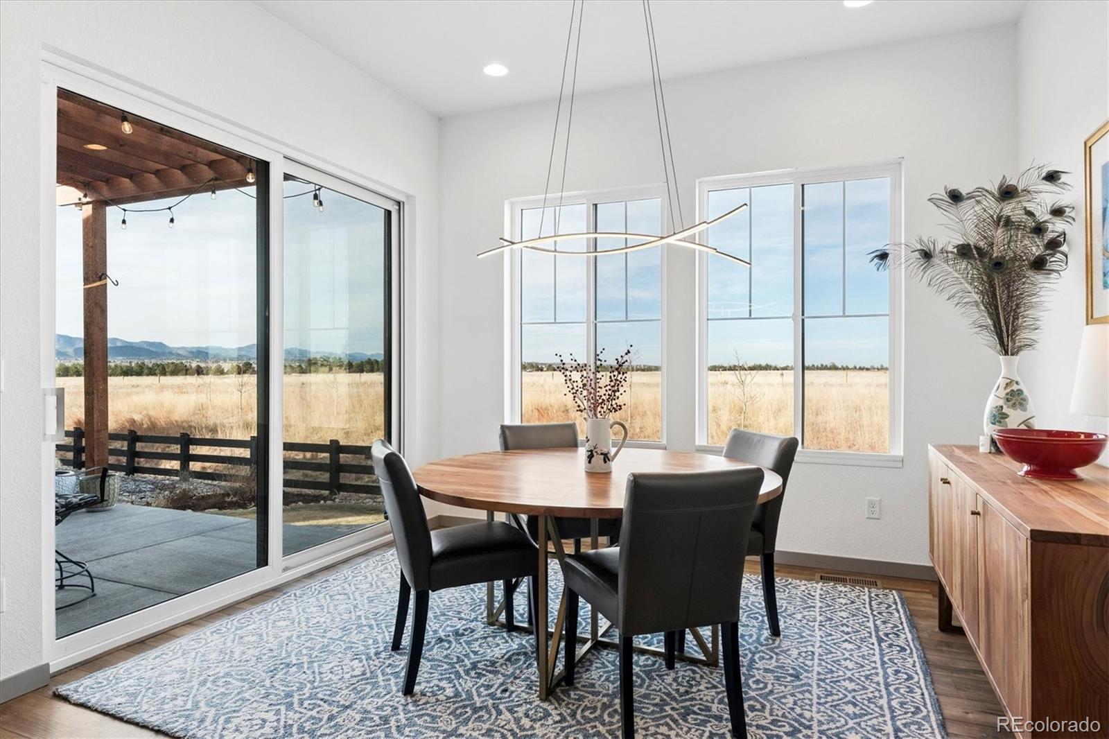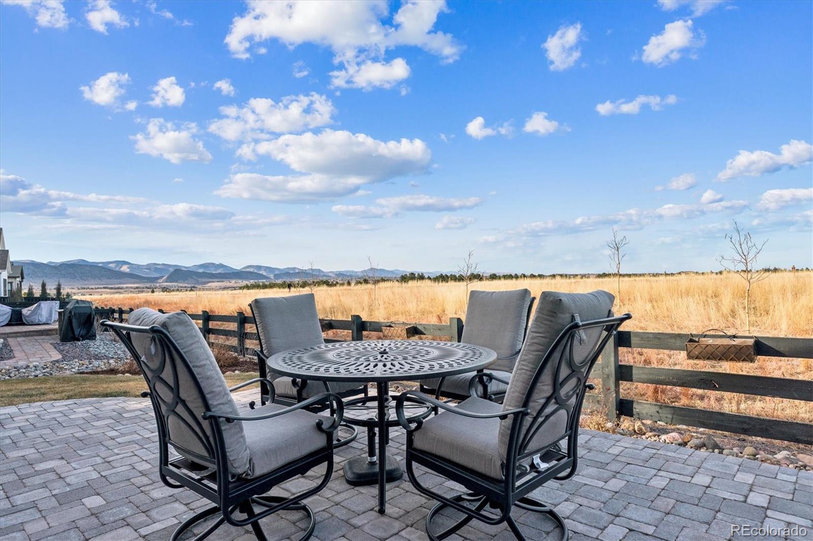This beautifully upgraded ranch home backs up directly to Chatfield State Park, offering a peaceful, private setting and truly stunning mountain views. Designed for everyday comfort and long term efficiency, the home includes an upgraded whole house air filtration system, a tankless water heater, and a whole house water filtration system with a touchless kitchen sink. The main level features a primary and secondary bedroom both with private bathrooms, an open living and dining space, a gourmet kitchen with top of the line JennAir appliances, Shea's elite cabinet selection extended to the ceiling, upgraded light fixtures, and a custom glass tile fireplace surround. The primary bath includes lighted mirrors and thoughtful upgrades that elevate the space. A bright and spacious main level office provides a quiet and comfortable work from home setup. The finished basement expands the home with two additional bedrooms, a second office, a large family room, a gym/recreation room, a full bath, a kitchenette for entertaining, and generous storage. Outdoor living is just as compelling with a large backyard patio plus an elevated porch with cedar pergola ideal for enjoying the open space and mountain backdrop. With direct access to nearby trails and close proximity to dining, shopping, and everyday conveniences, this home offers the best of both privacy and accessibility. Homes with this setting, view, and level of thoughtful upgrades are rarely available. Schedule your private showing today. Seller is a licensed associate broker.