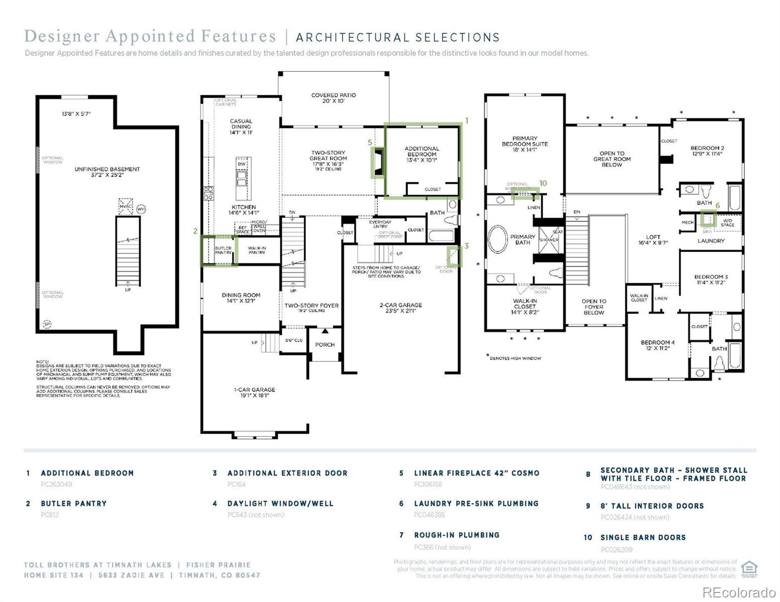 This is where modern luxury meets high-efficiency and convenience at Toll Brothers at Timnath Lakes. The popular Fisher floorplan has a grand two-story foyer with a gorgeous staircase. The main level is open concept, but still offers space for private dining and entertaining while also providing a guest bedroom and a full bath. The 19' tall great room is the focal point of the home, offering a plethora of natural light with large windows overlooking the rear covered patio. This home has a gourmet kitchen with large island, a separate casual dining space, and butler pantry plus a hidden mud room. The second level showcases a generous primary suite connecting to a resort-style bath with a luxury shower and a free-standing tub. The 14' x 8' walk-in primary closet is also impressive. There is an open bridge, overlooking the great room below, to the other side of the second level, where you will discover three large bedrooms, two full baths, a laundry room with a window, an open loft and a large linen closet. The unfinished basement offers 9' ceilings, rough-in plumbing, and two daylight windows. The home also offers plenty of storage for cars and toys with a 3-car split garage; front landscaping is included. Located just blocks from the lake, a 7-mile trail system, future clubhouse and outdoor pool, and walkable to downtown Timnath shops, brewery, post office and Timnath Elementary School. Timnath Lakes sits within Larimer County and the Poudre School district, just north of the Harmony Rd. corridor, 15 minutes southeast of Downtown Fort Collins, and less than two miles east of I-25. Come see it today before it's gone - and move right in! Amazing Interest Rate Promotions Included!