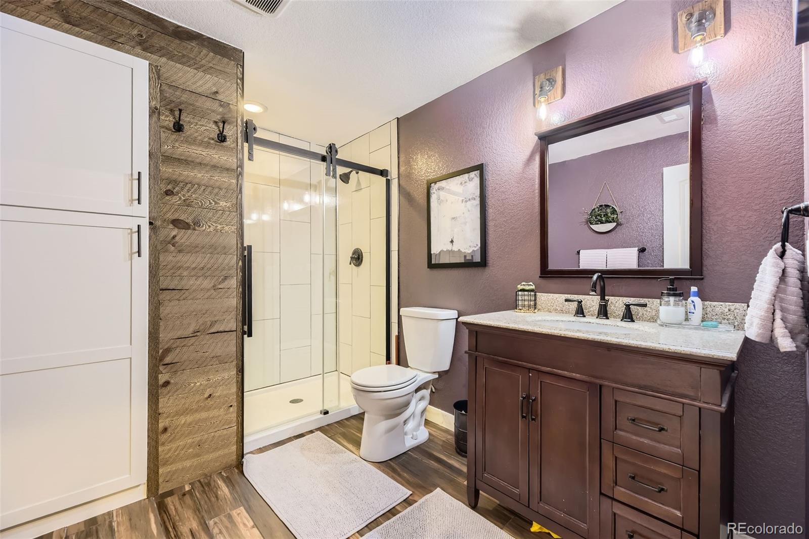 Located in the highly sought-after Southshore community, this beautifully updated home leaves nothing builder-grade behind—every room has been thoughtfully remodeled, including updated lighting, hardware, and custom built-in storage throughout. The open floor plan features wood floors across the main level with a remodeled fireplace as a stunning focal point. The primary bathroom has been completely remodeled with a luxurious soaking tub. A previously open loft has been enclosed to create a versatile bonus space, while the fully finished basement offers two distinct areas: one for living and exercise, and another that includes a bedroom, bathroom, sitting area, and wet bar—ideal for guests or entertaining. The outdoor space is designed for enjoyment year-round, with dedicated dining and lounge areas and a gas line run directly to the grill. Additional perks include a garage with lofted storage, maintenance-free landscaping, and a quiet location on a low-traffic horseshoe block. Just 0.2 miles from direct access to Aurora reservoir and surrounded by miles of walking and biking trails, this home also grants access to two community pools and two gyms. With its thoughtful upgrades and unbeatable location, this home truly has it all. New roof installed in July 2025!