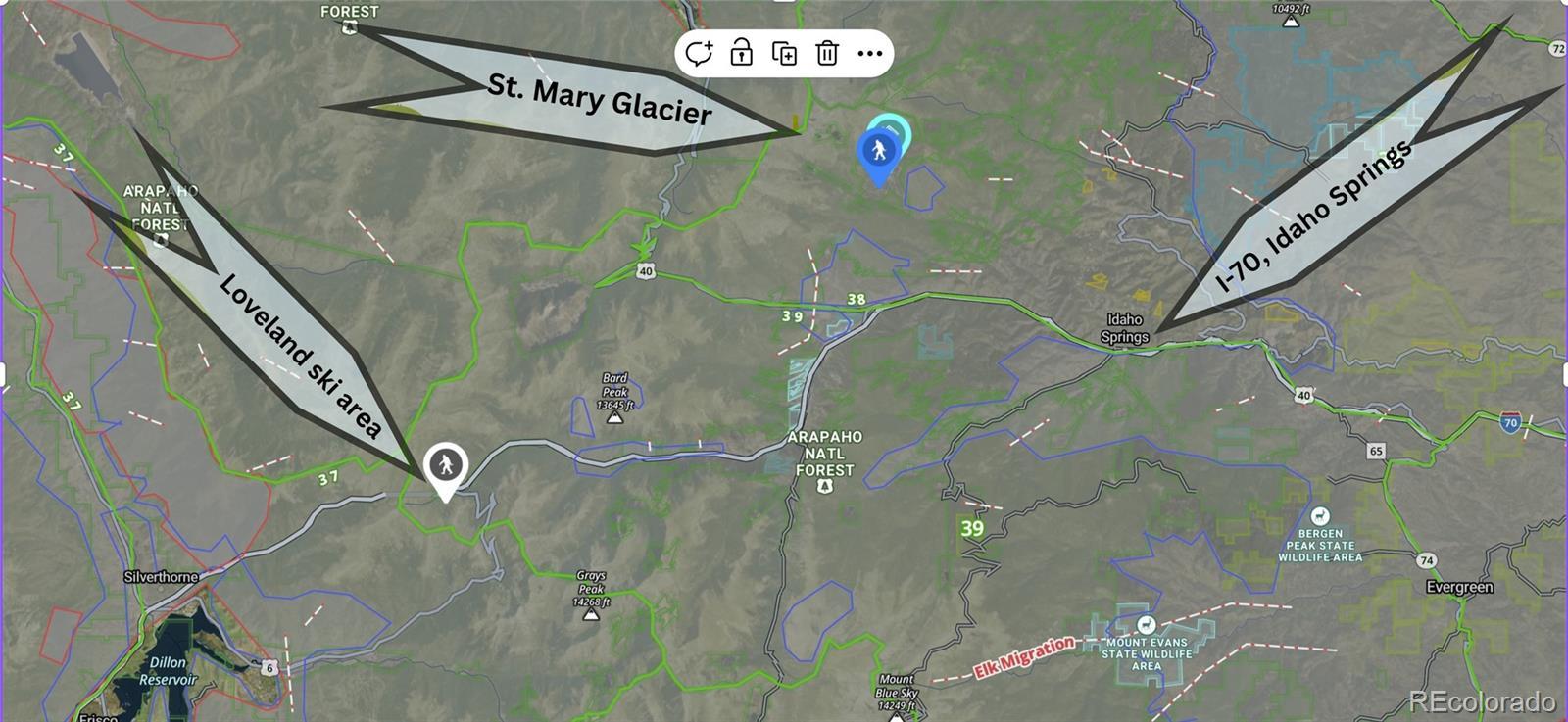 Welcome to the Rocky Mountain Lifestyle. Plan your Get-A-Way. Immerse yourself into nature. Easy access all year. Easy access to multiple ski resorts & I-70. This parcel is nestled in the forest with plenty of privacy. This property is sloped. So much to see & do in this area. Only minutes to town & an hour to Denver. Great place to get away. Bring your friends. Bring your family. Bring your fishing pole. Excellent private fishing opportunities at Lake Quivira & Silver Lake for residents only. Special passes may be purchased through the POA. Spectacular hiking trails to St Mary's Glacier. Contact St Mary's Glacier POA site to ask about fishing privileges and more: https://www.stmaryspoa.com/ To learn more about the St Mary's Glacier Community: https://st-marys-glacier-community.mailchimpsites.com/ To learn more about potential water or sewer hook-ups: https://smgwater.myruralwater.com/ To learn more about building requirements, wells, or septic systems: https://www.co.clear-creek.co.us/95/Building-Department Link for an app showing approximate property boundaries with OnXHunt: https://www.onxmaps.com/ Download map in advance in case you lose cell service. Link for GPS coordinates for Google Maps or OnXHunt: GPS: GPS:39.81847, -105.64778 DIRECTIONS: From Idaho Springs, take I-70 W for 1.9 miles. Take Exit 238 toward Fall River Rd. Turn right onto Fall River Rd. Go for 8.2 miles. Turn left onto Alice Rd in about .3 miles your destination will be on the right. Buyers to verify building requirements with Clear Creek County. Buyers to verify all utility information. No blind offers will be accepted. There is no survey available for this parcel.