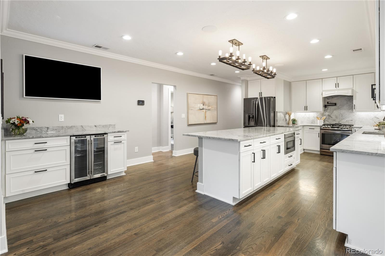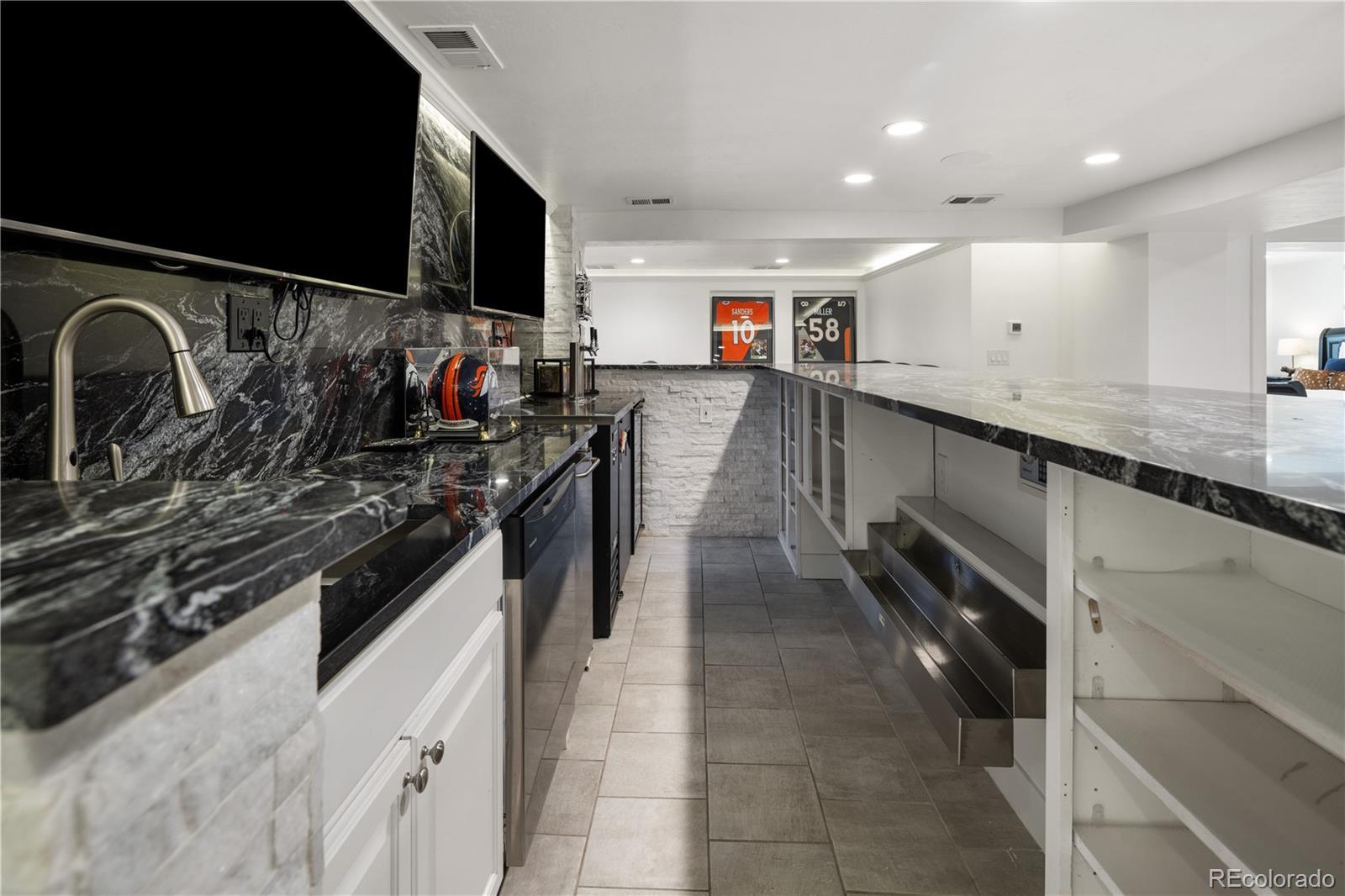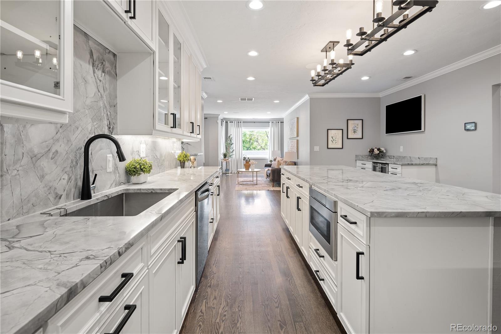 Welcome to your dream home in the heart of Denver's coveted Hilltop neighborhood—where timeless charm meets modern luxury. This beautifully updated 4-bedroom, 4-bathroom home is designed for hosting unforgettable gatherings—inside and out with over-the-top amenities and thoughtfully designed spaces. At the heart of the home is a chef-worthy kitchen, featuring an expansive quartz island, solid marble countertops and backsplash, over the stove pot filler, a built-in coffee bar, and a wine fridge—ideal for daily living and hosting in style. The kitchen flows seamlessly into a large dining room and living area, creating a bright and open layout that’s perfect for gatherings of any size. Outdoors, enjoy the custom-built kitchen complete with a 5-burner commercial grill, flat top grill, surrounded by mature trees and lush, low-maintenance turf. A separate dog yard and dog door keep four-legged friends happy too. The entertainment-ready basement boasts a full-size wet bar with three 55” mounted TVs, an adjacent home theater area, Large bedroom with en suite bathroom and walk-in closet, laundry closet, and a second kitchen just steps away for serving snacks and drinks without missing the action —perfect for game days or movie nights. Other standout features include: Oversized 3-car attached garage with high ceilings and ample storage Spacious mudroom with built-in dog wash station and dedicated laundry area Comfortable, private bedrooms and updated bathrooms designed for modern living Heavy Weight Ultra 50 Year Roof Professional security system 10x30 Crawlspace for additional storage with 5' high ceiling This one-of-a-kind Hilltop home combines luxury, functionality, and location in one perfect package. Don’t miss your chance to own a piece of one of Denver’s most desirable neighborhoods!