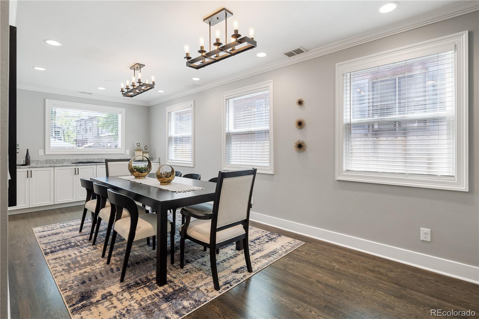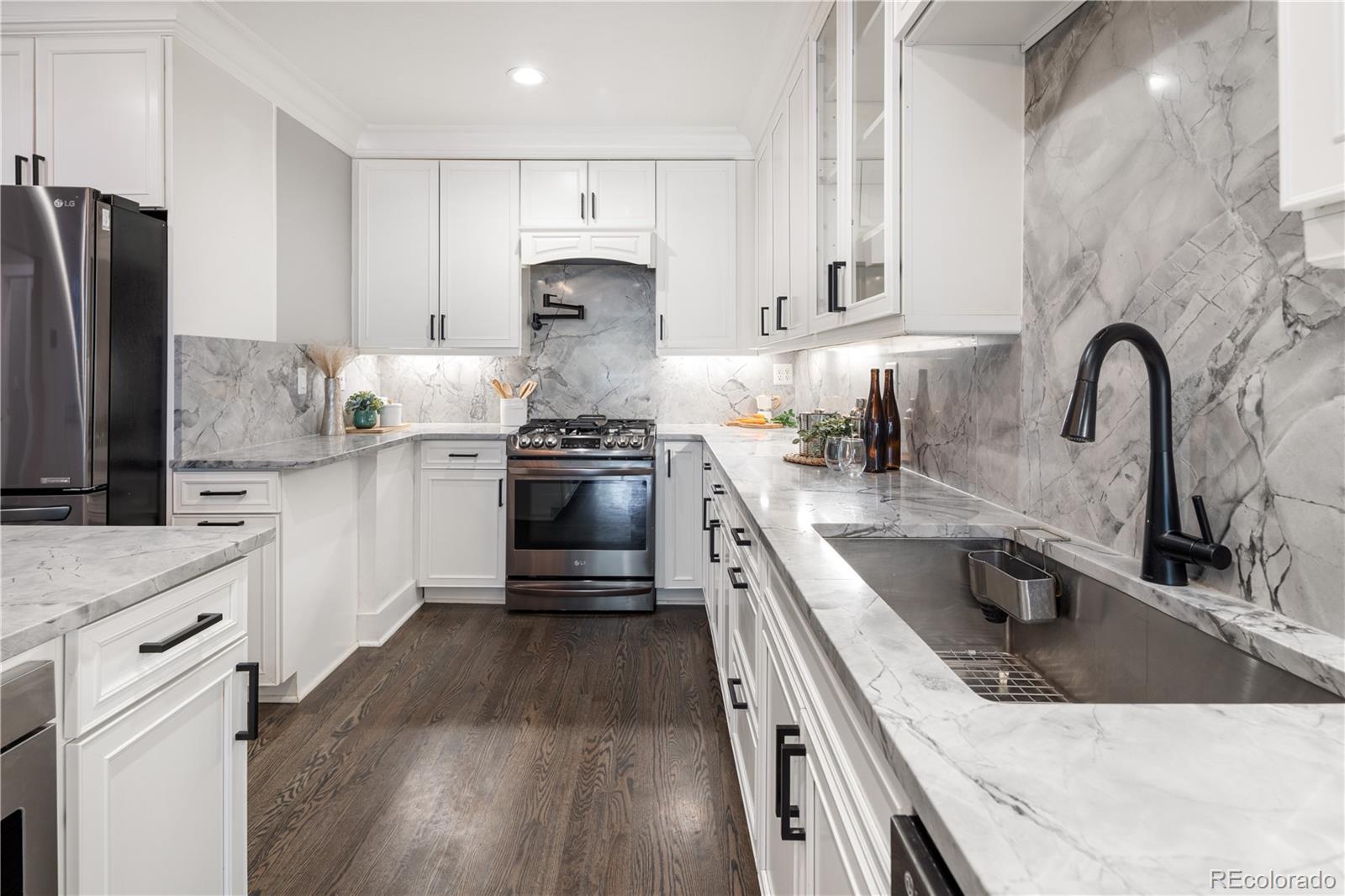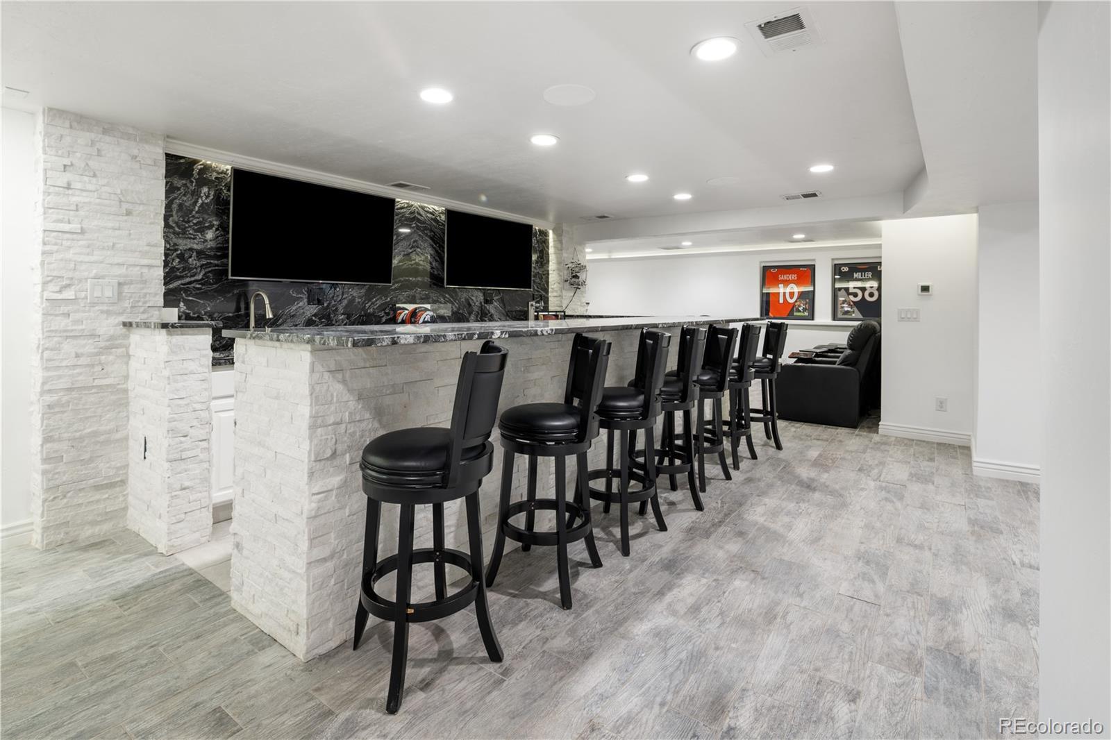 Welcome to your dream home in the heart of Denver's coveted Hilltop neighborhood—where timeless charm meets modern luxury. This beautifully updated 4-bedroom, 4-bathroom home is designed for hosting unforgettable gatherings—inside and out with over-the-top amenities and thoughtfully designed spaces. At the heart of the home is a chef-worthy kitchen, featuring an expansive quartz island, solid marble countertops and backsplash, over the stove pot filler, a built-in coffee bar, and a wine fridge—ideal for daily living and hosting in style. The kitchen flows seamlessly into a large dining room and living area, creating a bright and open layout that’s perfect for gatherings of any size. Outdoors, enjoy the custom-built kitchen complete with a 5-burner commercial grill, flat top grill, surrounded by mature trees and lush, low-maintenance turf. A separate dog yard and dog door keep four-legged friends happy too. The entertainment-ready basement boasts a full-size wet bar with three 55” mounted TVs, an adjacent home theater area, Large bedroom with en suite bathroom and walk-in closet, laundry closet, and a second kitchen just steps away for serving snacks and drinks without missing the action —perfect for game days or movie nights. Other standout features include: Oversized 3-car attached garage with high ceilings and ample storage Spacious mudroom with built-in dog wash station and dedicated laundry area Comfortable, private bedrooms and updated bathrooms designed for modern living Heavy Weight Ultra 50 Year Roof Professional security system 10x30 Crawlspace for additional storage with 5' high ceiling This one-of-a-kind Hilltop home combines luxury, functionality, and location in one perfect package. Don’t miss your chance to own a piece of one of Denver’s most desirable neighborhoods!