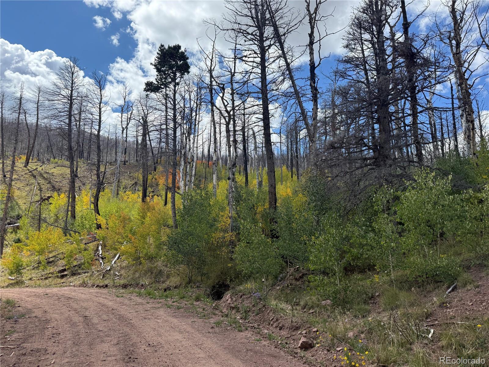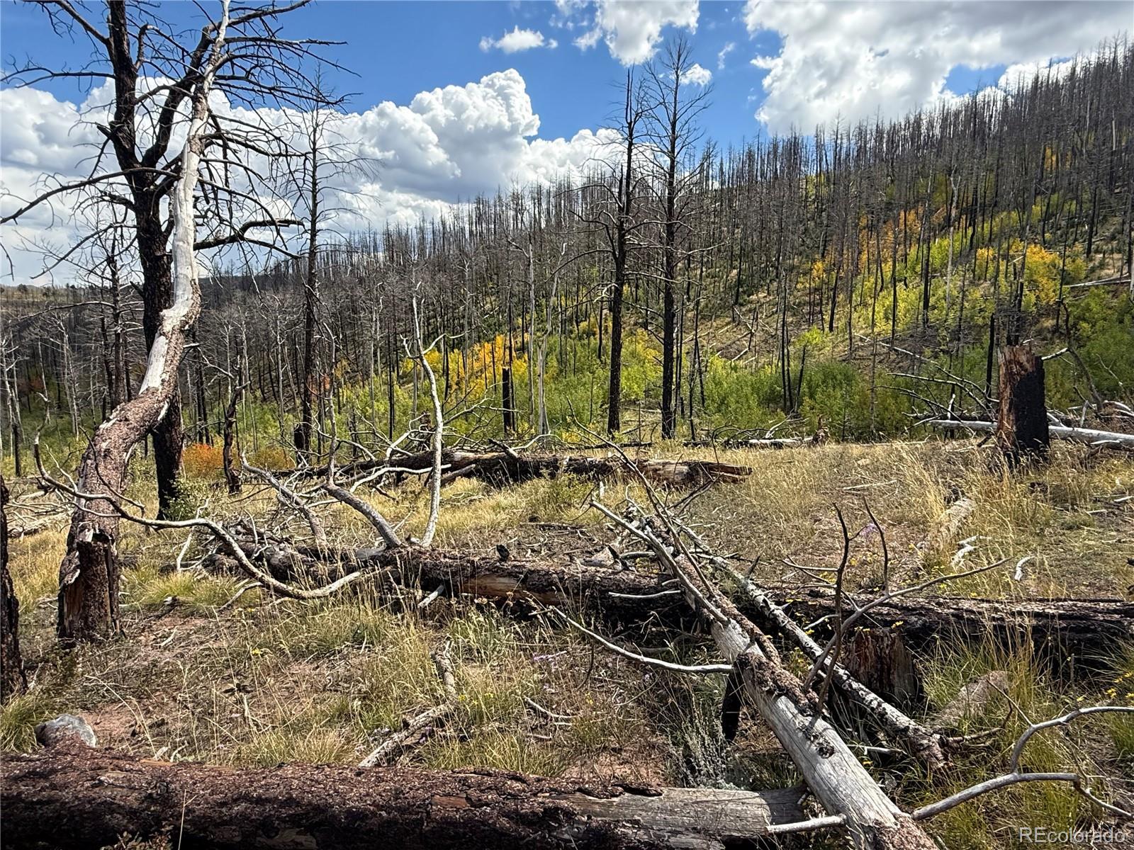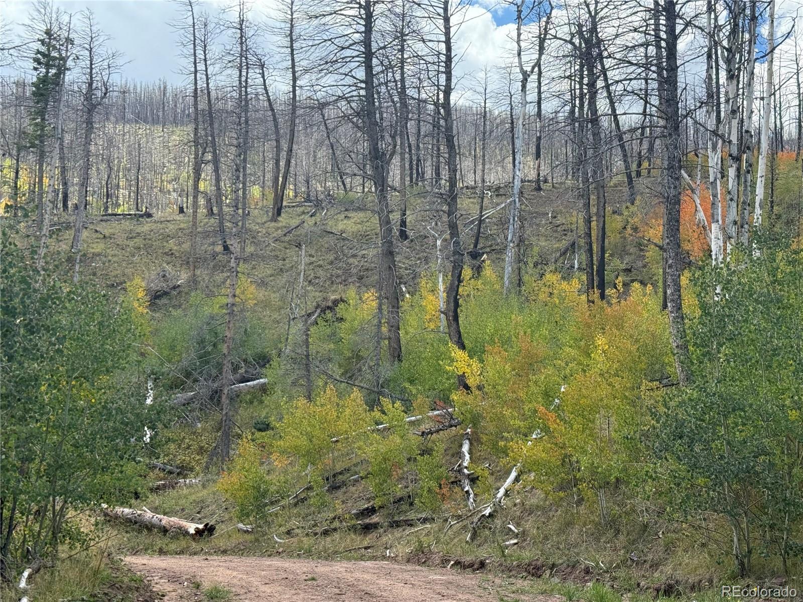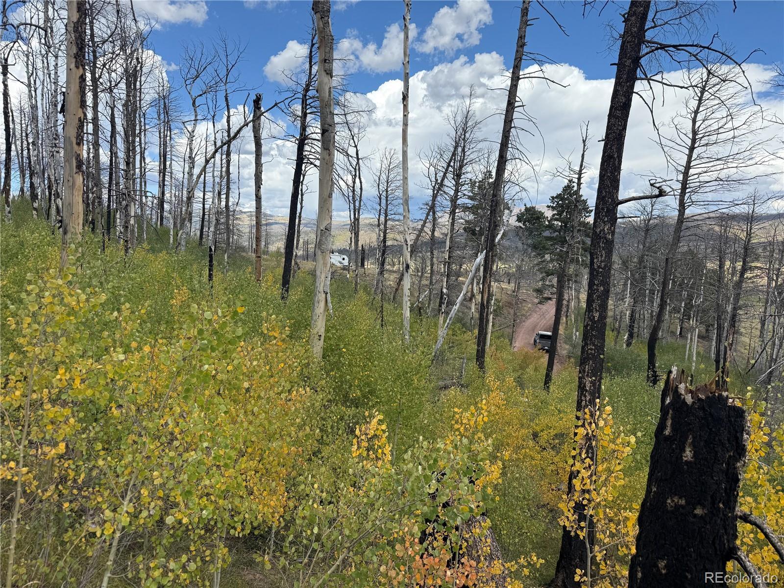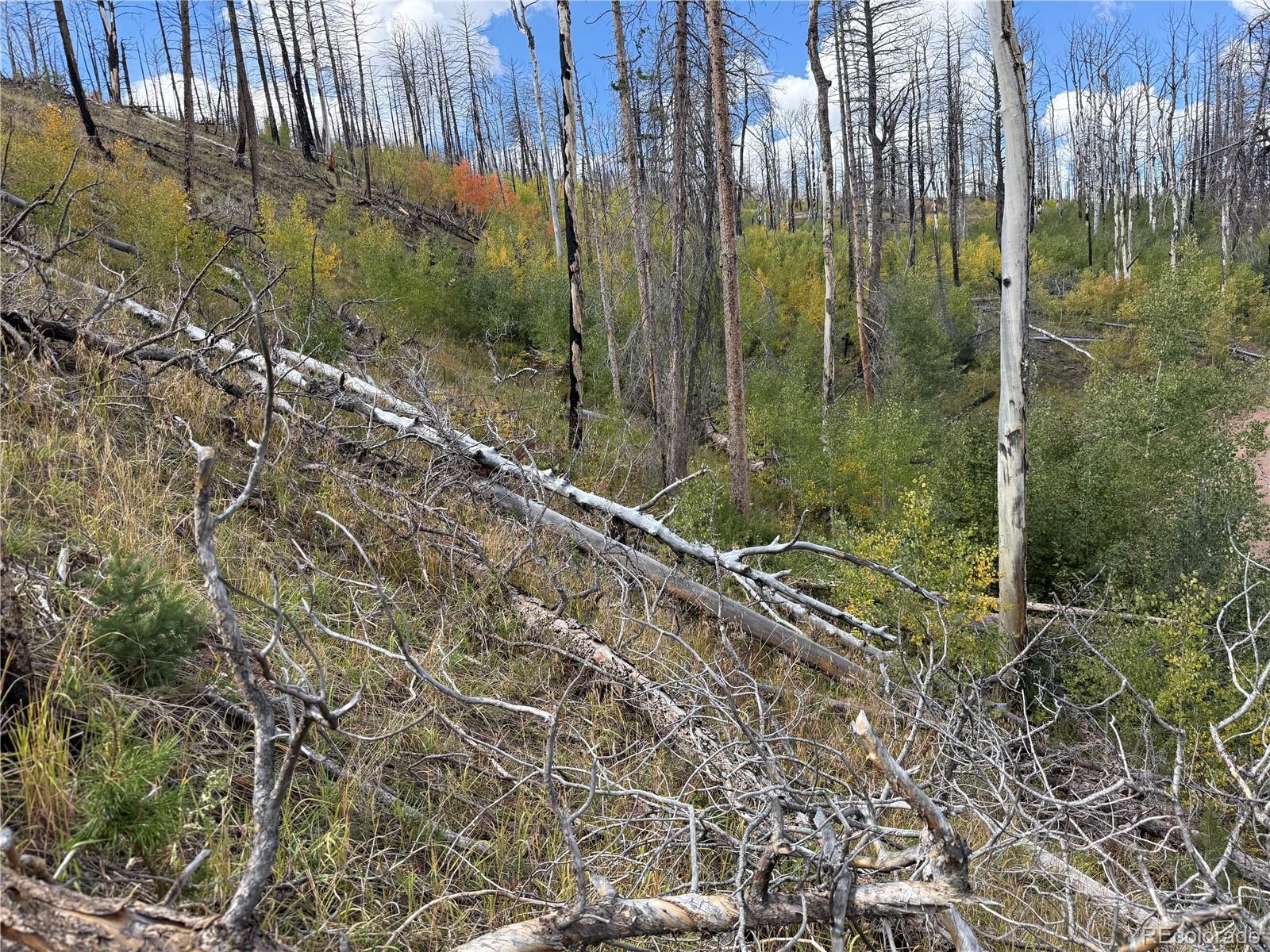 This big almost 4 acre lot has a ton of new aspen trees coming back in after the 2018 Fire. Plus there are some scattered pine trees coming in. It is steep off of the road but the hike to the top is worth the walk. The views are amazing. plus there is a small creek running through the very top corner of the lot. Lots of wildlife in the area that use the water source.