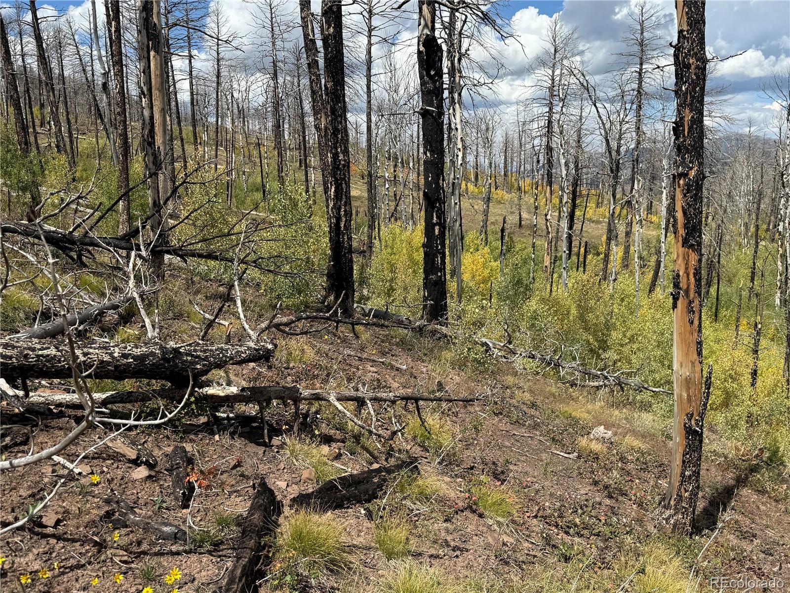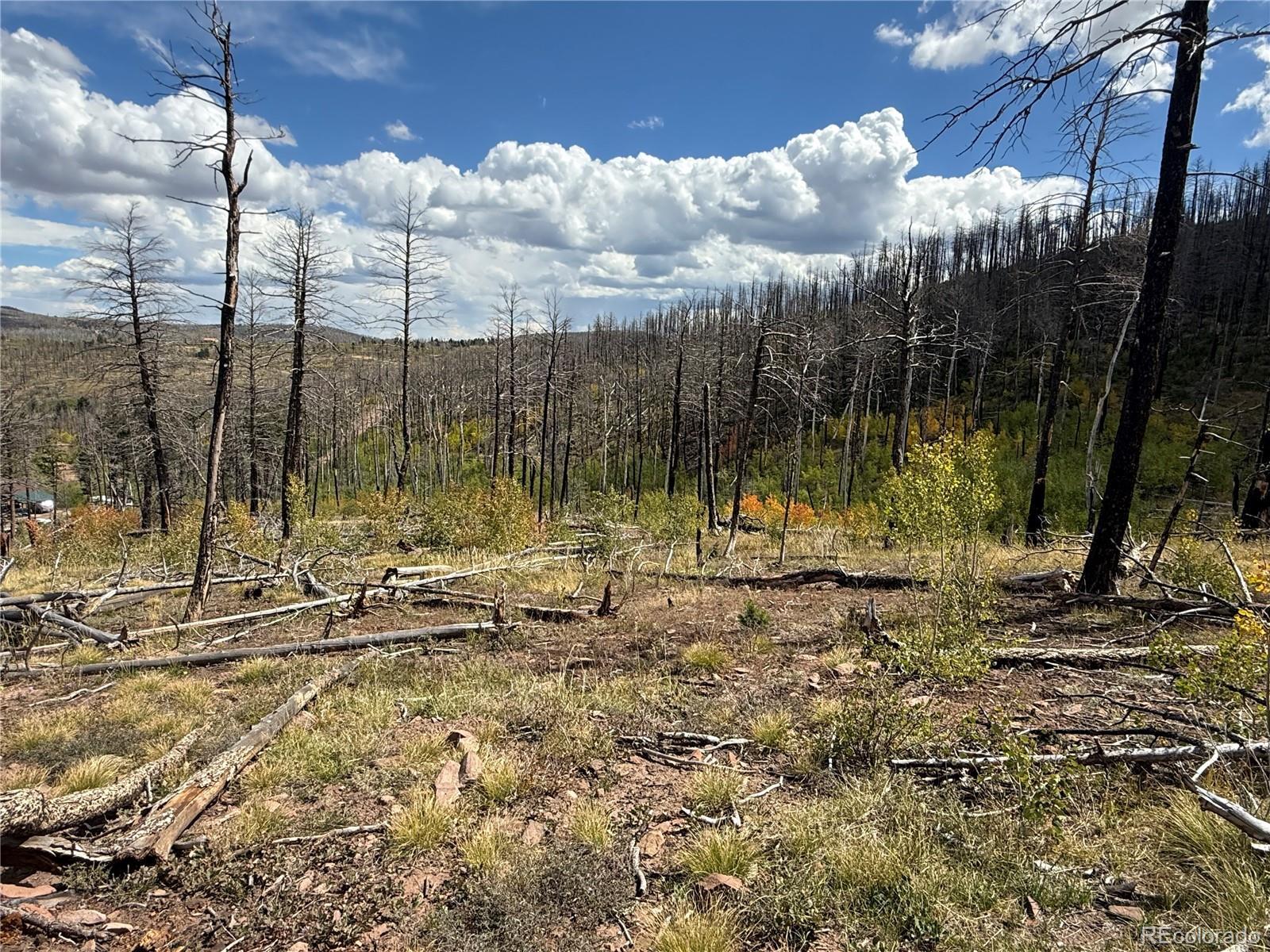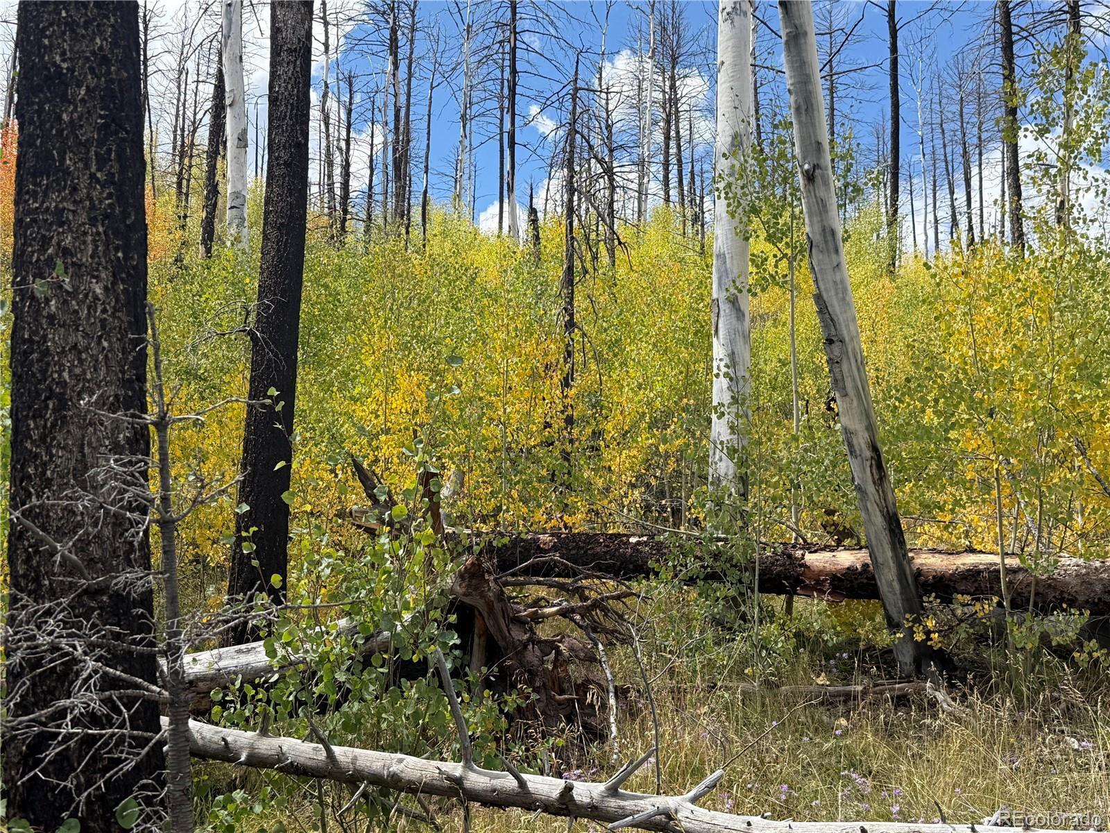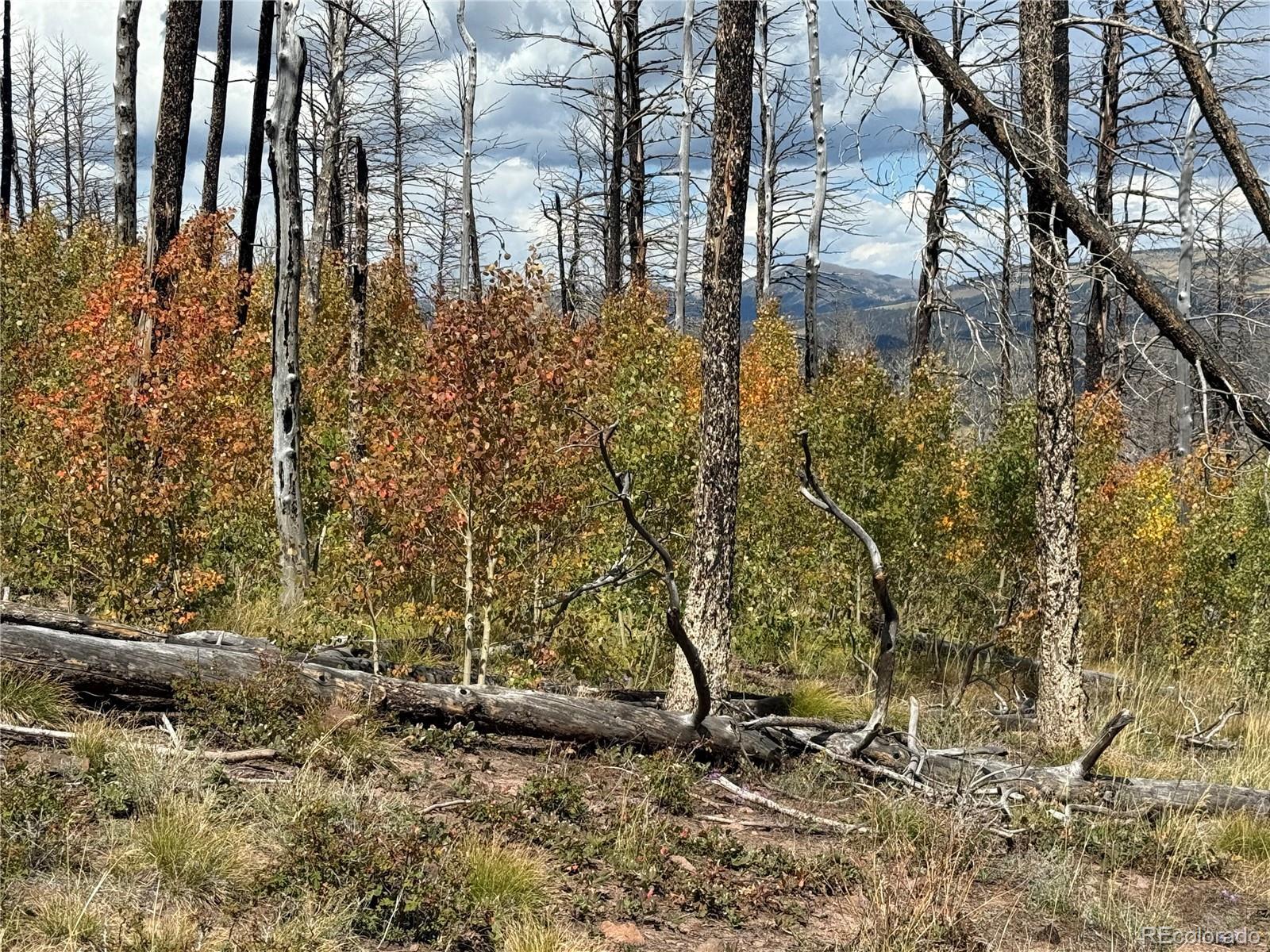 This big almost 4 acre lot has a ton of new aspen trees coming back in after the 2018 Fire. Plus there are some scattered pine trees coming in. It is steep off of the road but the hike to the top is worth the walk. The views are amazing. plus there is a small creek running through the very top corner of the lot. Lots of wildlife in the area that use the water source.