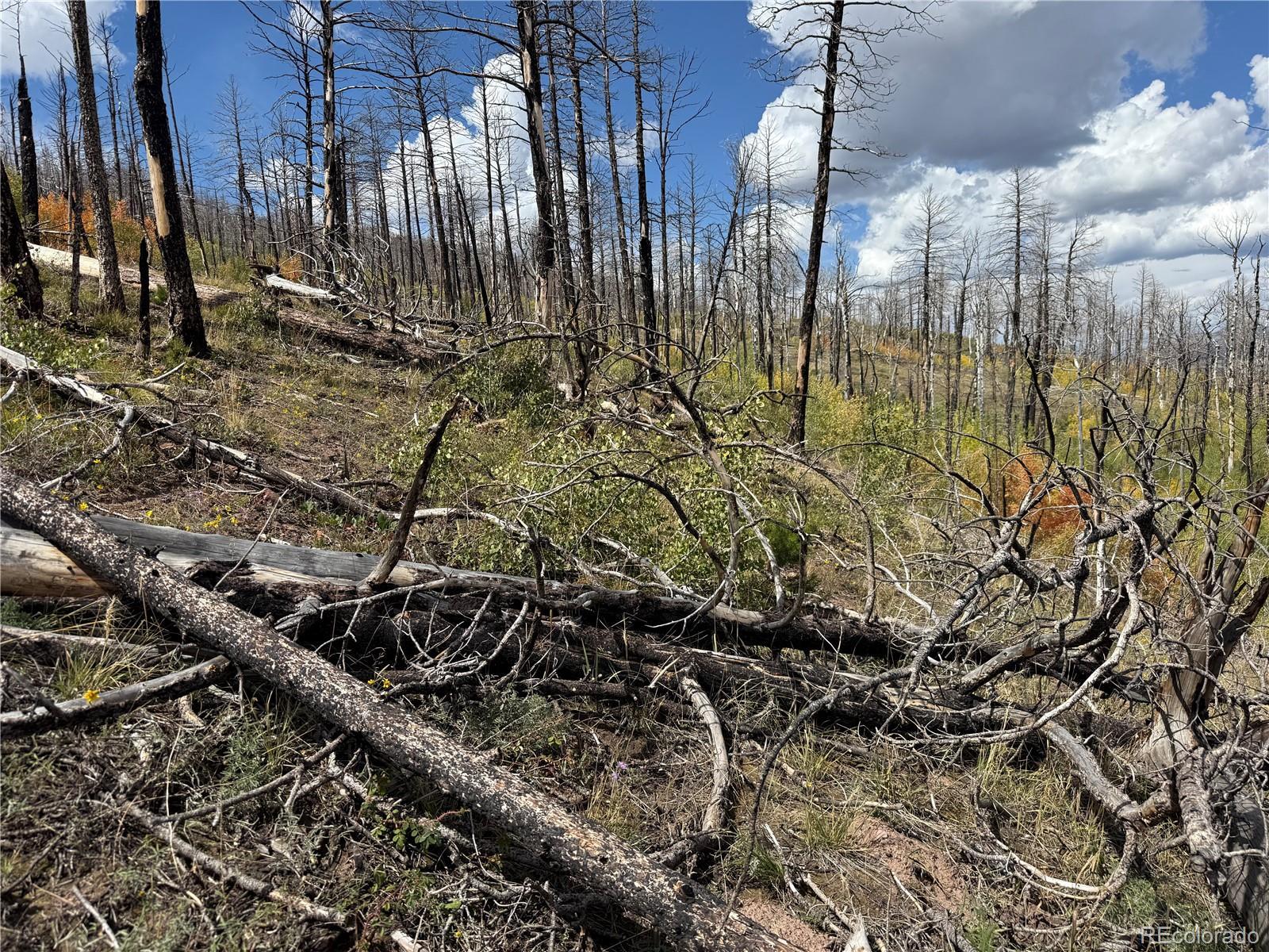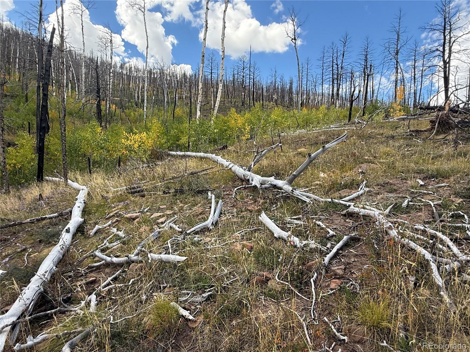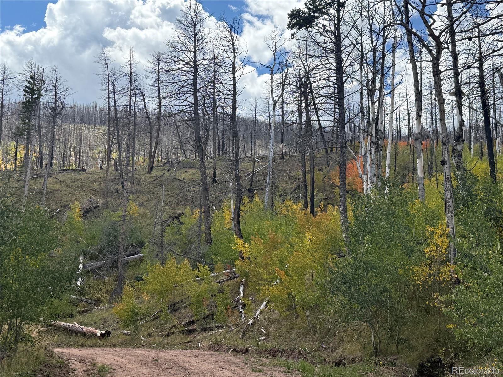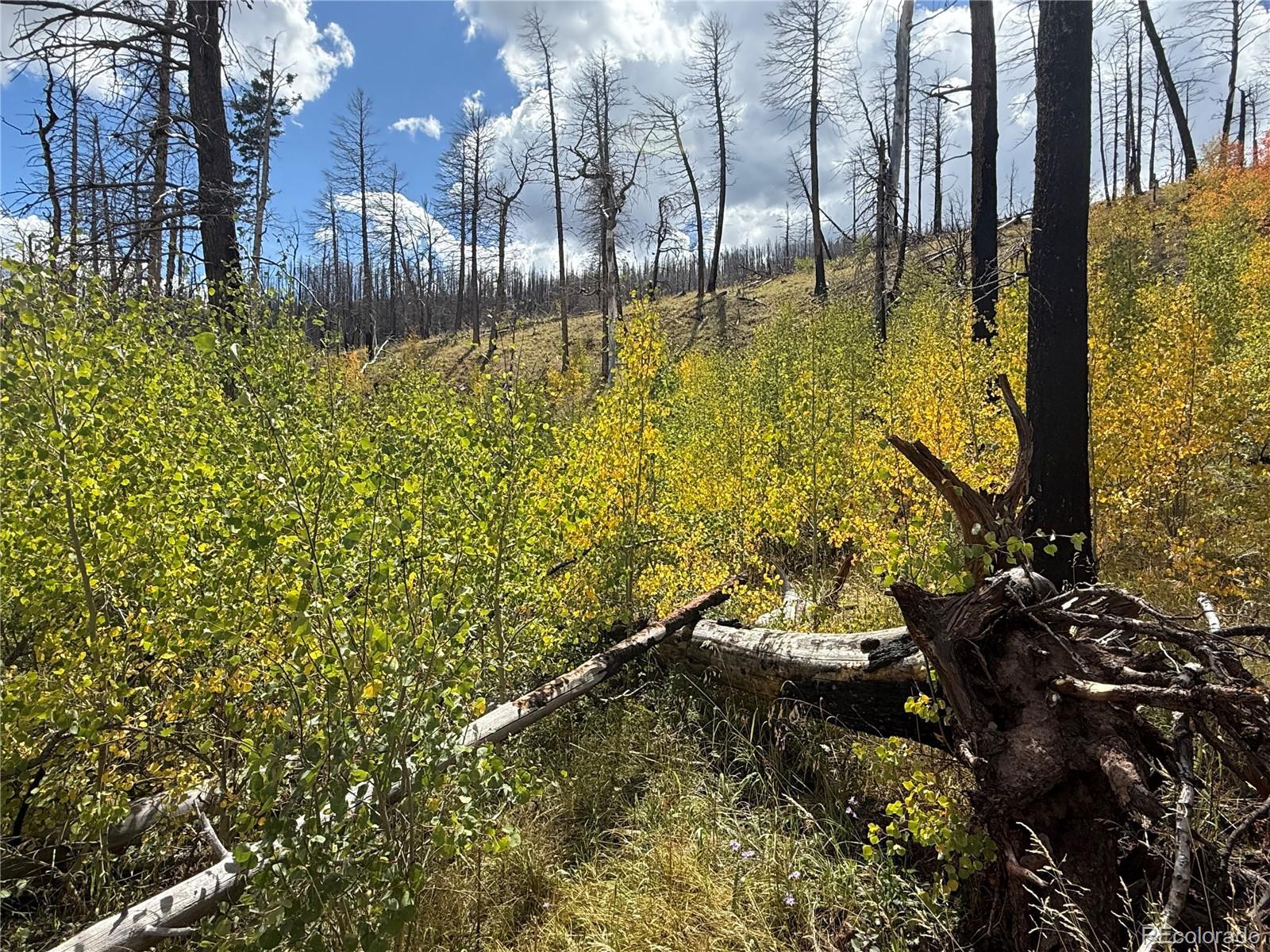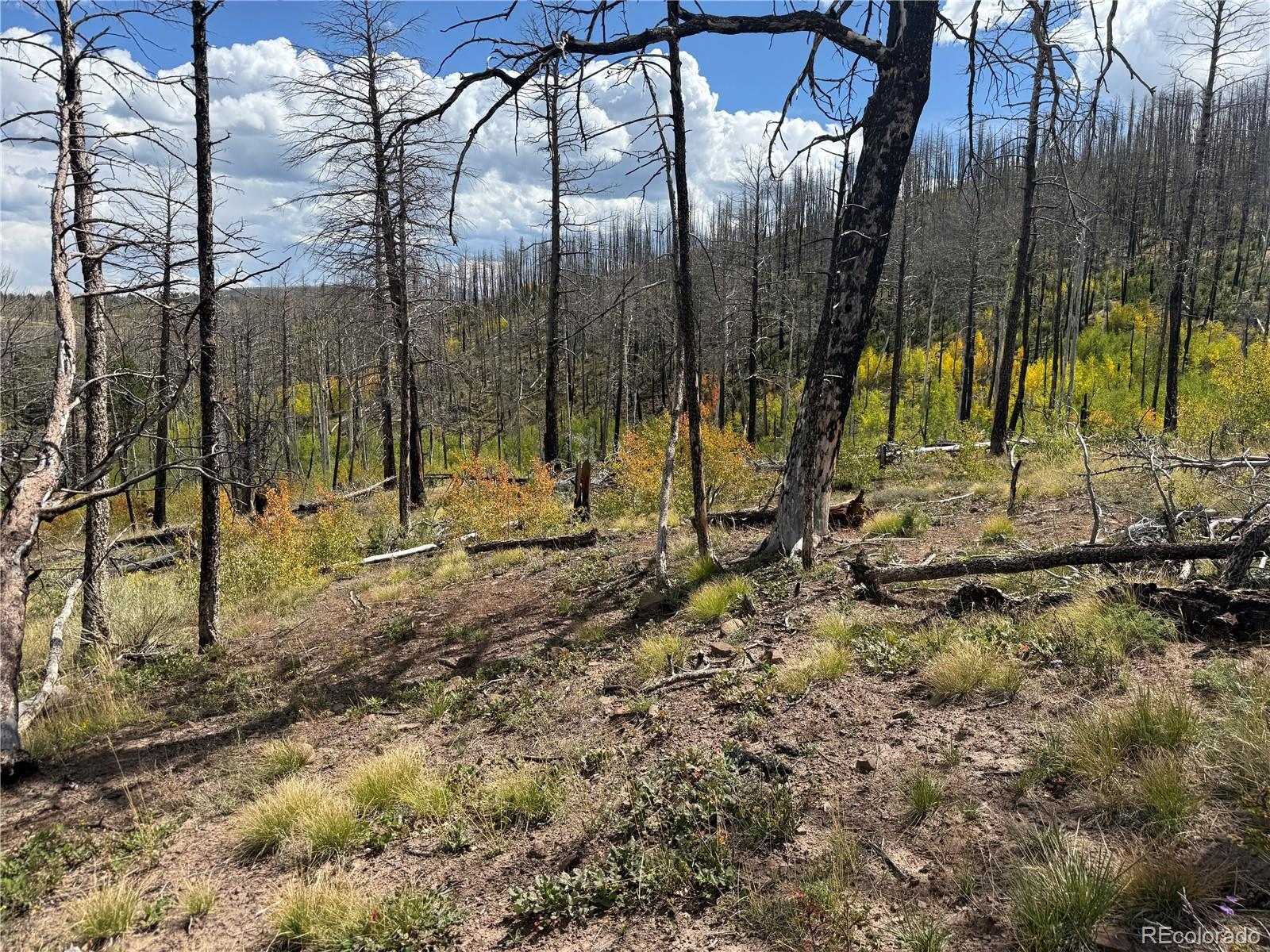 This big almost 4 acre lot has a ton of new aspen trees coming back in after the 2018 Fire. Plus there are some scattered pine trees coming in. It is steep off of the road but the hike to the top is worth the walk. The views are amazing. plus there is a small creek running through the very top corner of the lot. Lots of wildlife in the area that use the water source.