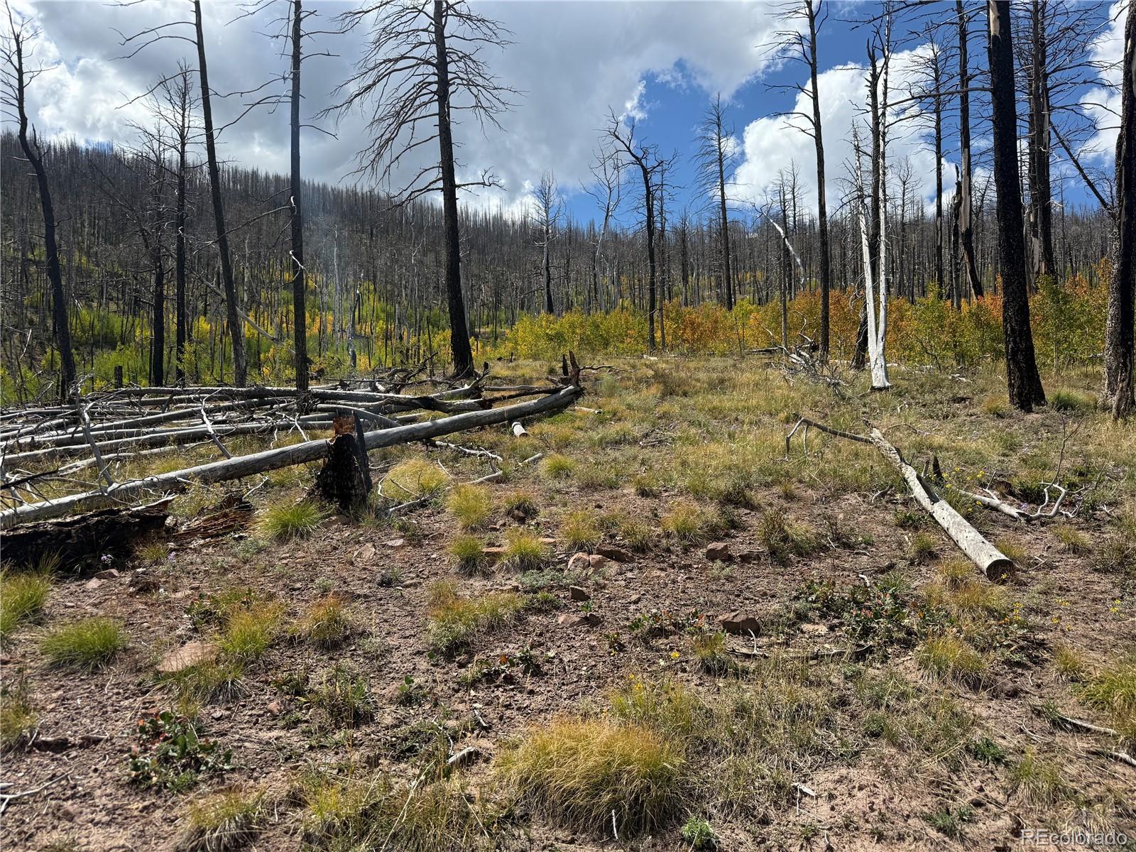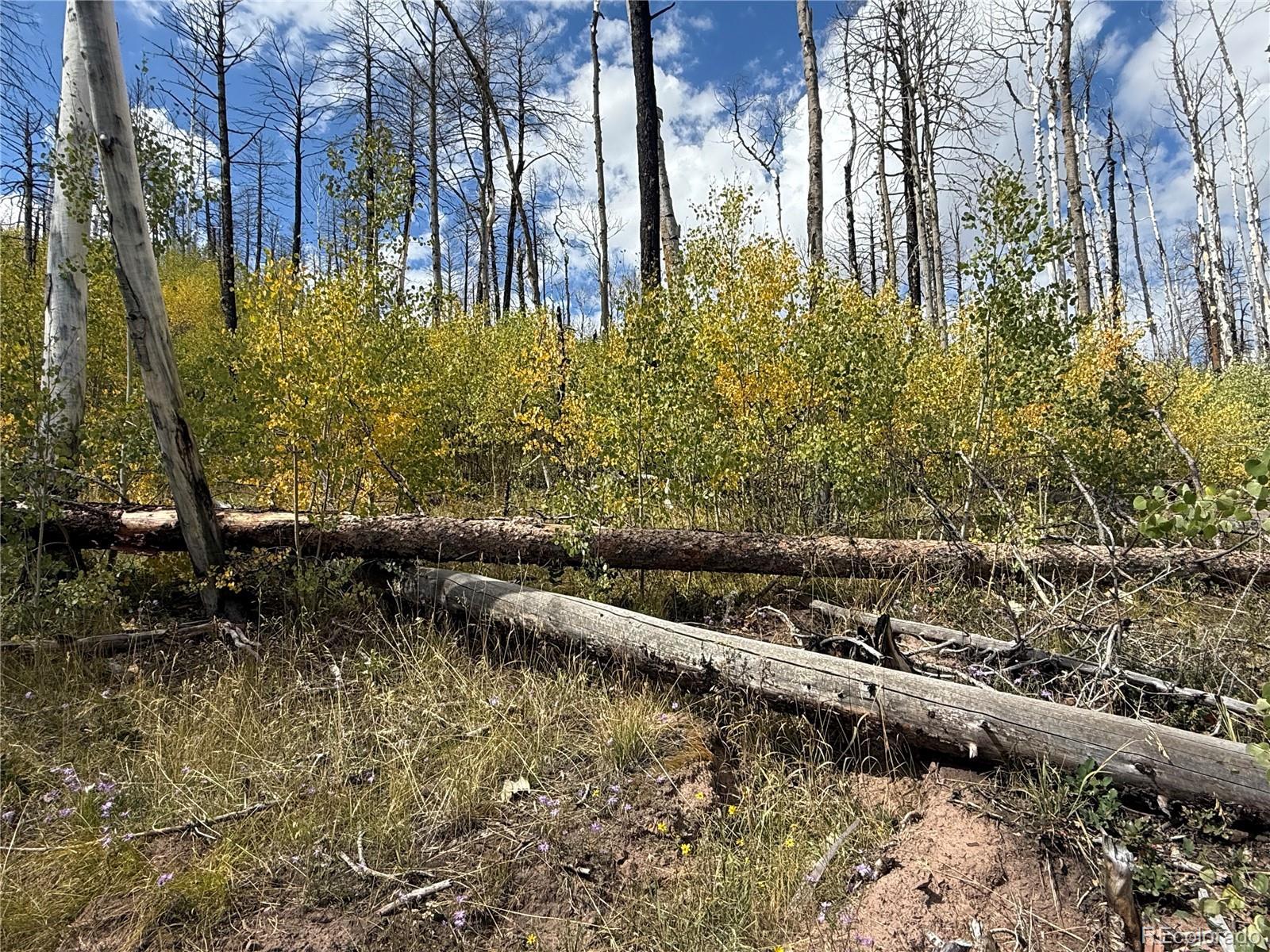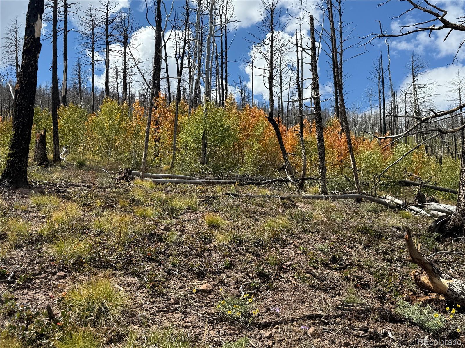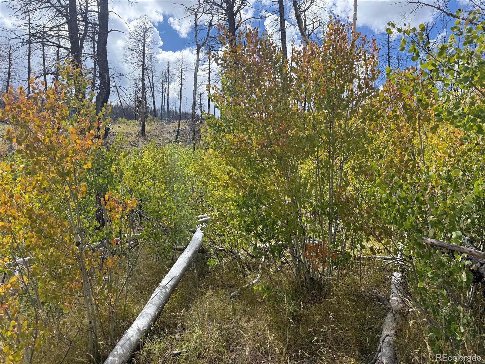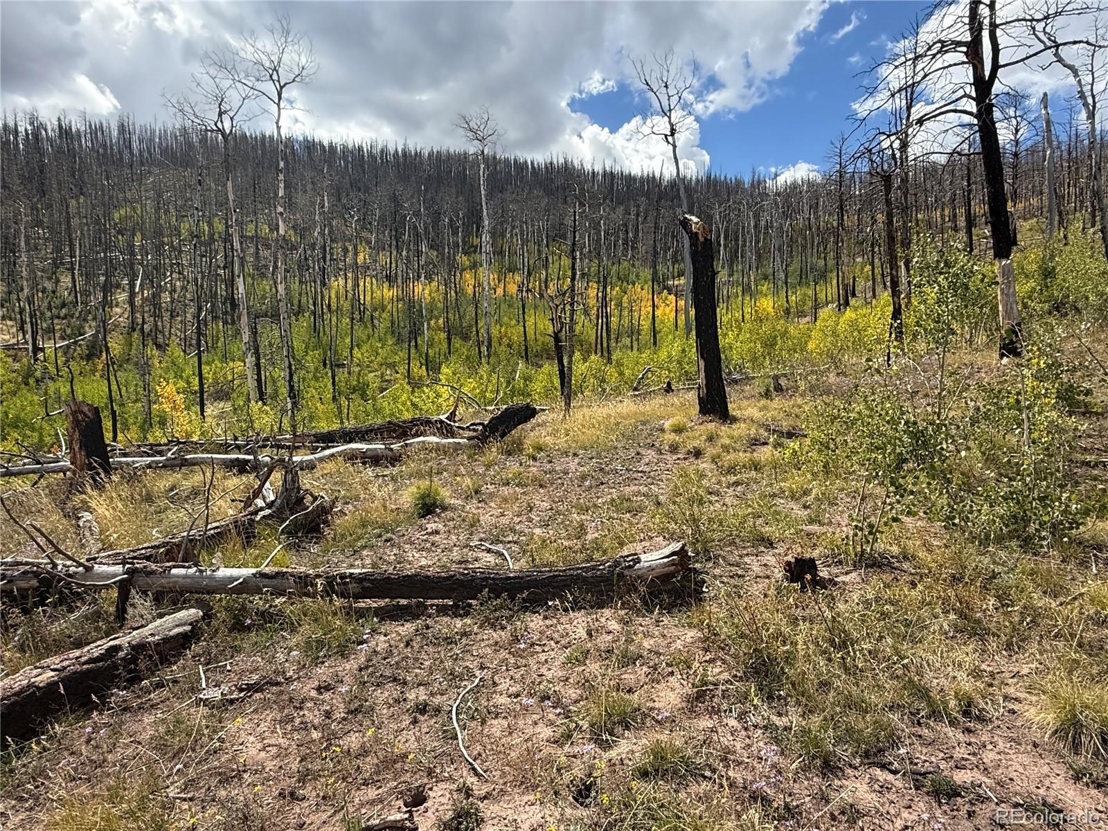 This big almost 4 acre lot has a ton of new aspen trees coming back in after the 2018 Fire. Plus there are some scattered pine trees coming in. It is steep off of the road but the hike to the top is worth the walk. The views are amazing. plus there is a small creek running through the very top corner of the lot. Lots of wildlife in the area that use the water source.