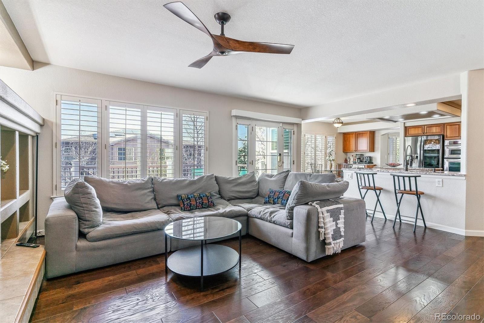 OPPORTUNITY KNOCKS to own this executive style home nestled in Westridge on an expansive, corner lot with mountain views*This meticulously maintained residence boasts a grand two-story entryway with a curved staircase, adorned with expansive wide plank hardwood floors, architectural accents, updated paint and upgrades galore*The remodeled kitchen is a chef's delight with slab granite countertops, gas cooktop, double ovens and warming drawer*Ton's of prep space on the center island, too*Built-in bar area is perfect for cocktails or coffee*The kitchen seamlessly flows into the updated family room featuring a contemporary stacked tile fireplace and shelving entertainment center*The main floor also features a formal dining room & living room which can be re-purposed into a wine bar and entertaining space*The main floor office is close to the action but not too close*Your new home also offers a convenient main floor laundry*Upstairs, unwind in the spacious loft with picturesque mountain views or retreat to your primary suite with a cozy fireplace, custom walk-in closet, and spa-like bath*Three additional bedrooms are located upatairs ONE WITH A PRIVATE ENSUITE BATH-PERFECT FOR GUESTS**Another bath services both additional bedrooms*The fully finished walkout basement will give hours of enjoyment*Start your day in your home gym then off to work in your office and end your day with friends at your full wet bar with beverage fridge while watching the game*Tons of space for relaxation and entertainment*Outside, enjoy an evening on your trex deck or the covered stamped concrete patio in the landscaped backyard oasis with it's abundance of trees*Ideally located just blocks from Marcy Park and minutes from Central Park & Town Center, residents can indulge in the plethora of amenities and outdoor activities that Highlands Ranch has to offer, including 70 miles of scenic trails,16 local parks, 2644 acres of open space & a variety of dining options*Check out the Virtual Tour!