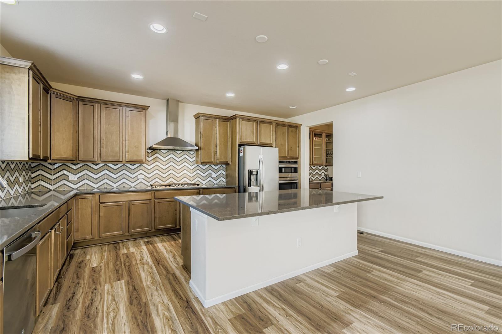Assumable 3.62% 30yr FHA loan! Welcome to this beautifully maintained and nearly new 2021-built home in Brighton! Owners selected the "Thomas" as it was the Biggest model available. This expansive residence boasts a massive 4,838 sq ft* of living space (3,248 sq ft* above ground) consisting of 5 bedrooms, 4.5 bathrooms, and a thoughtfully designed floor plan that blends open-concept living with functional separation of space. Step into the grand 2-story foyer before leading to the spacious living room with bright natural light and easy flow to the gourmet kitchen — featuring distinctive warm cabinets with quartz countertops, herringbone backsplash, stainless appliances, large island, bonus wet bar, and formal dining room. The main level offers an attractive blend of daily living and entertaining space, while upstairs provides a generously sized primary suite and bath retreat, another suite/private bath, 2 additional bedrooms/1 bath, and a conveniently located upstairs laundry room. Finished basement adds extra living space with 1 bedroom, 1 bath, family room, and flex room — perfect for a media, office, gym, or playroom — offering flexibility for today’s lifestyles. Outside, you’ll enjoy a low-maintenance yard on a nicely sized 6,600+ sq ft lot* with room to entertain, relax, or enjoy gatherings under the Optioned covered patio sheltering from the elements. Built for modern comfort, the home includes efficient construction, a 3-car (finished) attached garage, and the peace of mind of being just a few years old. You’ll appreciate quick access to I-76 & E-470 shopping, dining, parks, Prairie Center, DIA, Barr Lake, and major commuter routes while enjoying the sense of community. Bring your finishing touches and move-in ready mindset — this home is ready to confidently call it yours in time for the Holidays. Schedule your showing today and don’t miss out on this exceptional value home!