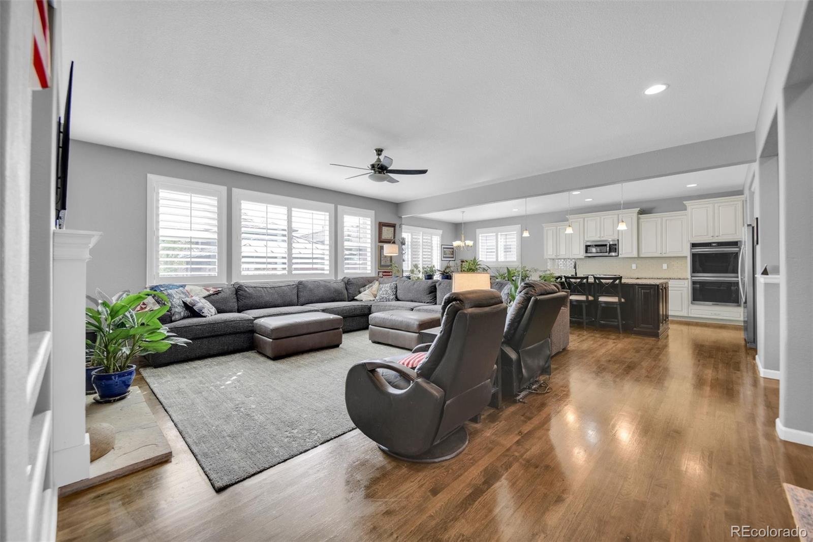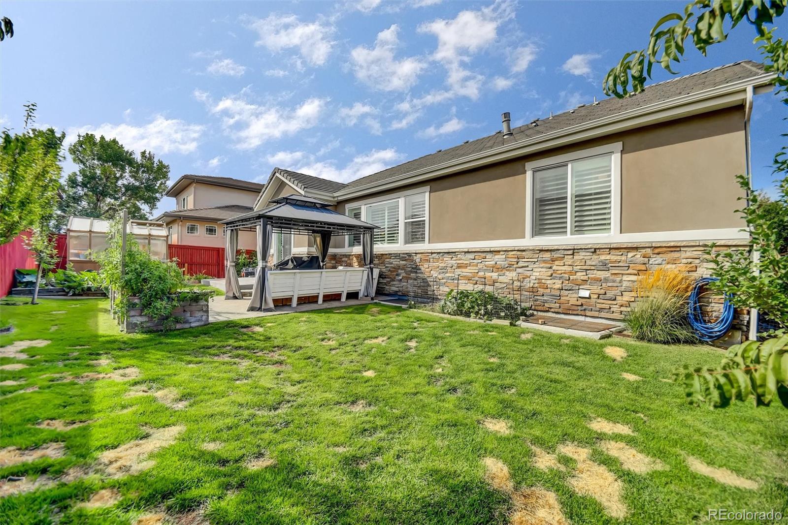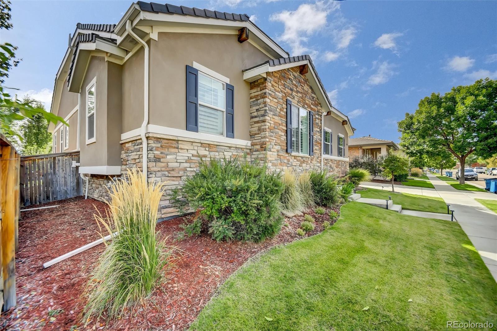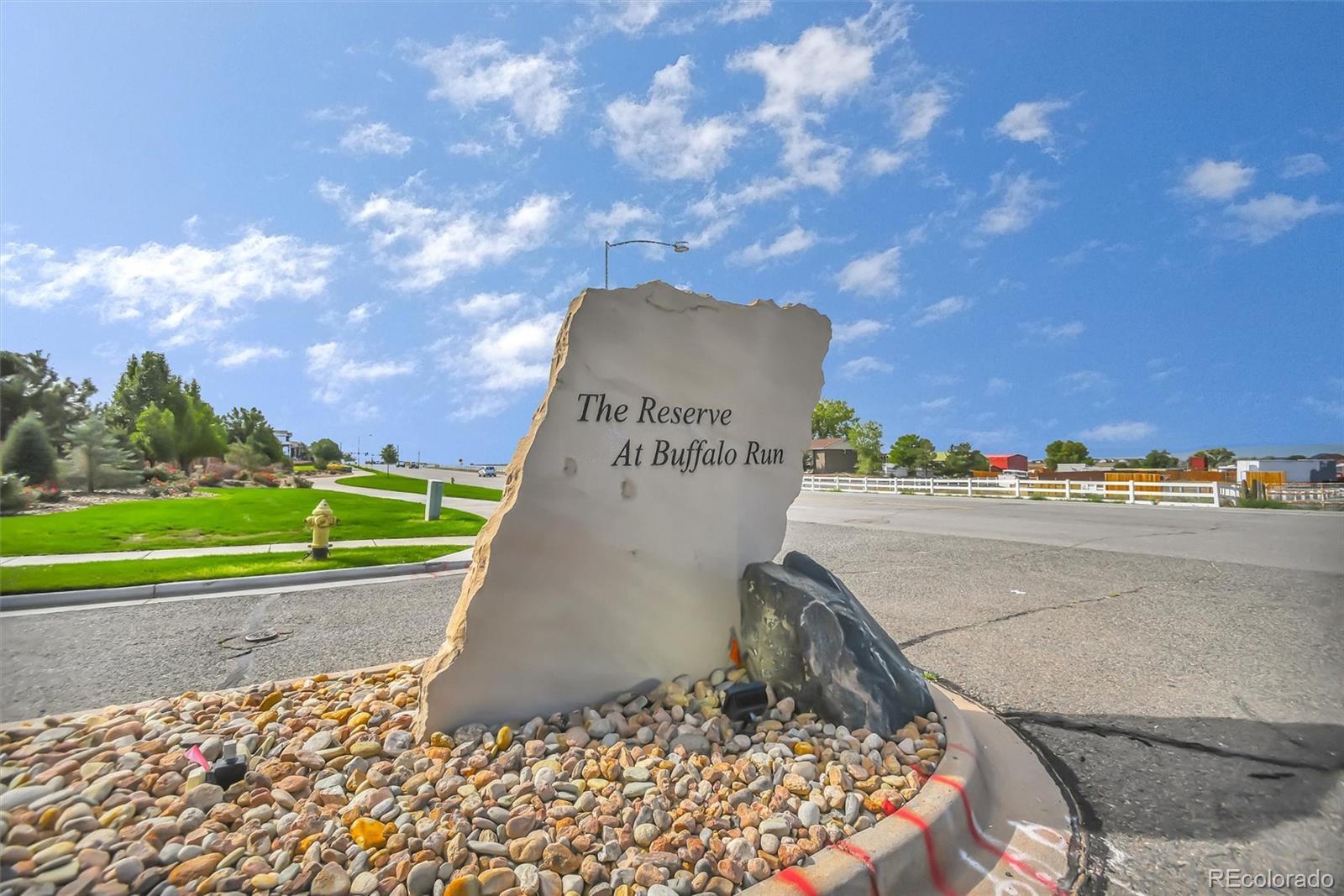 Welcome Home! You won't want to miss this wonderful 5 bedroom home in The Villages at Buffalo Run! Low maintenance living. Enjoy a large kitchen island, open to the living room with a warm fireplace, spacious built-ins and hardwood floors. Designated "Tech Space" off the kitchen, could easily be transformed into a bar area. There are plantation shutters throughout the main level. The primary bedroom with a 5 piece bath and large walk-in closet is on the main level, as well as two additional bedrooms, a full bathroom with double sinks, laundry room. Third bedroom on the main level could also be used as an office, Glass double doors can be reinstalled. The finished basement has a great “Mother-in-law”/extended family area with a living space and kitchenette with a full size refrigerator and microwave. Additionally there are two bedrooms and a full bathroom. The backyard has a gardening shed and planter boxes for someone with a green thumb. The roof is concrete tile. New Double Ovens and Tankless Water Heater. Walking distance to the park. Near the golf course, Bison Ridge Recreation Center, and DIA. Seller is motivated.