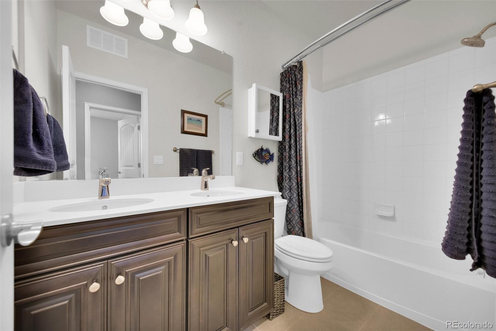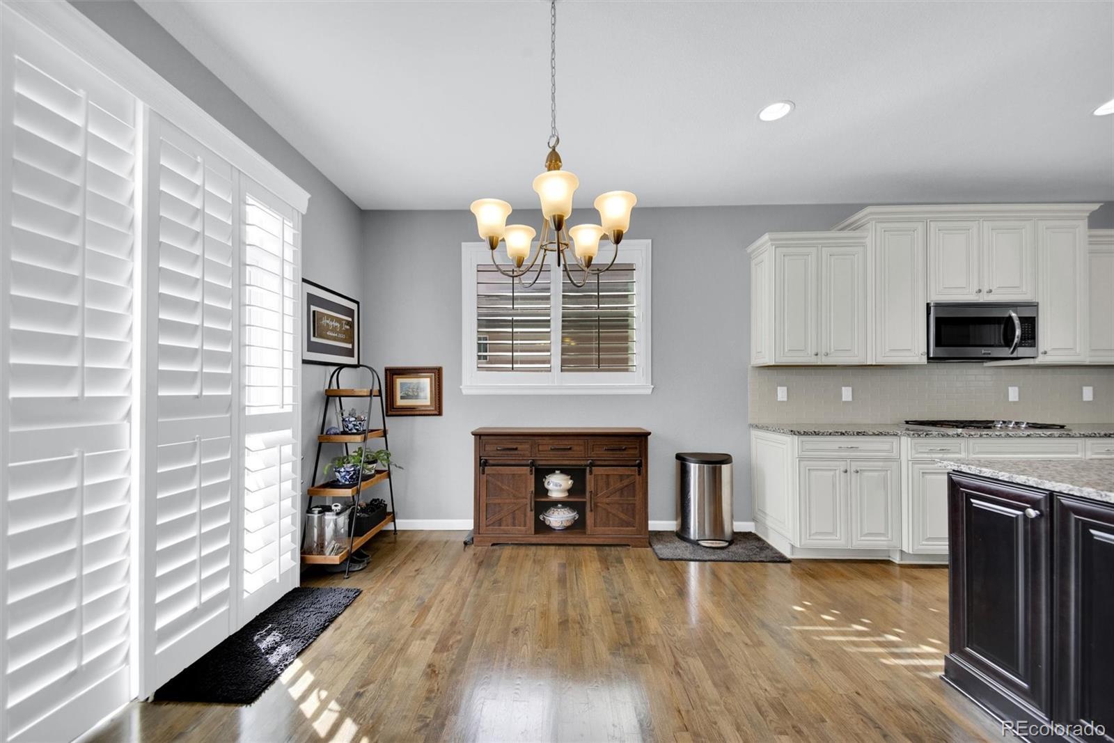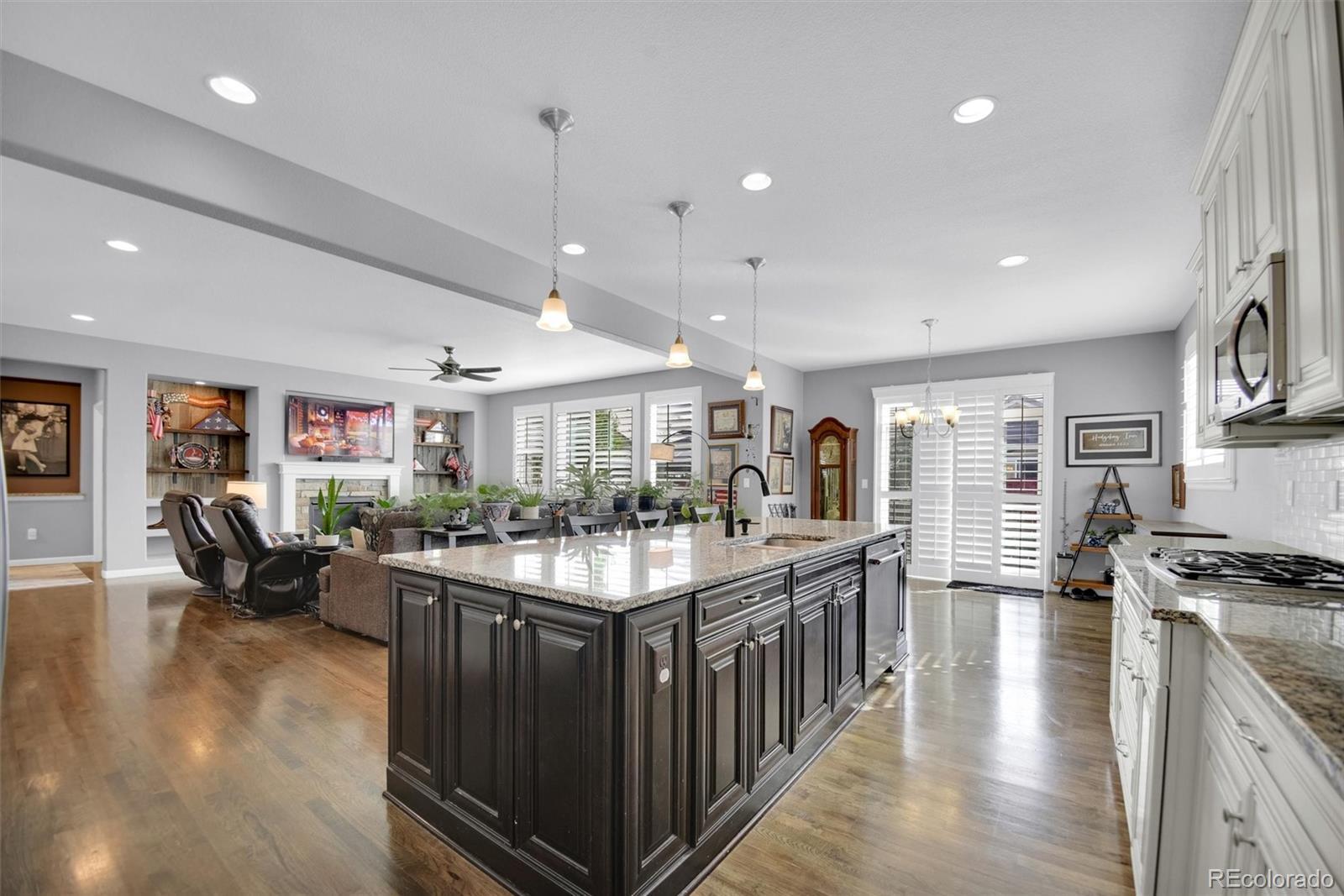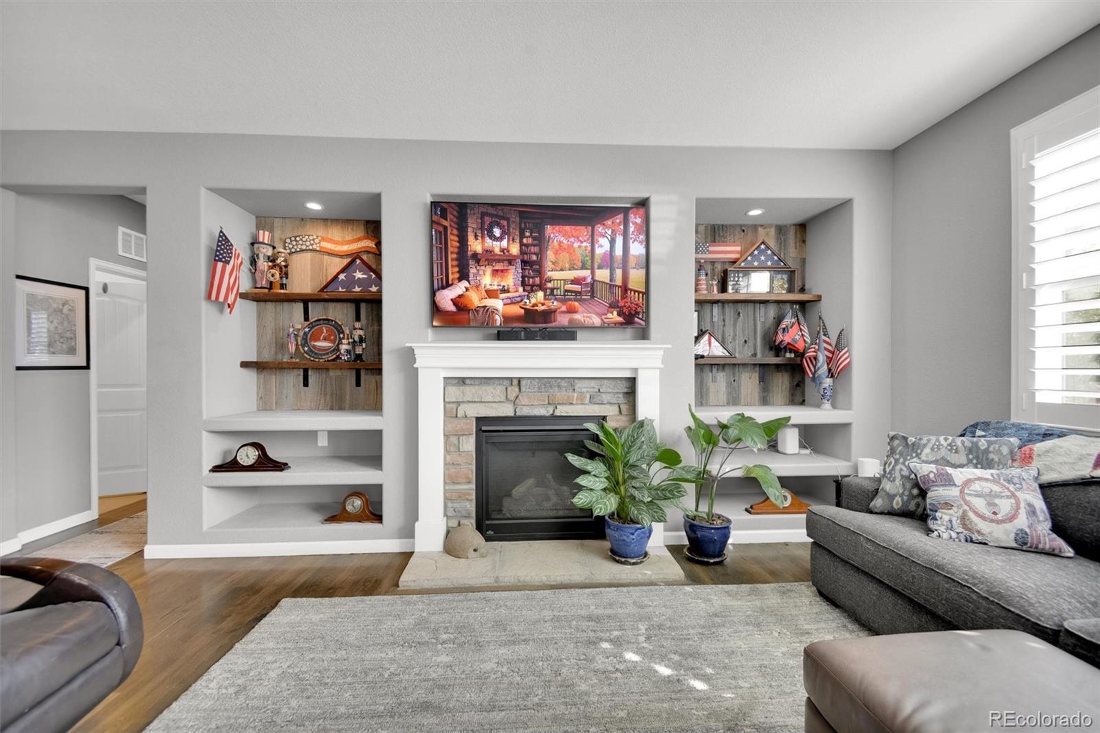 Welcome Home! You won't want to miss this wonderful 5 bedroom home in The Villages at Buffalo Run! Low maintenance living. Enjoy a large kitchen island, open to the living room with a warm fireplace, spacious built-ins and hardwood floors. Designated "Tech Space" off the kitchen, could easily be transformed into a bar area. There are plantation shutters throughout the main level. The primary bedroom with a 5 piece bath and large walk-in closet is on the main level, as well as two additional bedrooms, a full bathroom with double sinks, laundry room. Third bedroom on the main level could also be used as an office, Glass double doors can be reinstalled. The finished basement has a great “Mother-in-law”/extended family area with a living space and kitchenette with a full size refrigerator and microwave. Additionally there are two bedrooms and a full bathroom. The backyard has a gardening shed and planter boxes for someone with a green thumb. The roof is concrete tile. New Double Ovens and Tankless Water Heater. Walking distance to the park. Near the golf course, Bison Ridge Recreation Center, and DIA. Seller is motivated.