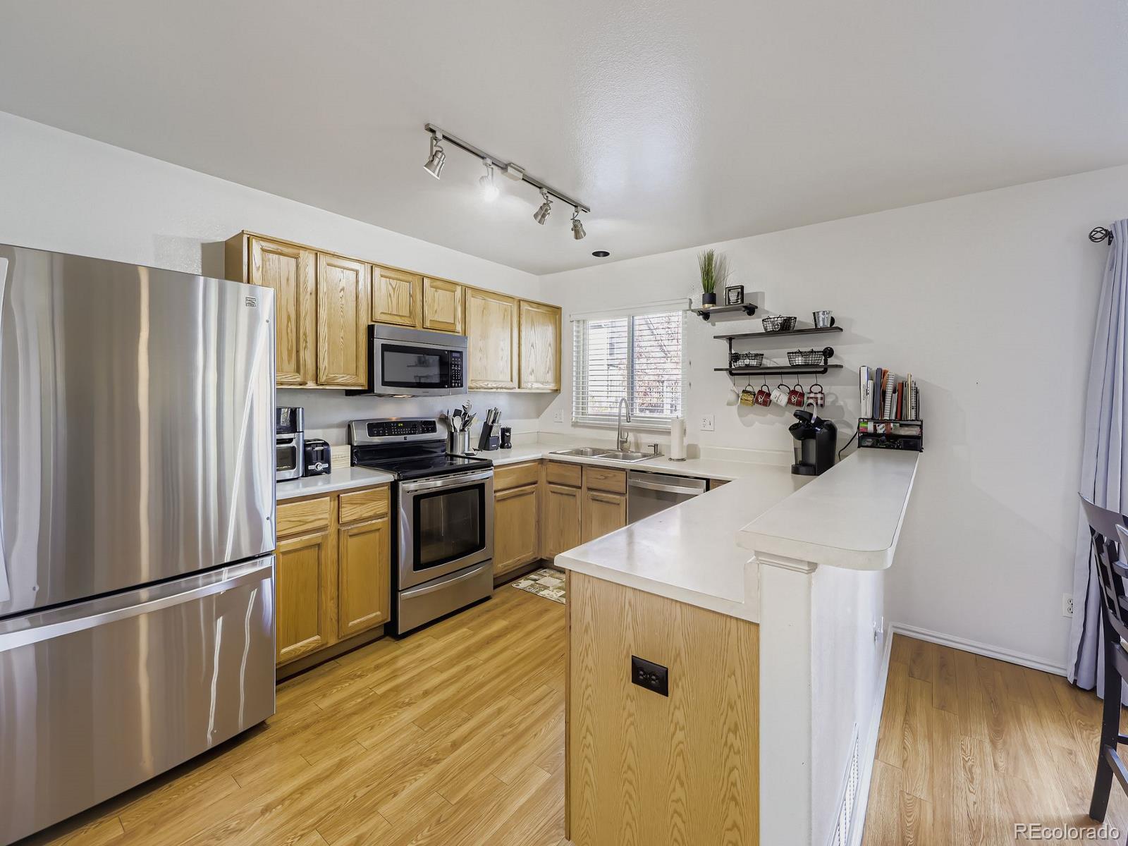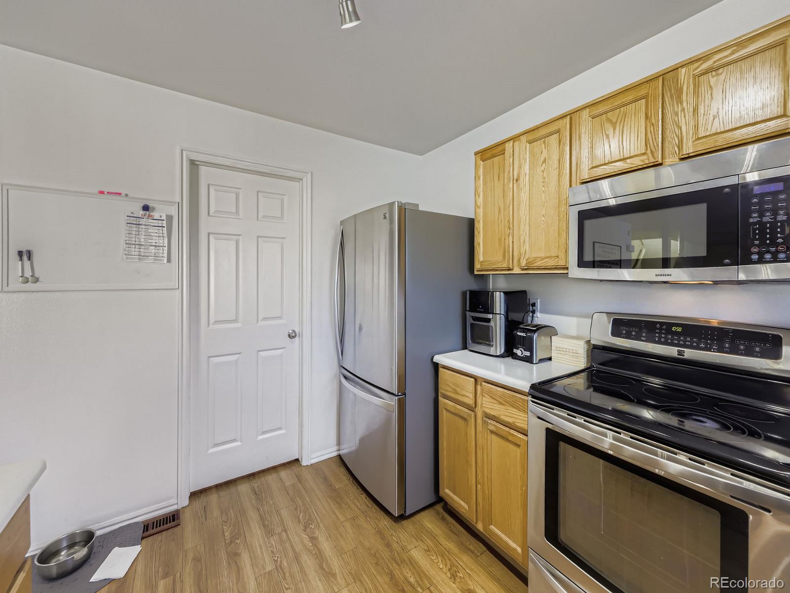 Great starter home in a great location, surrounded by shopping, restaurants, parks, light rail, bus transit, easy access to main highways, this home has been very well cared for by the previous original owner as well as the current owner, step out of your car and view this home with a newer roof 2024 (helps with home owners insurance), new outside paint 2024, all downspouts correctly positioned around the home, newer solar, newer windows and mature trees, step inside for a cozy living room connected to the open dining and kitchen with all stainless steel appliances great for family gatherings, half bath on the main level, step out the back door onto a small deck that leads into the spacious fenced back yard for entertainment, fun or just relaxing with mature trees for shade, a nice storage shed for those extra items, head upstairs to the 3 bedrooms, all have ceiling fans & Hunter Douglas blinds, main bedroom has a full bath and hall bath is a full bath all with granite countertops, head downstairs to the basement that has been finished with a nice sized family area, a laundry room, washer & dryer included that has plenty of room for a possible 4th non-conforming bedroom, exercise, craft or extra storage, wood engineered floors, sump pump, hot water heater is 11/2021 and furnace is approximately 10 years old includes a humidifier, central air, sprinklers front & back and a newer solar system for energy efficiency, no HOA to worry about, you will not want to miss this lovely home as it may go fast, now is your opportunity to see it, schedule an appointment today.