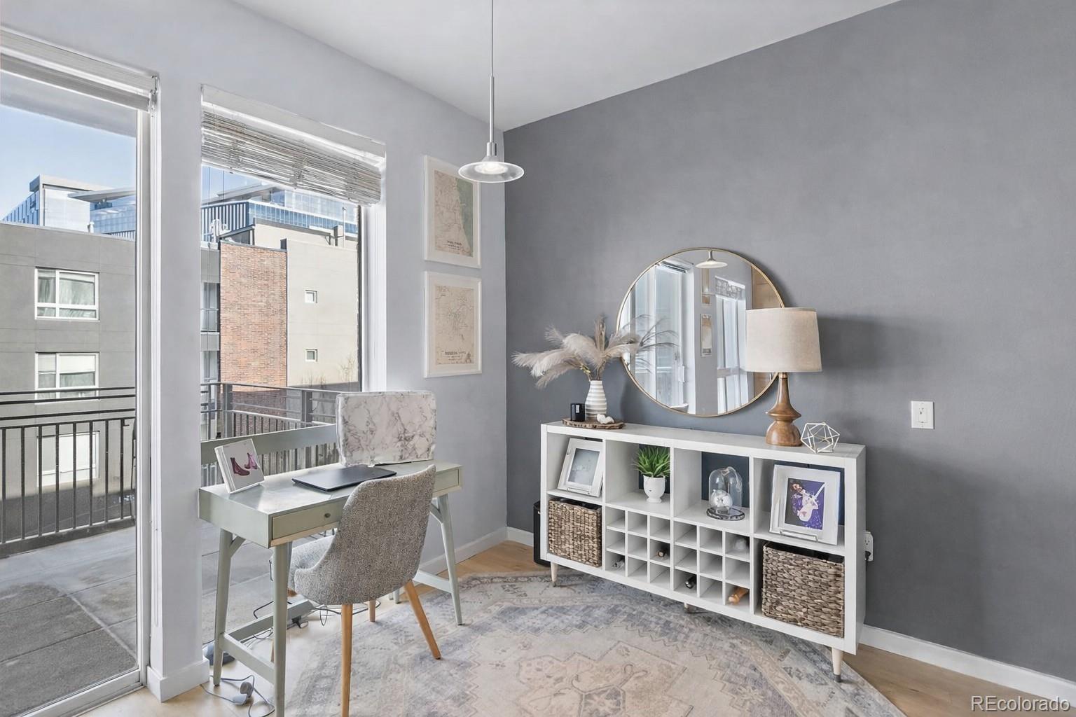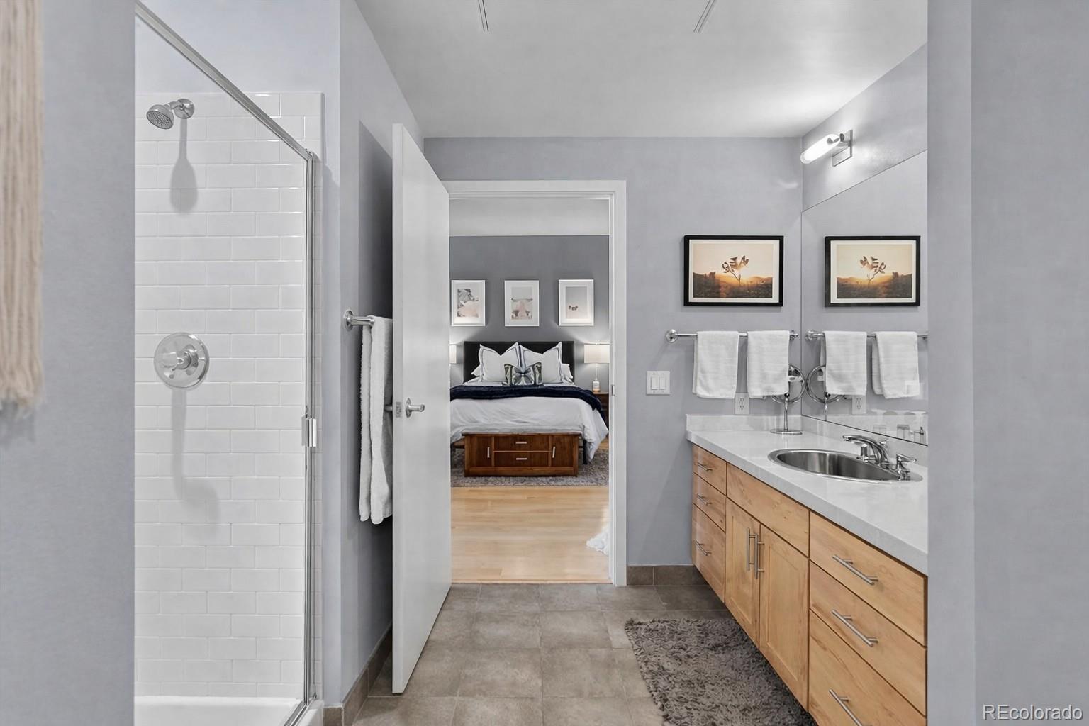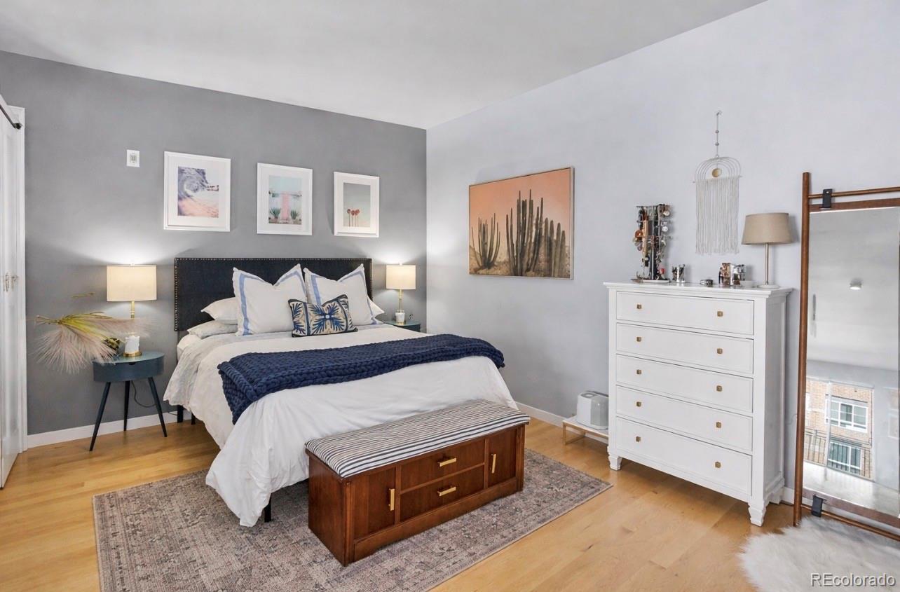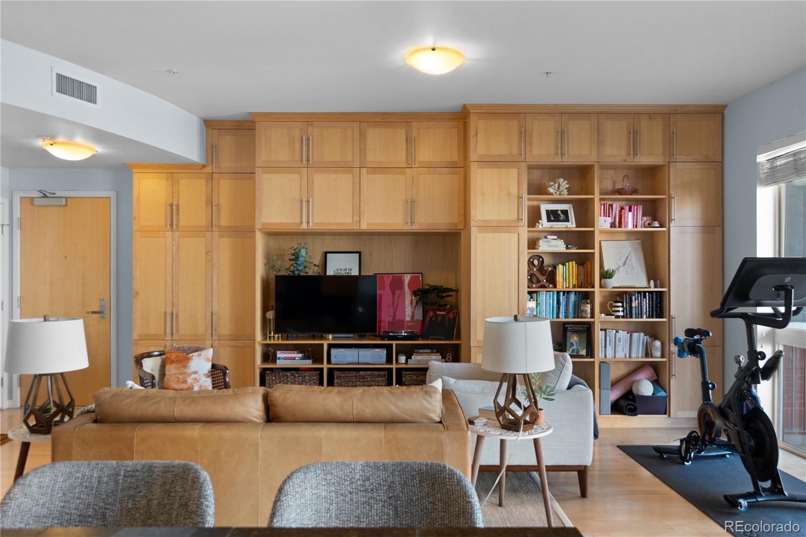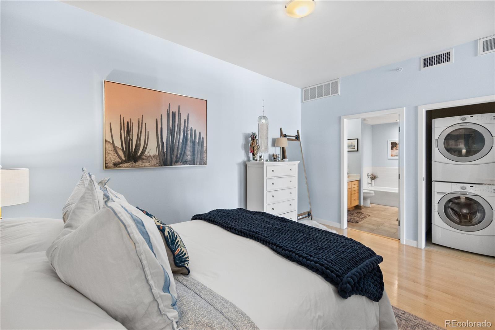 This stunning condo offers a perfect blend of comfort and style in a highly sought-after location. Beautiful one bed, one bath unit lives very large with an inviting open-concept layout. Upon entering, you'll be greeted by a large walls of windows that boasts with abundant natural light! Custom made, floor to ceiling built in cabinets offering a tremendous amount of storage. Gorgeous eat in kitchen offers gas stove and kitchen island. The primary bedroom provides a peaceful, private retreat that separates itself from the great room. Large full bathroom with separate shower and soaking tub! An in-unit laundry room with a stackable washer and dryer. Unit includes private oversized balcony. Located on the west edge of downtown Denver with easy access to i-25. 1 parking spot in private covered garage, 20 sq ft storage locker down the hall from unit and garage bike storage. Blocks away from Union Station, Riverfront Park, and Ball Arena.