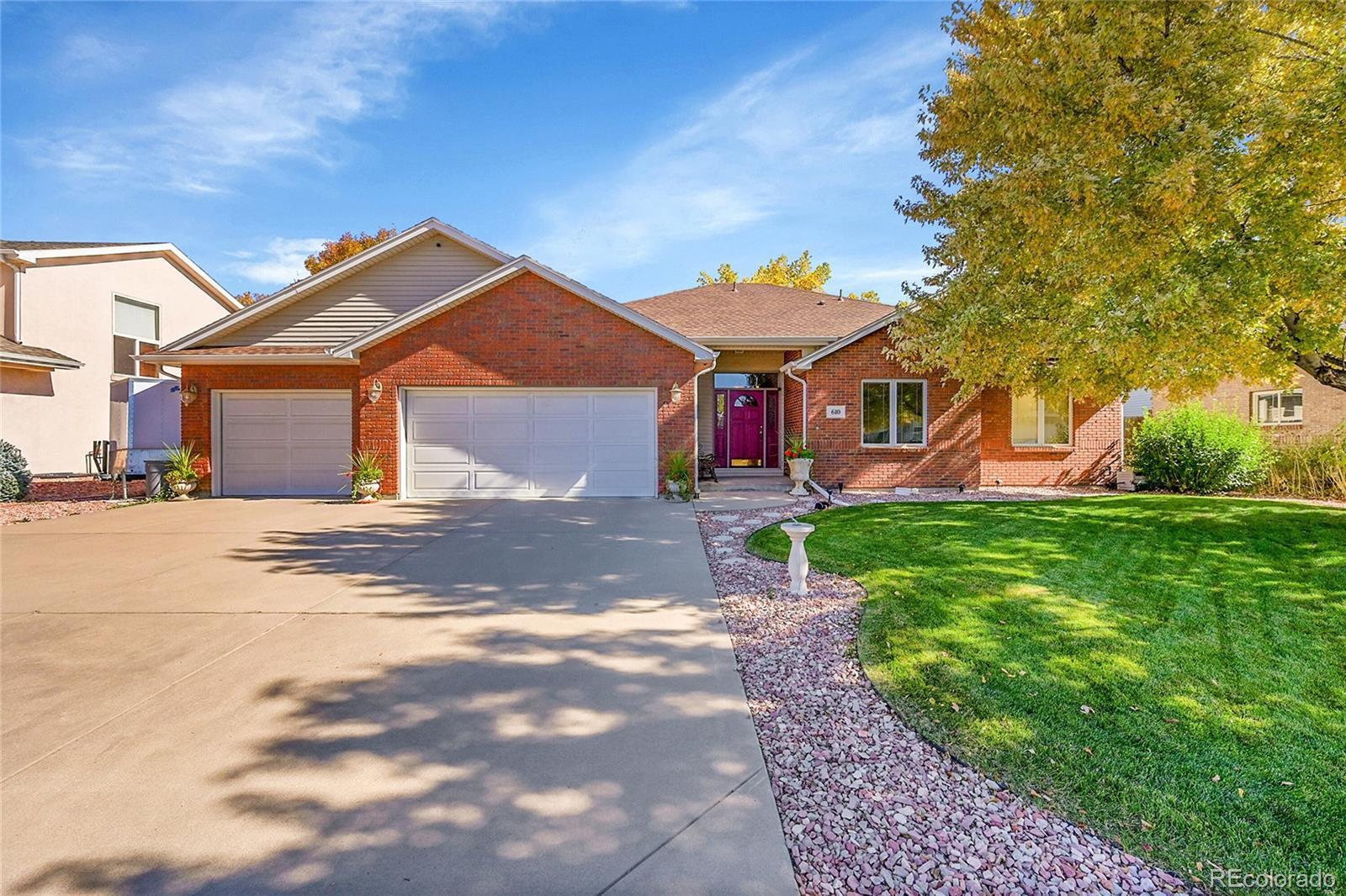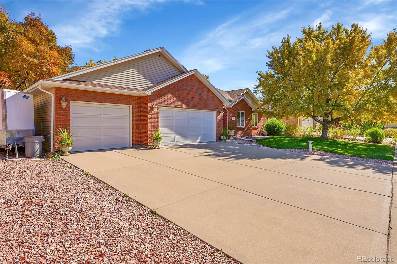 Beautiful Semi-Custom Ranch in coveted Clover Meadows – No HOA or Metro Fees! Meticulously maintained and move-in ready, this home offers main-floor living with a partially finished basement and a 3-car garage. Located just steps from the entrance to a beautiful walking trail and four blocks to the Brighton Rec Center and Park, this property combines comfort, convenience, and quality. Enjoy a low-maintenance exterior featuring brick and durable metal siding. Inside, the kitchen boasts quartz countertops, stainless steel appliances and a pantry. The spacious dining room accommodates a large table and hutch. The dining room opens onto a patio overlooking a beautifully manicured lawn and also includes an 8x15 shed. The primary bedroom is large, has a five-piece bath and walk-in closet. One of the bedrooms is being used as an office but includes a closet so can also be a bedroom. The main-floor laundry has additional storage. The 3 car garage is partitioned off with room for 2 cars on one side and the other is being used as a shop but can also be used for another car. Nicely finished large Family room in the basement and an additional bedroom and bathroom make a great retreat. There is also more storage with shelving and a workout room or office in the basement. Recent updates include a newer high-impact roof and a water heater replaced within the past year. A 14-month home warranty is included for peace of mind. Walking distance to schools and the Boys and Girls Club. Come and see it today!