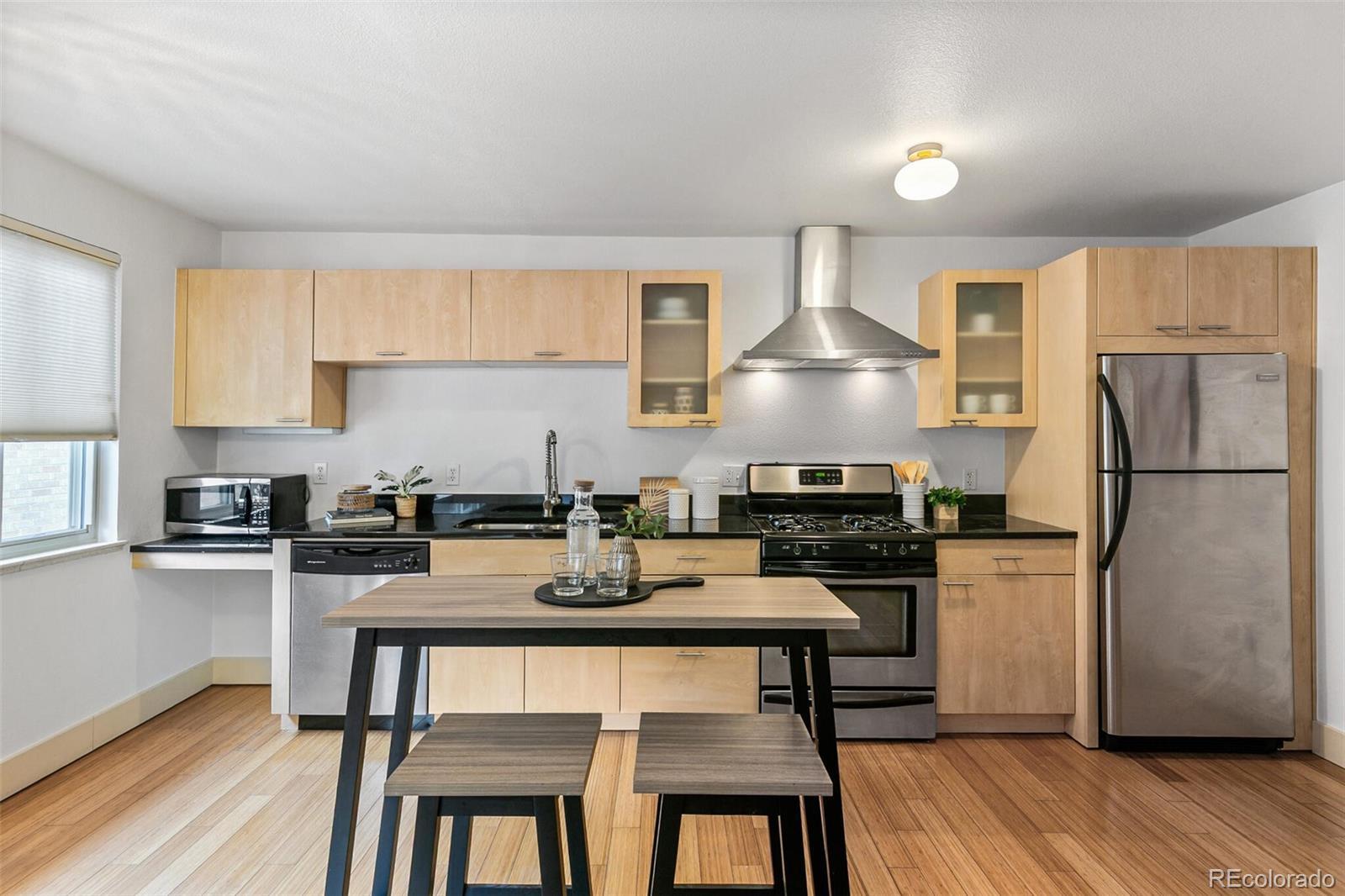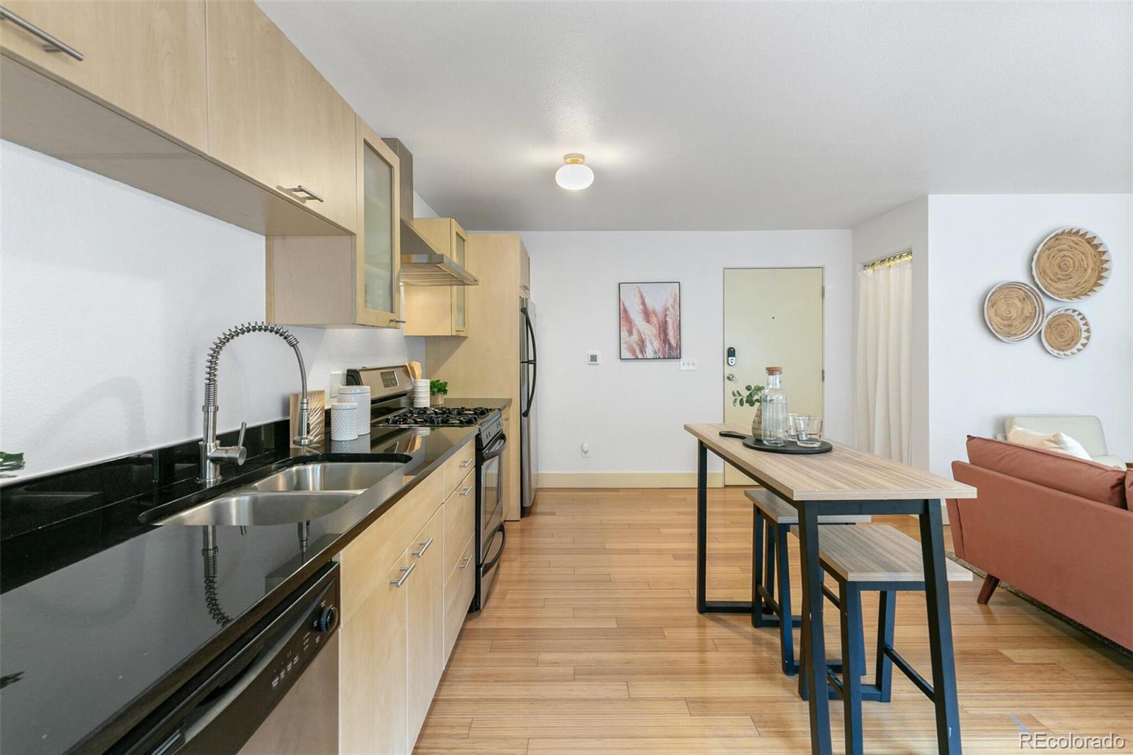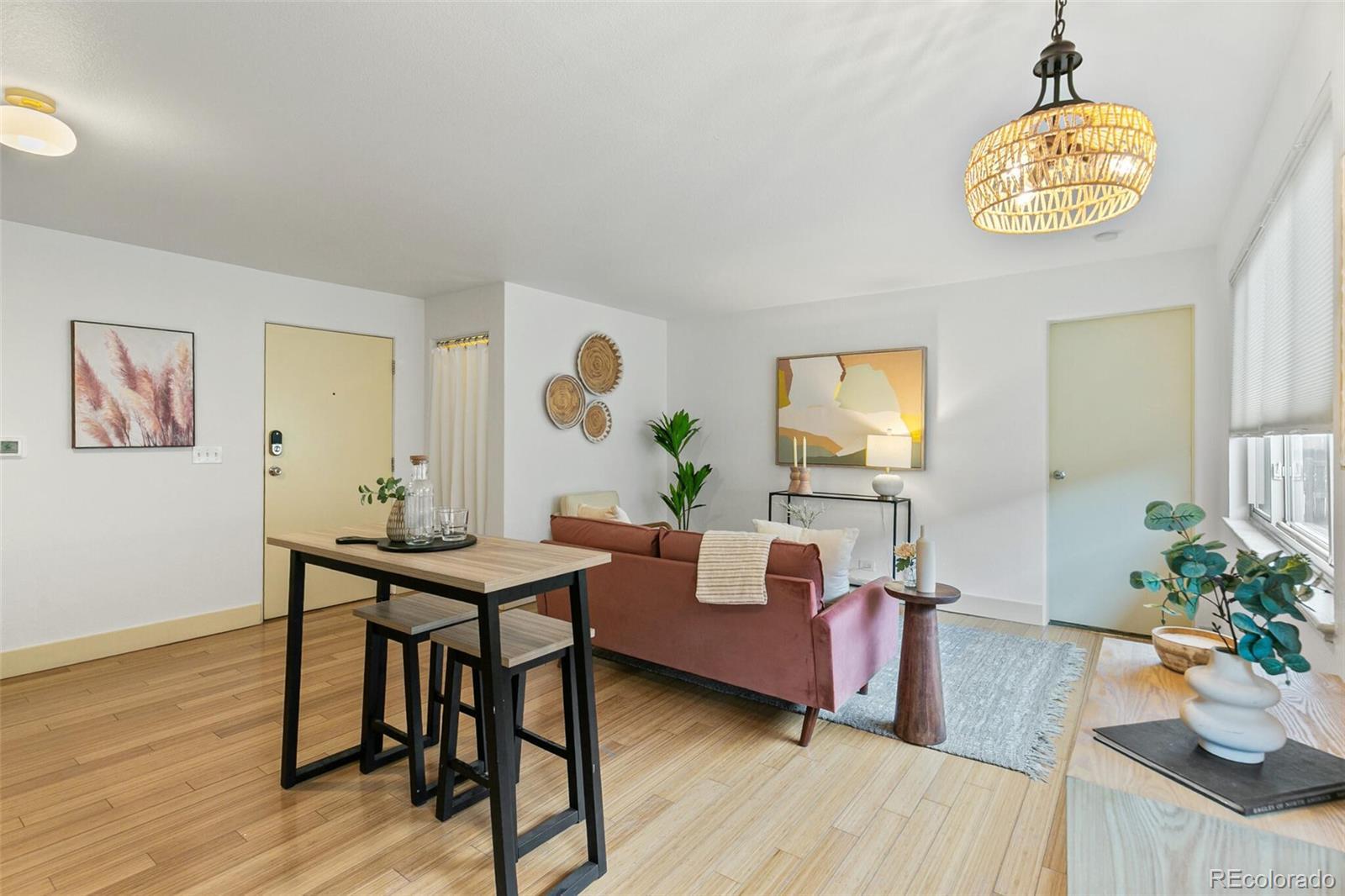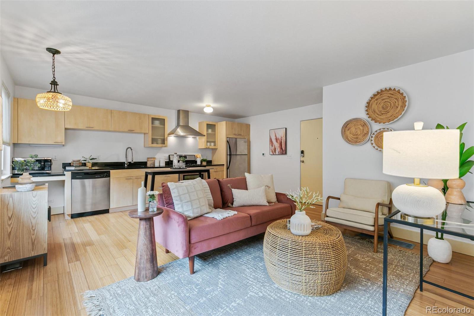 Step into timeless style and modern comfort in this beautifully remodeled one-bedroom, one-bath Mid-Century Modern flat. This thoughtfully updated home blends clean architectural lines with contemporary finishes for effortless living. The open, airy layout showcases large windows that flood the space with natural light, highlighting the sleek wood floors. The fully updated kitchen features modern cabinetry, stylish countertops, and quality appliances—perfect for both everyday living and entertaining. The spacious bedroom offers a peaceful retreat with ample closet space, while the remodeled bathroom boasts tasteful, modern fixtures and finishes. Enjoy the convenience of an in-unit washer and dryer, adding ease and efficiency to your daily routine. Situated in a well-maintained, boutique building with only six units, this residence offers a rare sense of privacy and community. A deeded parking space provides hassle-free parking—an exceptional perk in this prime location. Ideally positioned just a stone’s throw from Highlands Square, the vibrant Tennyson Street Cultural District shops and restaurants, and the scenic trail and waterfront at Sloan's Lake Park, you’ll enjoy some of the best dining, shopping, and outdoor recreation Denver has to offer—all just moments from your front door. This is refined city living with character, charm, and an unbeatable location.
