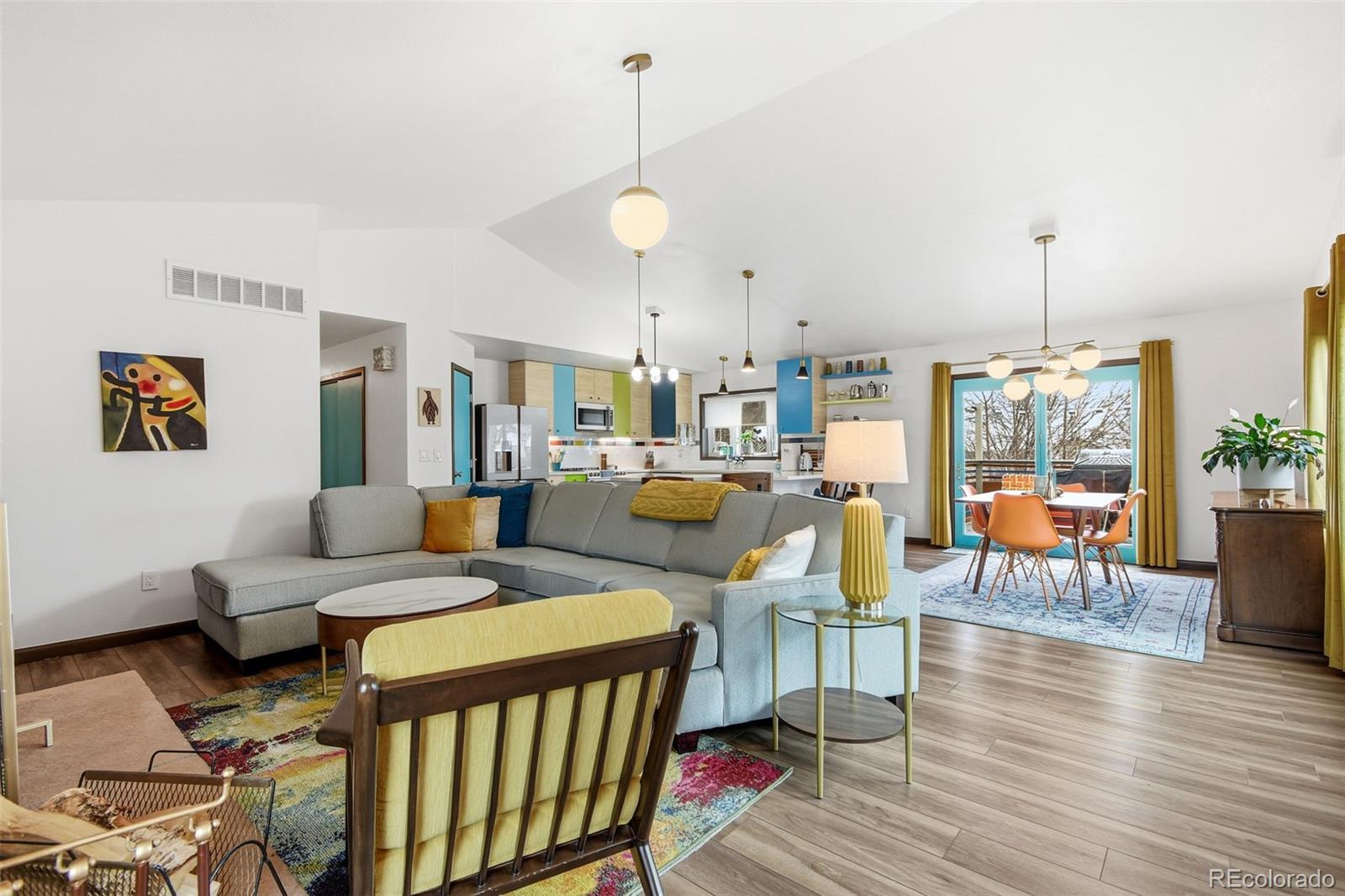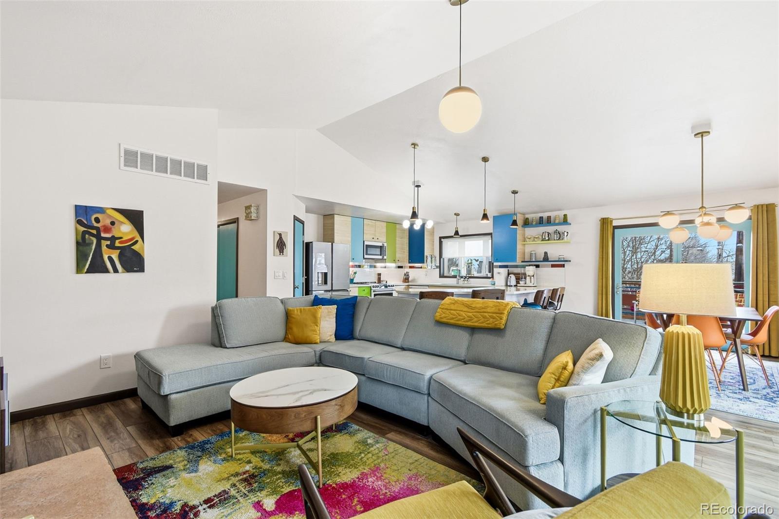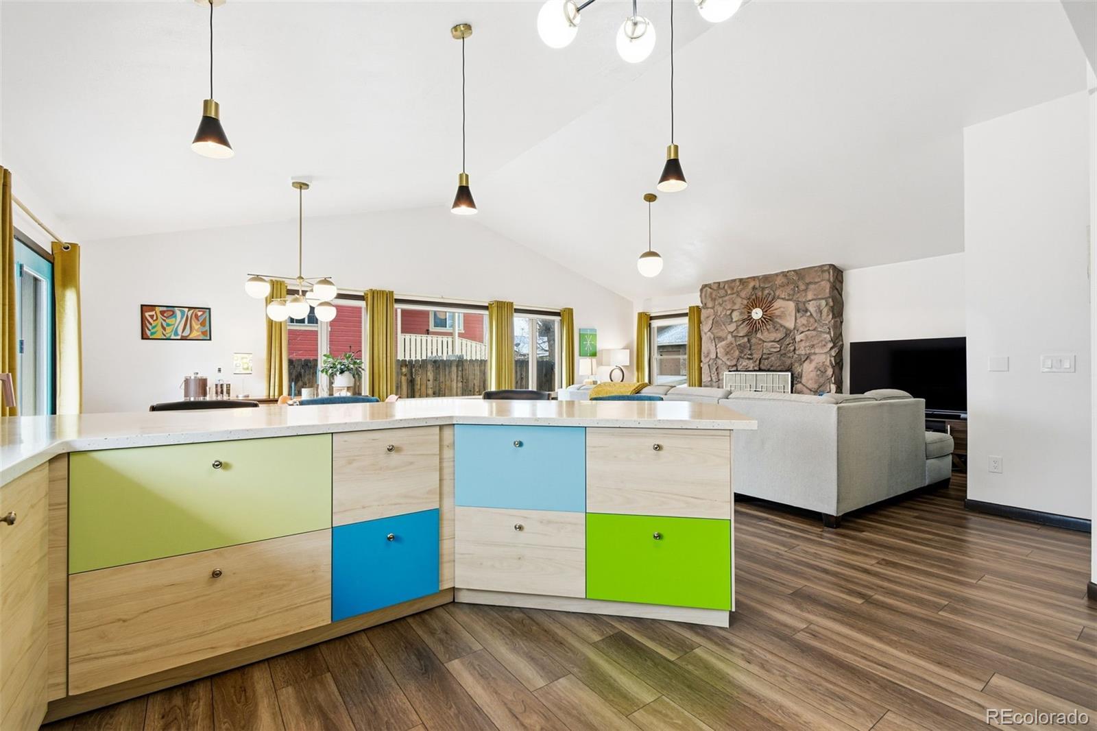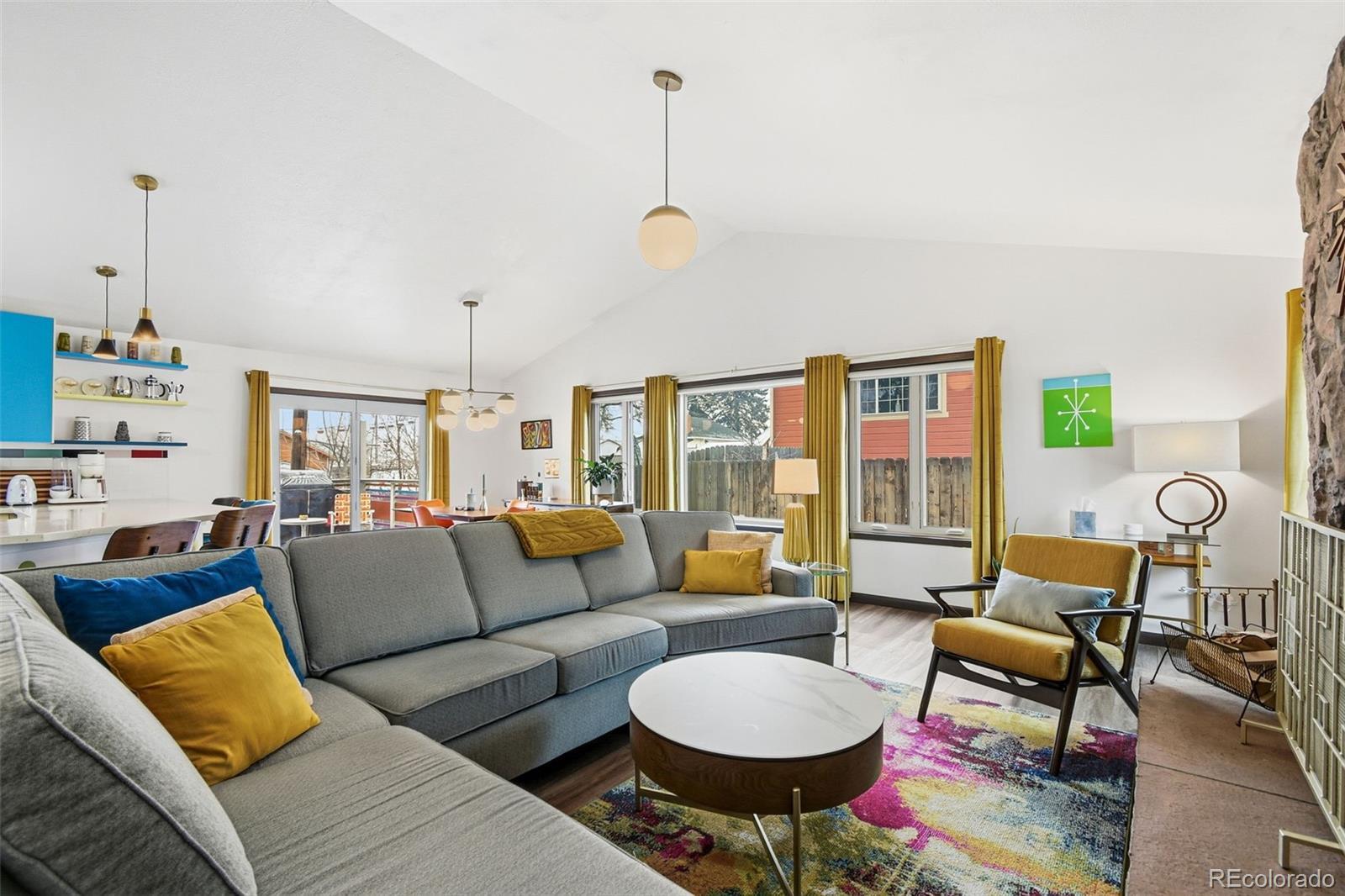 Welcome to 6500 Ralston Rd #A, a masterful mid-century renovation that beautifully pairs modern luxury with creative period details, all just minutes from the vibrant heart of Olde Town Arvada. This sophisticated residence offers an unparalleled living experience across two beautifully finished levels. The main level is designed for light and flow. Walls of windows and dramatic vaulted ceilings draw you into the main living area, which is anchored by the authentic charm of an original stone fireplace—a perfect spot for cozy evenings. The open chef's kitchen is a true centerpiece, inviting seamless entertaining with its high-end style and expansive breakfast bar where guests can gather. The main floor is completed by a private and luxurious primary suite with a newly updated bath, alongside a second well-appointed bedroom and an updated hall bath. Continue to the bright, fully finished garden-level basement. This versatile space expands your living options, featuring a large recreation area, a dedicated media room, two conforming bedrooms, a full bath, and a generous laundry/craft room. It provides the ideal setup for a home gym, guest quarters, or simply a private retreat. Outside, the property is a personal oasis. The private backyard is beautifully landscaped to offer space to relax, entertain al fresco, garden, or play. Furthermore, the finished 2-car garage is workshop-ready, providing valuable utility and storage. With an amazing location close to all the dining, shopping, and entertainment of Olde Town Arvada, this home delivers a complete package of style, space, and convenience.