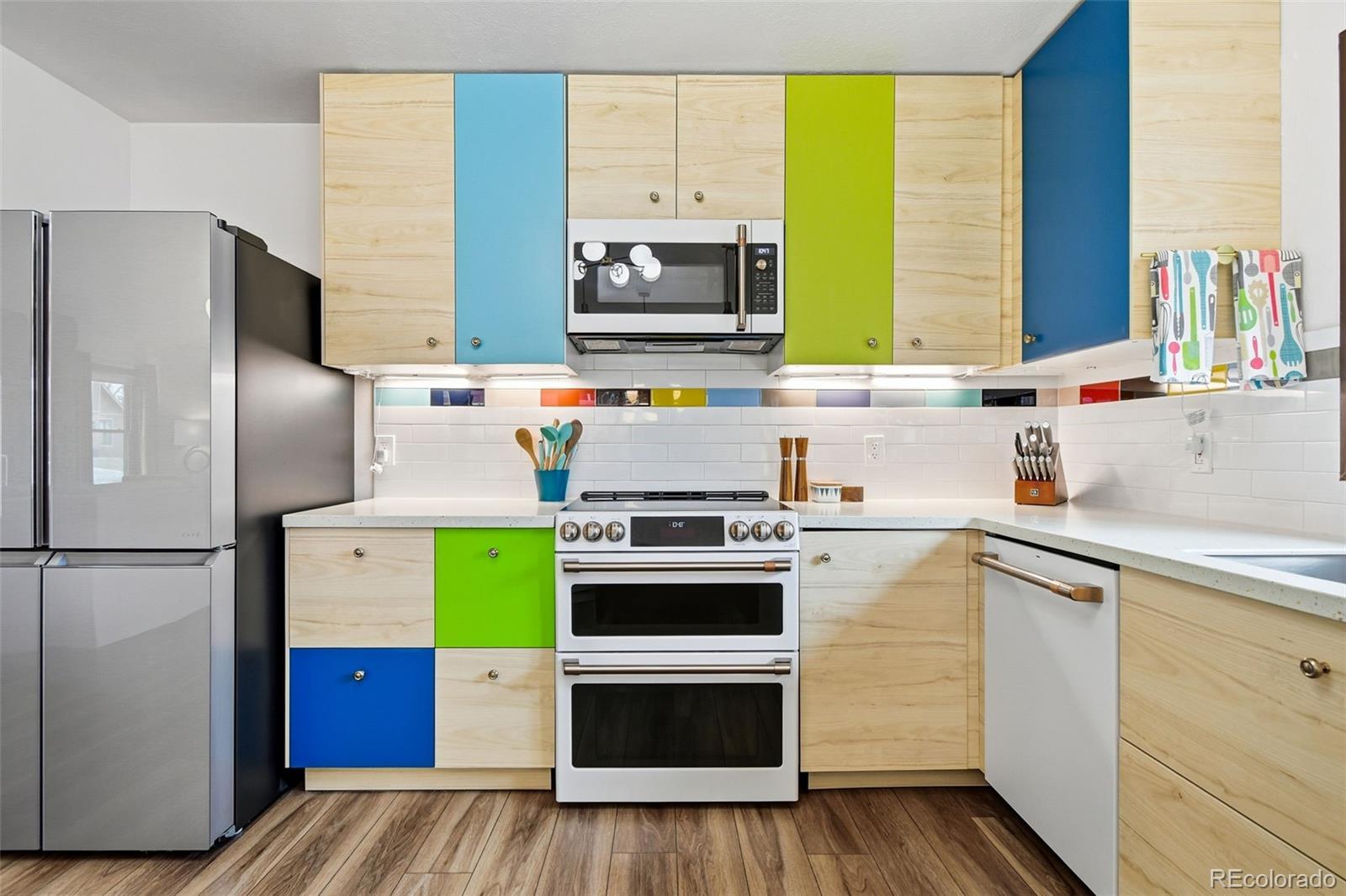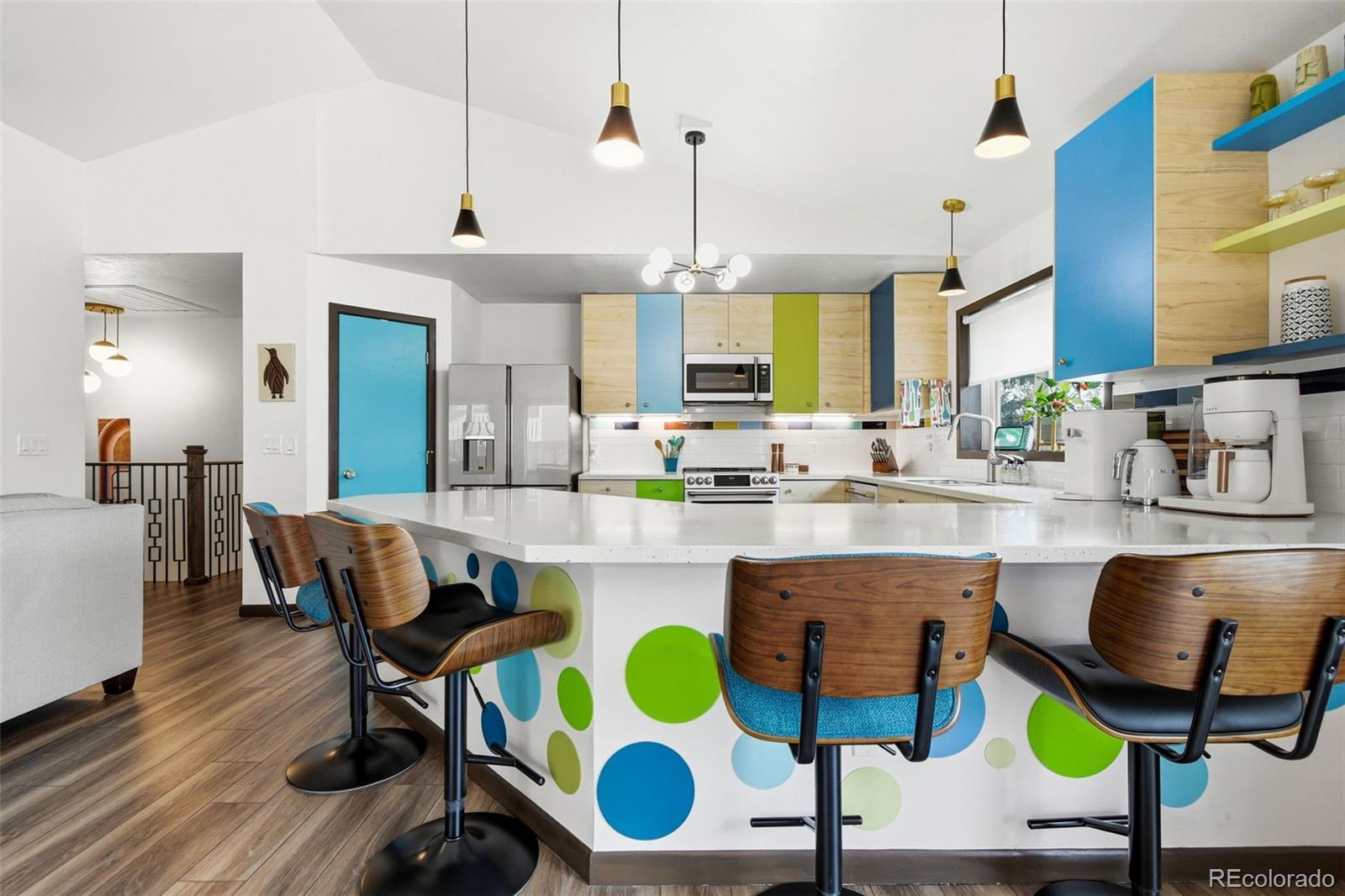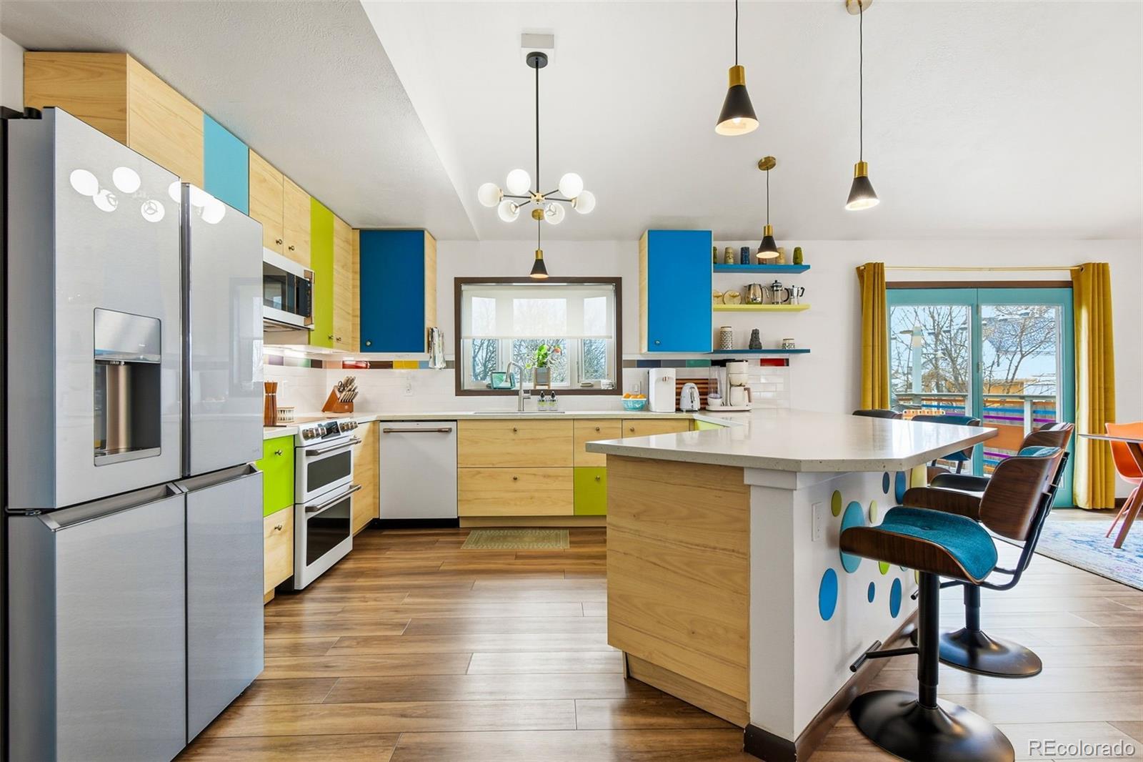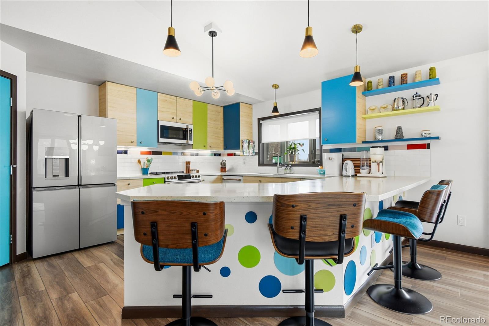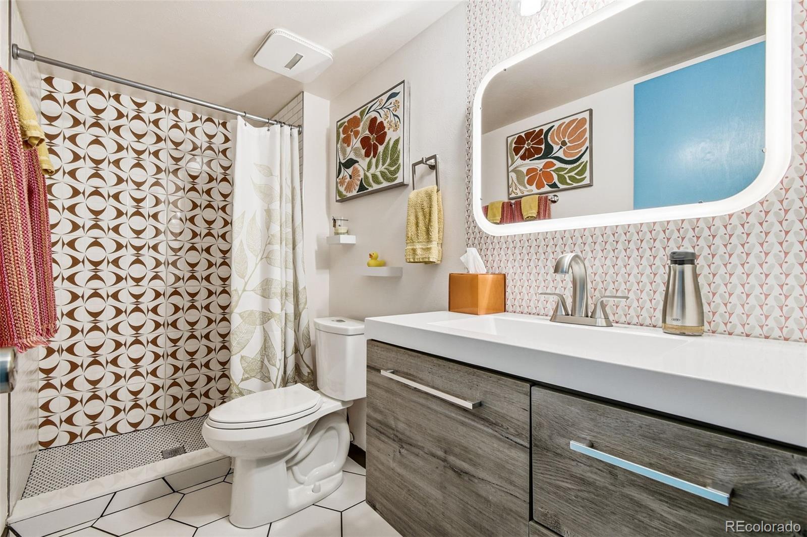 Welcome to 6500 Ralston Rd #A, a masterful mid-century renovation that beautifully pairs modern luxury with creative period details, all just minutes from the vibrant heart of Olde Town Arvada. This sophisticated residence offers an unparalleled living experience across two beautifully finished levels. The main level is designed for light and flow. Walls of windows and dramatic vaulted ceilings draw you into the main living area, which is anchored by the authentic charm of an original stone fireplace—a perfect spot for cozy evenings. The open chef's kitchen is a true centerpiece, inviting seamless entertaining with its high-end style and expansive breakfast bar where guests can gather. The main floor is completed by a private and luxurious primary suite with a newly updated bath, alongside a second well-appointed bedroom and an updated hall bath. Continue to the bright, fully finished garden-level basement. This versatile space expands your living options, featuring a large recreation area, a dedicated media room, two conforming bedrooms, a full bath, and a generous laundry/craft room. It provides the ideal setup for a home gym, guest quarters, or simply a private retreat. Outside, the property is a personal oasis. The private backyard is beautifully landscaped to offer space to relax, entertain al fresco, garden, or play. Furthermore, the finished 2-car garage is workshop-ready, providing valuable utility and storage. With an amazing location close to all the dining, shopping, and entertainment of Olde Town Arvada, this home delivers a complete package of style, space, and convenience.