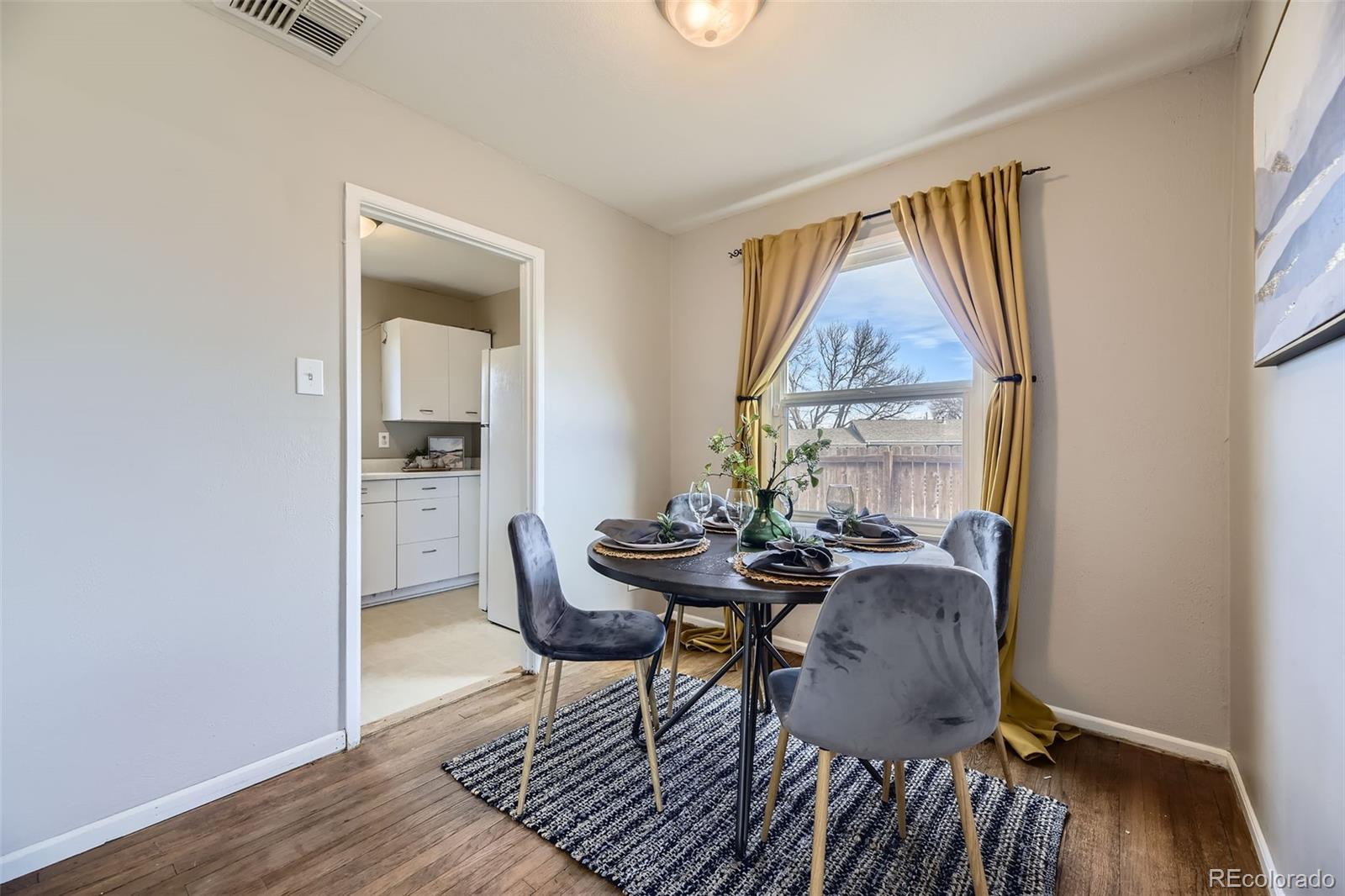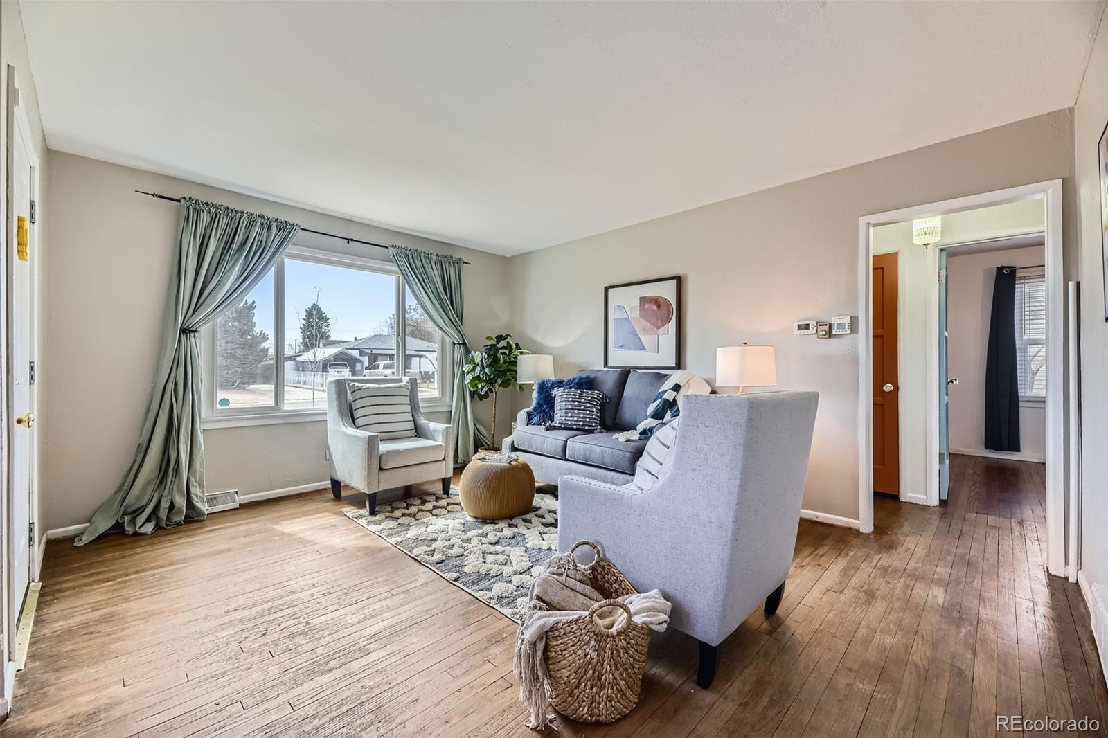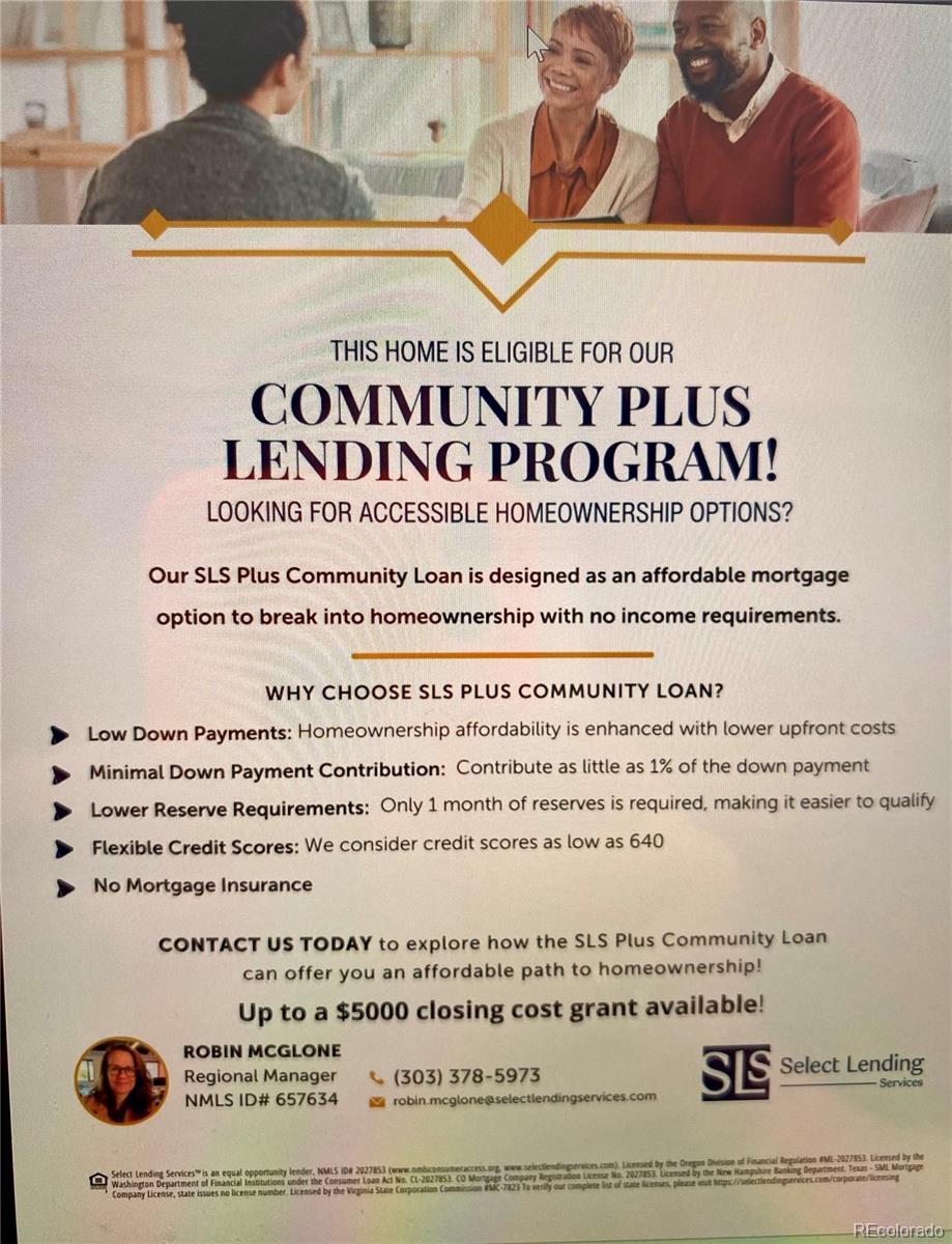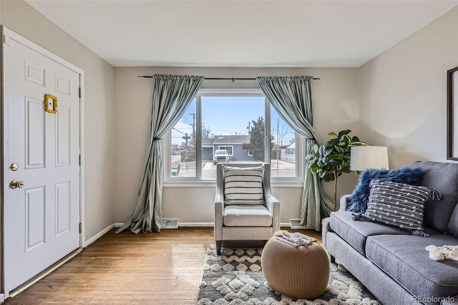 ****Eligible for special financing - 1% down, NO PRIVATE MORTGAGE INSURANCE, flexible credit rate and up to $5000 GRANT available. Contact preferred lender Robin McGlone at Select Lending (303-378-5973) and ask about her Community Plus Lending program.**** This is a perfect property for a first-time home buyer to get into the market with NO HOA and a large outdoor space! Great location on a LARGE corner lot, this cute two-bedroom, one-bath home is move-in ready for primary ownership or investors. With zoning allowing for an Accessory Dwelling Unit, this property offers significant upside to build an income ADU or guest suite. The smart layout makes the most of its 719 sf with seamless indoor-outdoor flow to a large backyard, covered patio and space for a fire pit or future ADU. Light and bright with large windows and hardwood flooring, it's the perfect starter home or rental near Regis. A small mudroom area by the back door contains your almost-new full-size washer and dryer. Enjoy summer evenings on the covered back patio (patio furniture and gas grill included) while your two or four-legged friends play in the large, fenced backyard with huge shade and climbing tree. The oversized one-car garage provides plenty of storage for your Colorado gear plus one car. With all new copper and pex plumbing, plus a newer roof, furnace and evaporative cooler, this home offers peace-of-mind in a location just minutes from Zuni Park, Regis University, Rocky Mountain Lake Park and vibrant hotspots like Sunnyside, LoHi, RiNo and Tennyson Street. Jump onto I-70 for convenient access to the mountains or a short trip downtown.