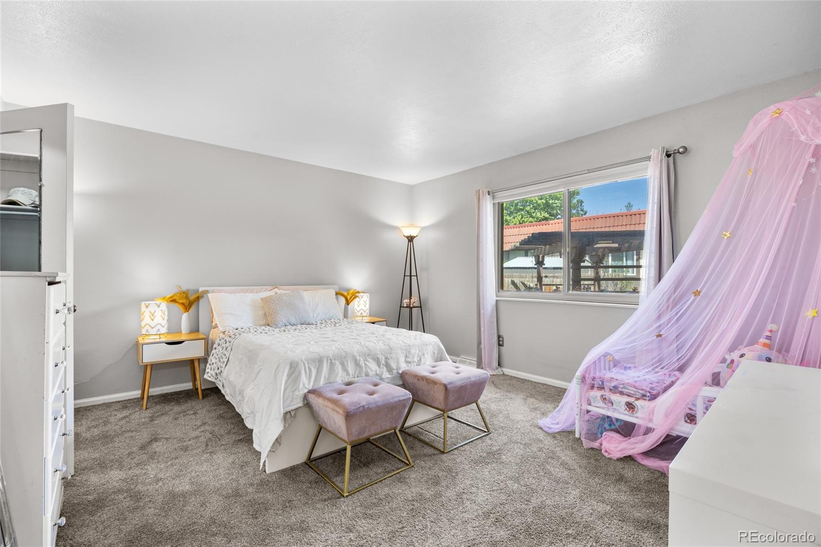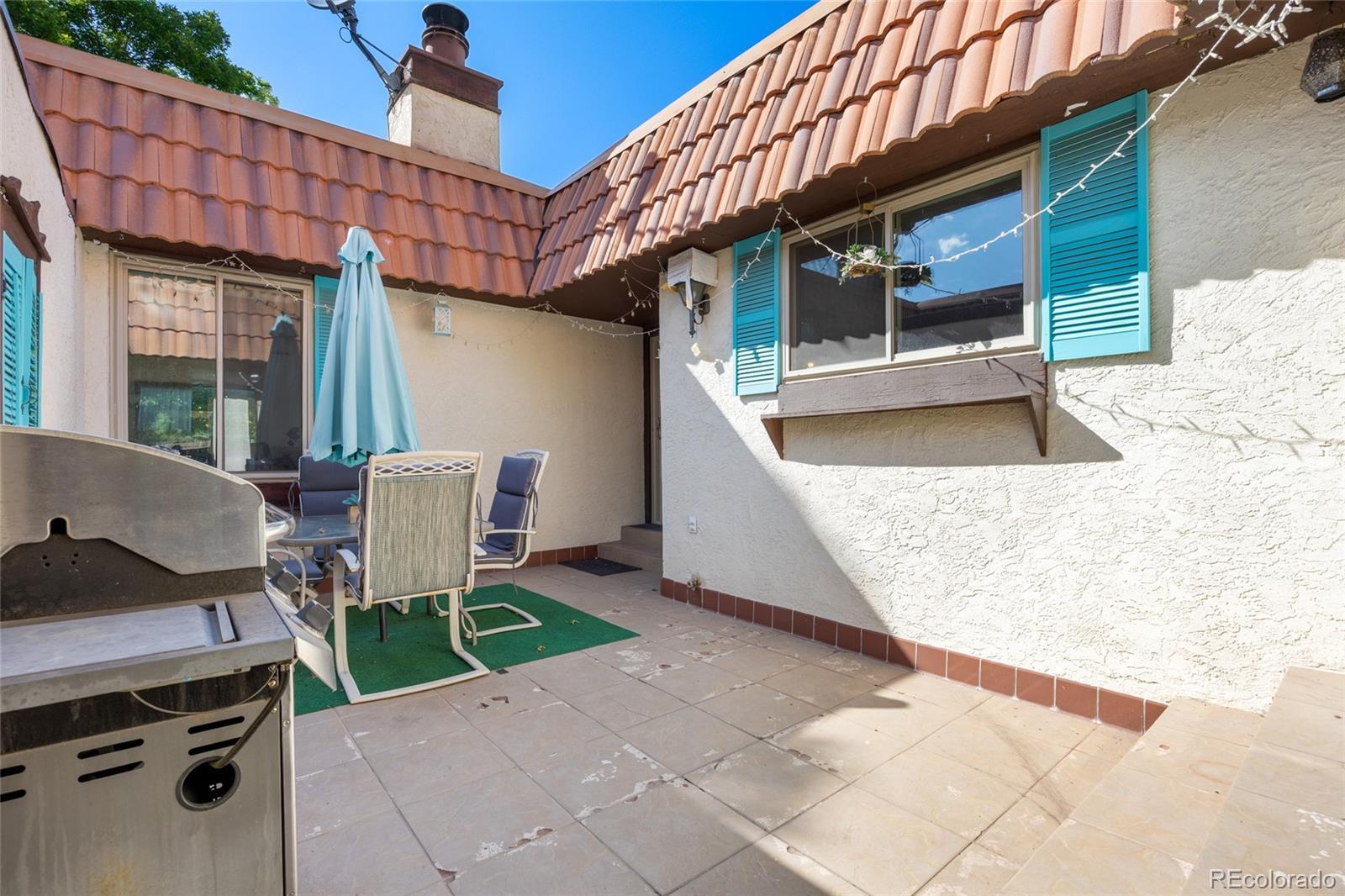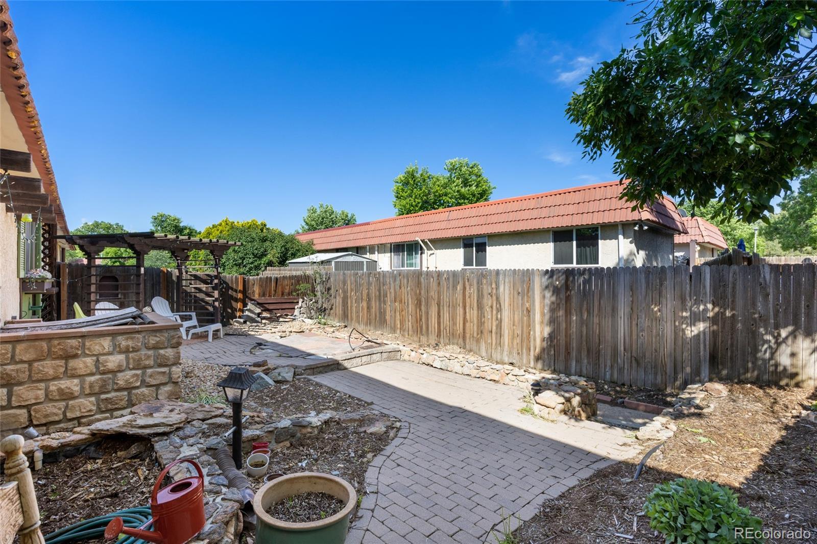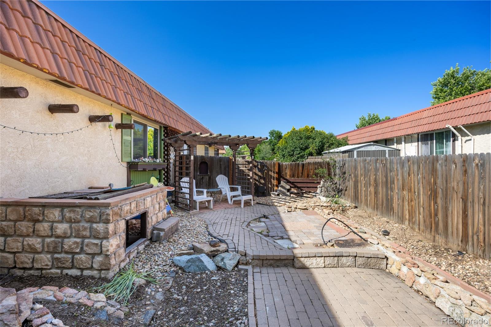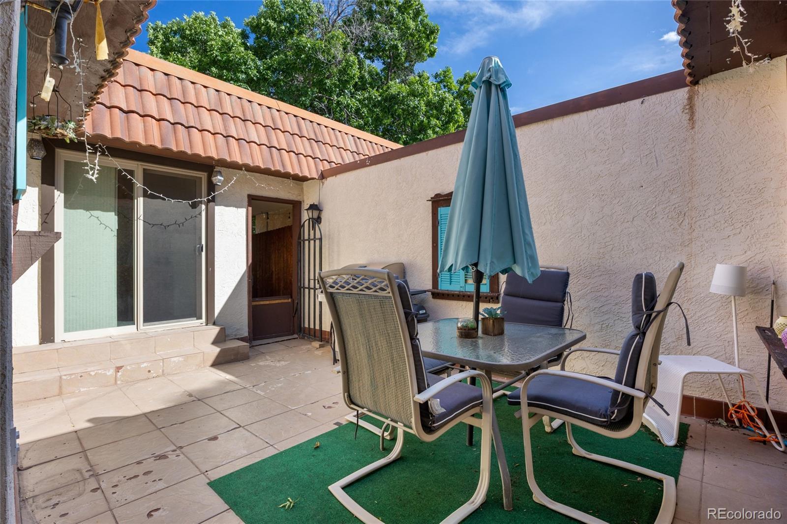 Discover the perfect blend of comfort and convenience in this beautifully updated home. Enjoy the benefits of town home living without the burden of an HOA, all within a fantastic neighborhood. Upon entering, you'll immediately notice the meticulous updates: newer paint and updated LVP Waterproof flooring create a fresh, inviting atmosphere. The heart of the home, the updated kitchen, is bathed in natural light from a skylight and boasts a large, spacious pantry. A seamless pass-through connects the kitchen to the dining room, which features a convenient wet bar. From the dining area, step directly into your private outdoor courtyard—an ideal setting for entertaining, hosting barbecues, or simply savoring Colorado nights. The courtyard flows into a charming, versatile backyard, complete with landscaping and irrigation for low-maintenance appeal This home truly lives like a single-family residence, starting with its attached two-car garage that includes a practical bump-out workspace and ample storage. On the main floor, the primary suite offers a private sanctuary with an attached bathroom featuring his-and-hers sinks, abundant natural light, and a generously sized walk-in closet. A well-appointed secondary bedroom provides serene views of your private outdoor oasis. The finished basement provides a spacious main room and a versatile area that can easily serve as a non-conforming third bedroom—perfect for guests with its adjacent three-quarter bath. Currently, it functions as a quiet office, home gym, and child's play area, with plenty of extra storage. The possibilities are endless! Located in a prime spot, you're just a short walk to Peoria Hills Park, along with numerous other parks, trails, and fields. Shopping centers, malls, and public transportation options are all conveniently close by. Don't miss the chance to make this exceptional property your next home or investment. Schedule your private showing today!