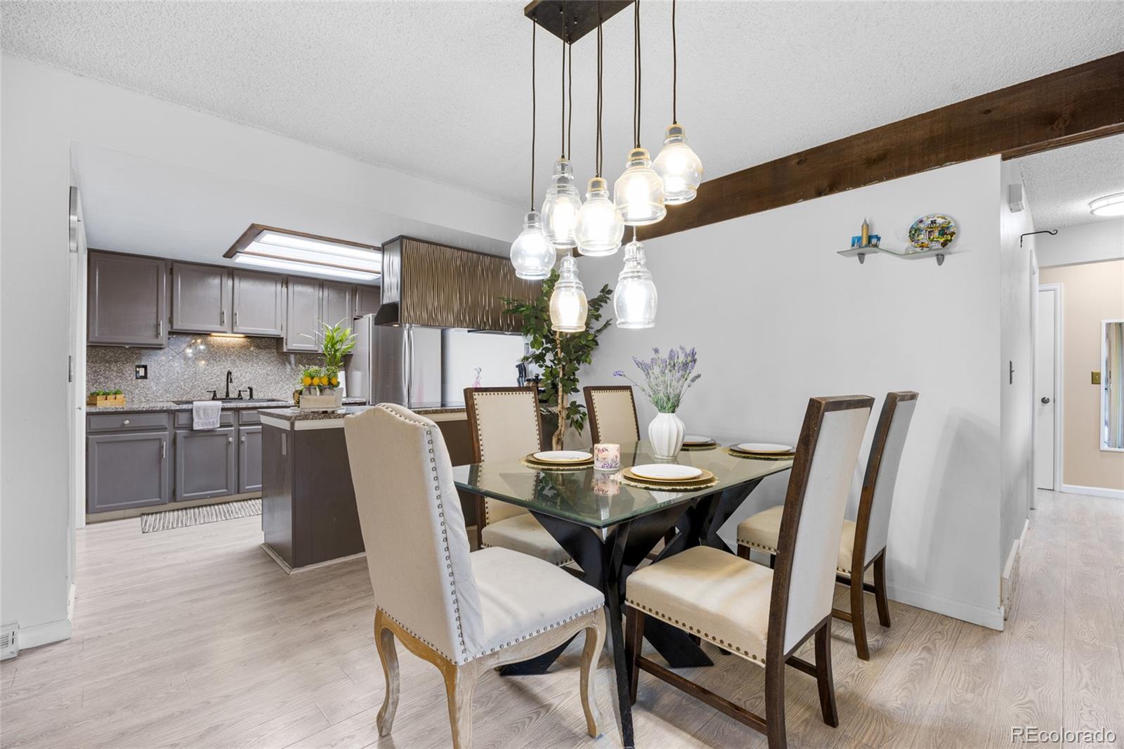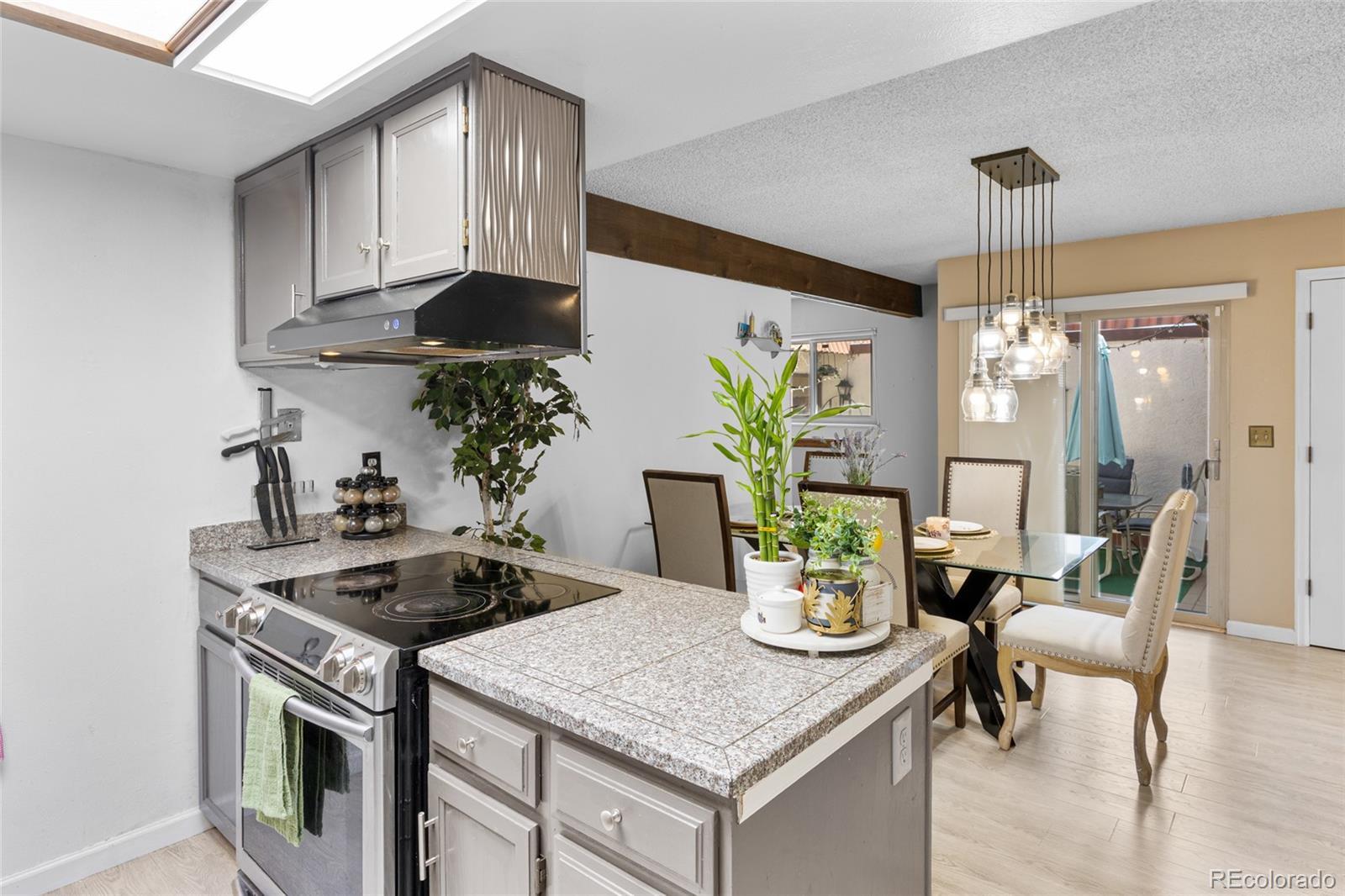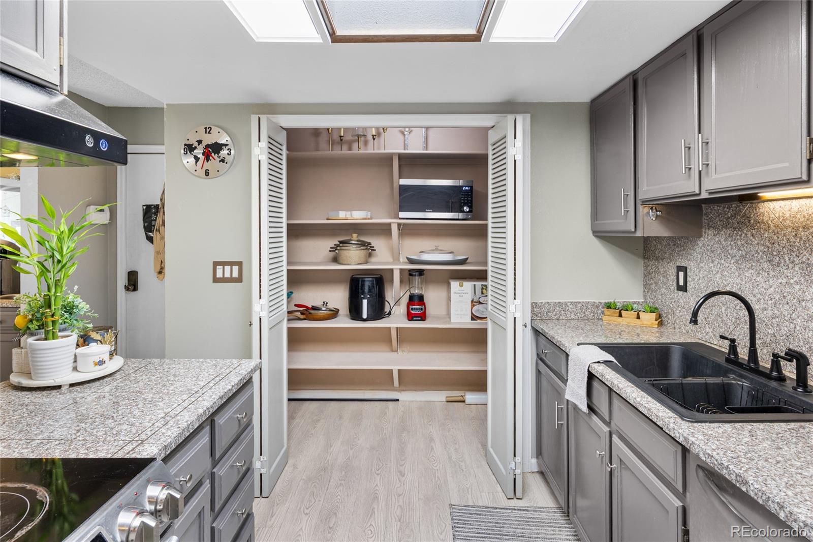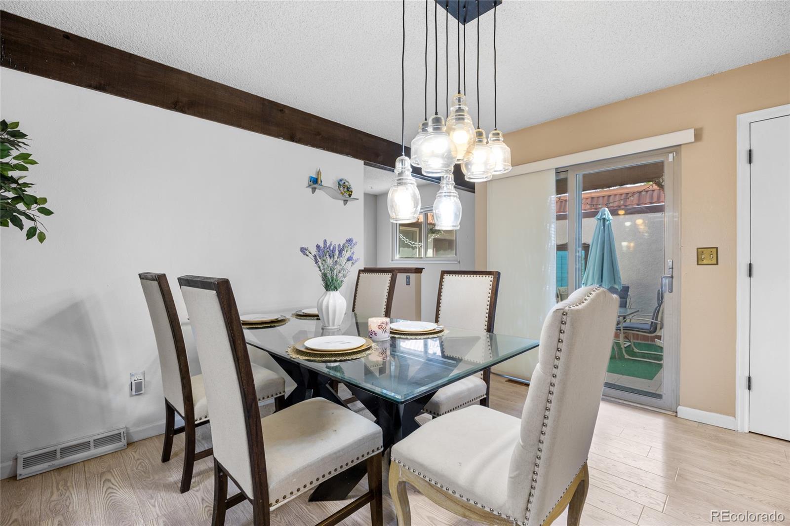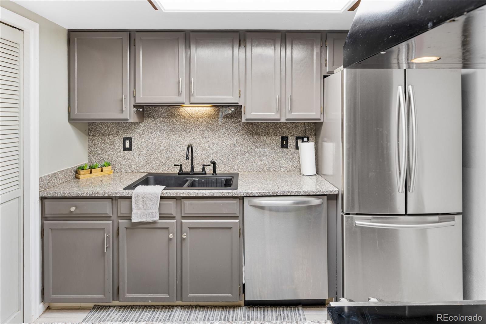 Discover the perfect blend of comfort and convenience in this beautifully updated home. Enjoy the benefits of town home living without the burden of an HOA, all within a fantastic neighborhood. Upon entering, you'll immediately notice the meticulous updates: newer paint and updated LVP Waterproof flooring create a fresh, inviting atmosphere. The heart of the home, the updated kitchen, is bathed in natural light from a skylight and boasts a large, spacious pantry. A seamless pass-through connects the kitchen to the dining room, which features a convenient wet bar. From the dining area, step directly into your private outdoor courtyard—an ideal setting for entertaining, hosting barbecues, or simply savoring Colorado nights. The courtyard flows into a charming, versatile backyard, complete with landscaping and irrigation for low-maintenance appeal This home truly lives like a single-family residence, starting with its attached two-car garage that includes a practical bump-out workspace and ample storage. On the main floor, the primary suite offers a private sanctuary with an attached bathroom featuring his-and-hers sinks, abundant natural light, and a generously sized walk-in closet. A well-appointed secondary bedroom provides serene views of your private outdoor oasis. The finished basement provides a spacious main room and a versatile area that can easily serve as a non-conforming third bedroom—perfect for guests with its adjacent three-quarter bath. Currently, it functions as a quiet office, home gym, and child's play area, with plenty of extra storage. The possibilities are endless! Located in a prime spot, you're just a short walk to Peoria Hills Park, along with numerous other parks, trails, and fields. Shopping centers, malls, and public transportation options are all conveniently close by. Don't miss the chance to make this exceptional property your next home or investment. Schedule your private showing today!