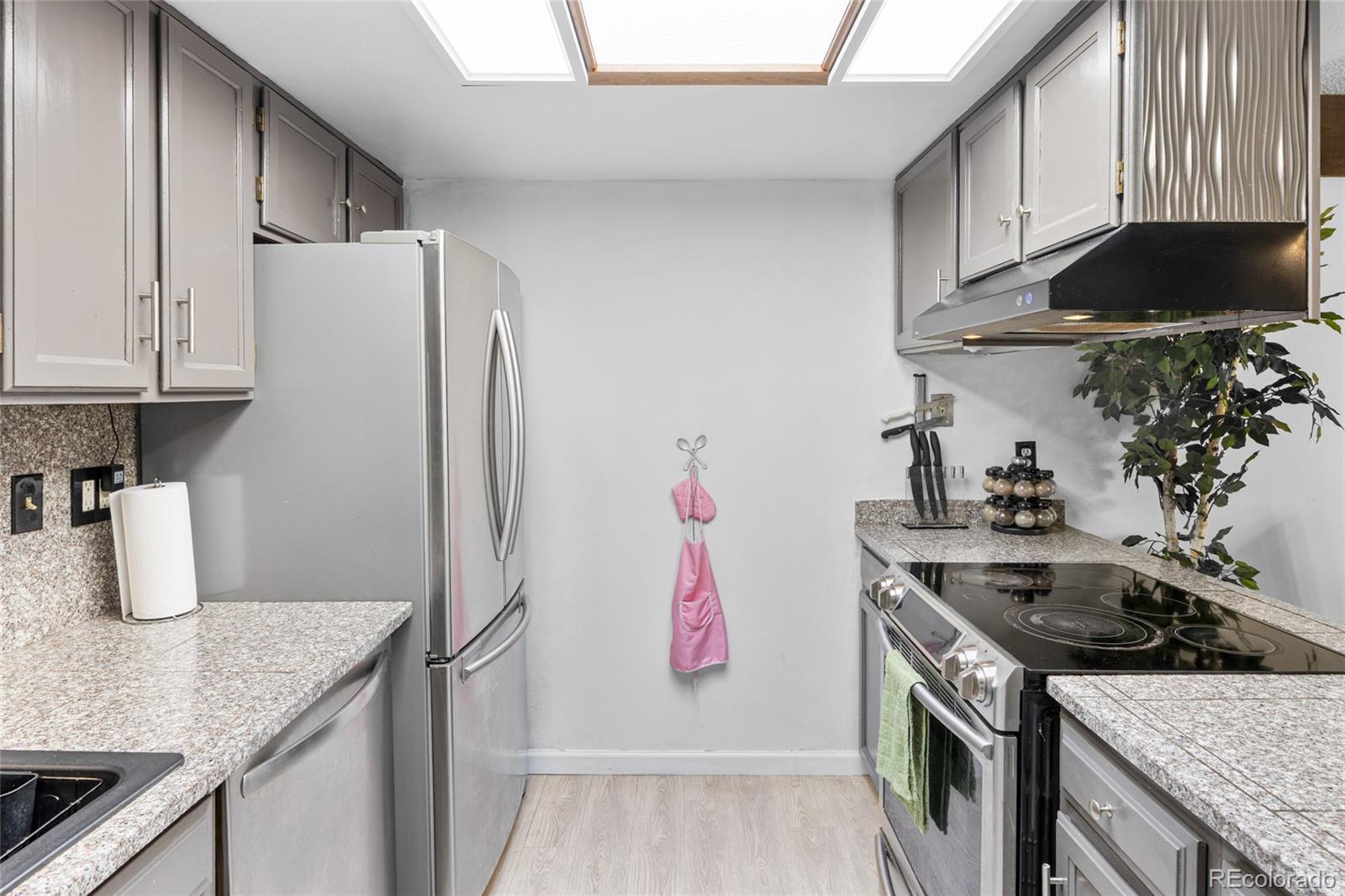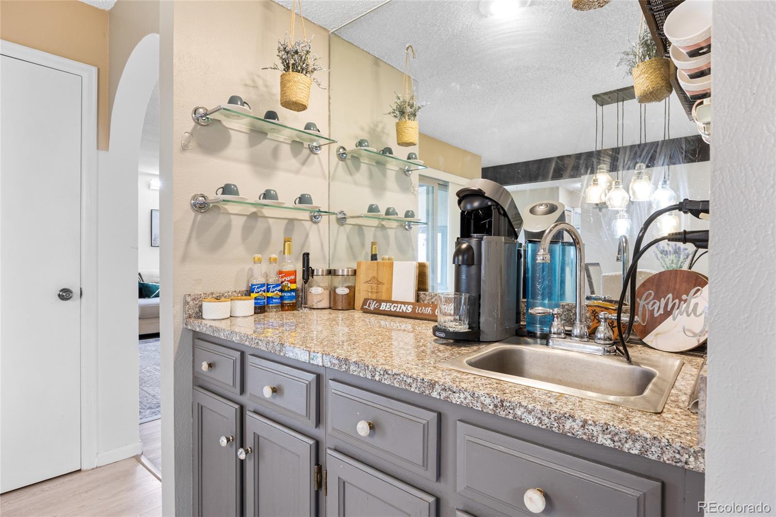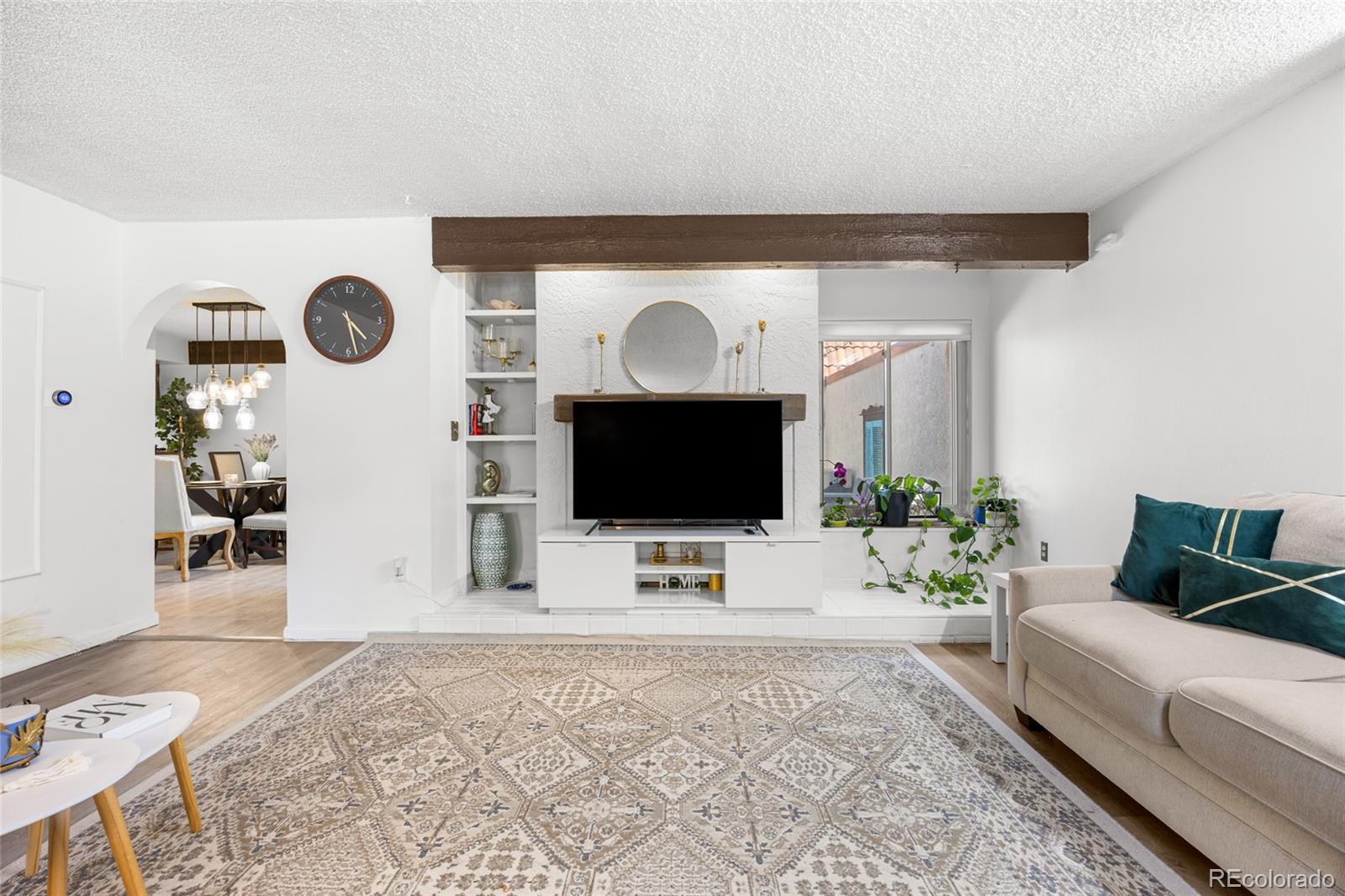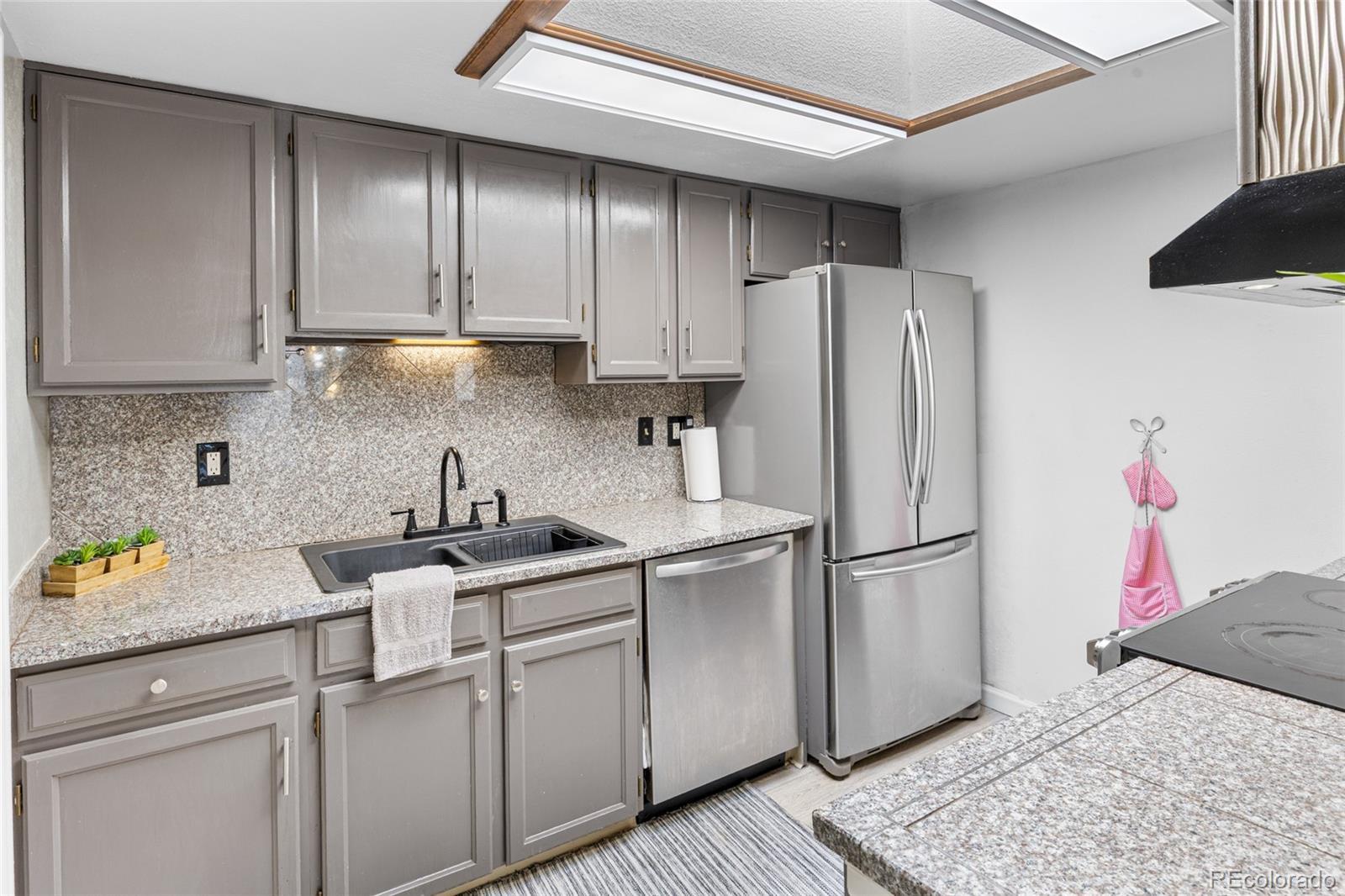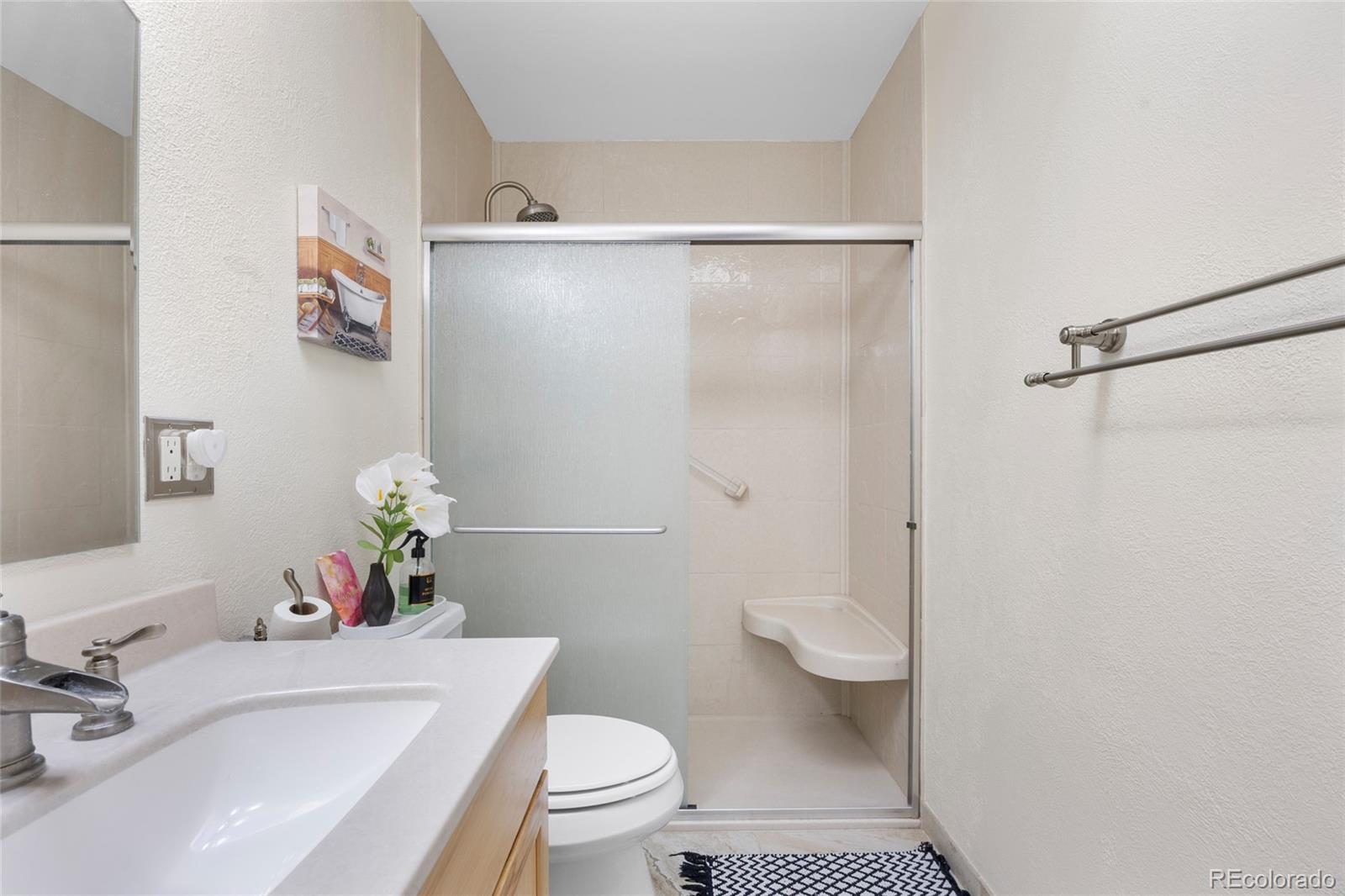 Discover the perfect blend of comfort and convenience in this beautifully updated home. Enjoy the benefits of town home living without the burden of an HOA, all within a fantastic neighborhood. Upon entering, you'll immediately notice the meticulous updates: newer paint and updated LVP Waterproof flooring create a fresh, inviting atmosphere. The heart of the home, the updated kitchen, is bathed in natural light from a skylight and boasts a large, spacious pantry. A seamless pass-through connects the kitchen to the dining room, which features a convenient wet bar. From the dining area, step directly into your private outdoor courtyard—an ideal setting for entertaining, hosting barbecues, or simply savoring Colorado nights. The courtyard flows into a charming, versatile backyard, complete with landscaping and irrigation for low-maintenance appeal This home truly lives like a single-family residence, starting with its attached two-car garage that includes a practical bump-out workspace and ample storage. On the main floor, the primary suite offers a private sanctuary with an attached bathroom featuring his-and-hers sinks, abundant natural light, and a generously sized walk-in closet. A well-appointed secondary bedroom provides serene views of your private outdoor oasis. The finished basement provides a spacious main room and a versatile area that can easily serve as a non-conforming third bedroom—perfect for guests with its adjacent three-quarter bath. Currently, it functions as a quiet office, home gym, and child's play area, with plenty of extra storage. The possibilities are endless! Located in a prime spot, you're just a short walk to Peoria Hills Park, along with numerous other parks, trails, and fields. Shopping centers, malls, and public transportation options are all conveniently close by. Don't miss the chance to make this exceptional property your next home or investment. Schedule your private showing today!