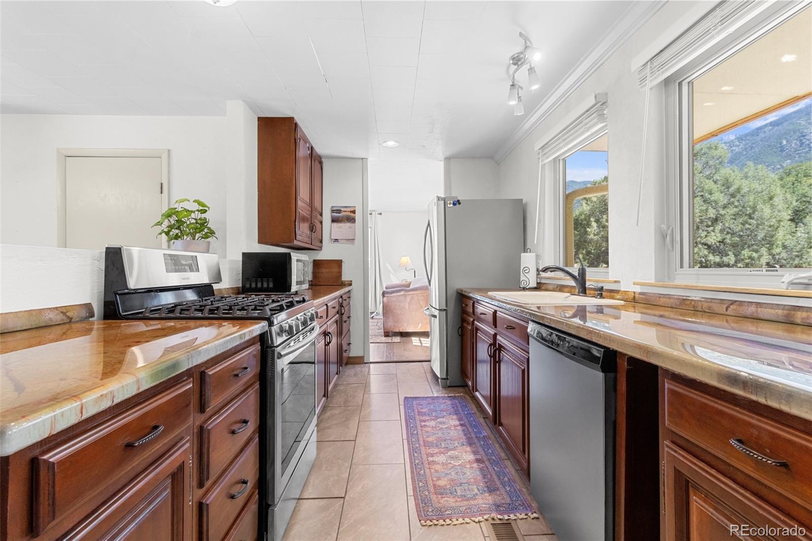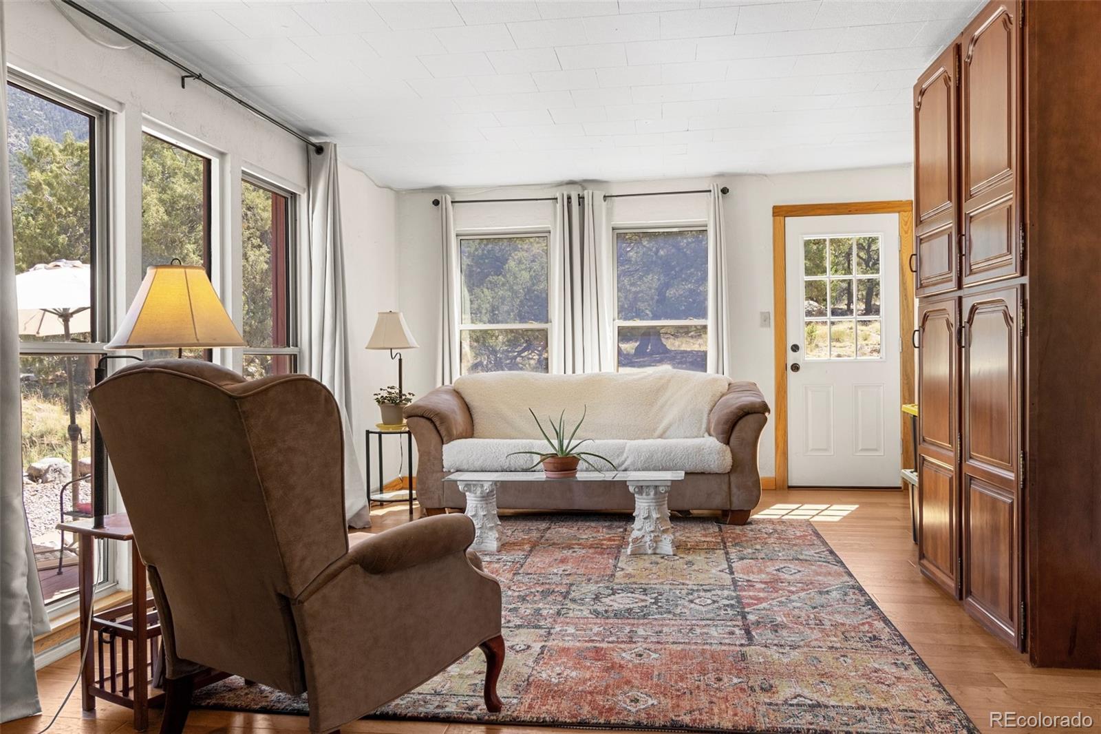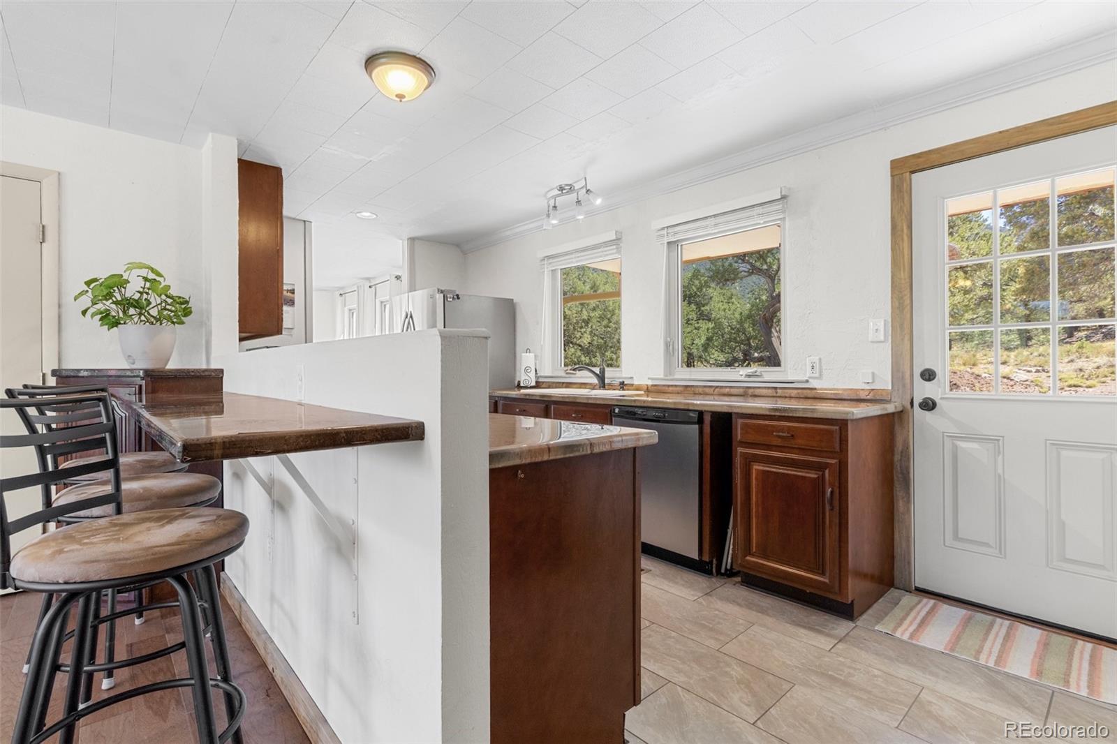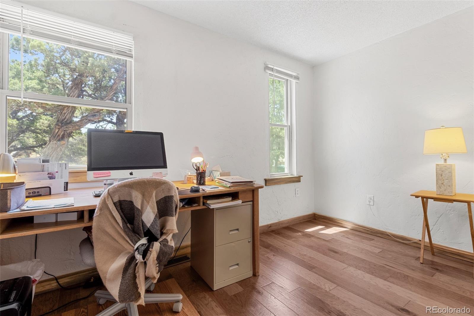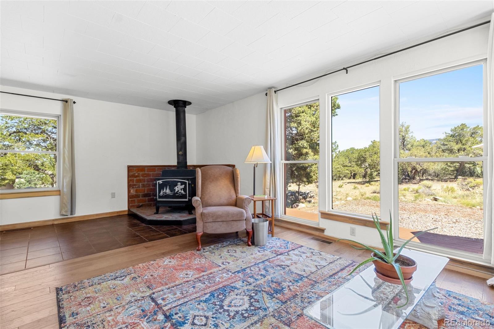 Privacy & affordability await atop a bucolic cul-de-sac surrounded by nature on a serene, wooded lot. Extensively updated & lovingly maintained, this 1400sf 3BD/1.75BA rancher includes landscaped grounds, 240sf wraparound deck & 288sf studio/shop. Classic 1-level layout offers easy living, abundant windows bathe the interior w/ light. Views of surrounding pinon-juniper woodlands provide an everchanging canvas to daily life. Watch wildlife & weather change w/ the seasons. Arise to peaceful sights & sounds of daybreak, w/ morning light streaming through new windows, illuminating custom epoxy counters & wood accents. The home received many updates when moved to the Baca in 1985 & many more were made over the years: in 2019, new fridge, range-oven, washer, dryer, cherry cabinets, handmade faux stone counters, floors, exterior doors & windows (not all), composite decking; in 2020, new studio/shop & Firewise mitigation; in 2022, new Fischer Papa Bear wood stove, tank H2O heater, enhanced insulation (R56 ceiling, R30 floor) & radon mitigation; in 2023, new High-Efficiency LP furnace, primary bathroom w/ tile & in-floor heat. The spacious living room has mtn views, cozy wood stove & built-in storage. Illuminated by big windows, long & lustrous countertops add a fancy touch to the kitchen, w/ ample room to cook & updated stainless appliances. The den/dining room has counter seating & office nook. The laundry closet has extra storage for dry goods. A hallway separates living & sleeping areas. The full guest bath has dbl faux-stone vanity. The primary suite has spacious bedroom, big closet & new 3/4BA w/ dbl vanity. 2 more bedrooms offer flexibility & space for guests, each w/ good-sized closet. Coat, utility, laundry & linen closets. HE Forced-air heat can be adapted for A/C in the future, if needed. Low-maintenance metal roof & composite decking. Well-treated live-edge wood siding w/ custom "Dark Sky" trim on the front side. Don't miss out: call now to schedule a tour!