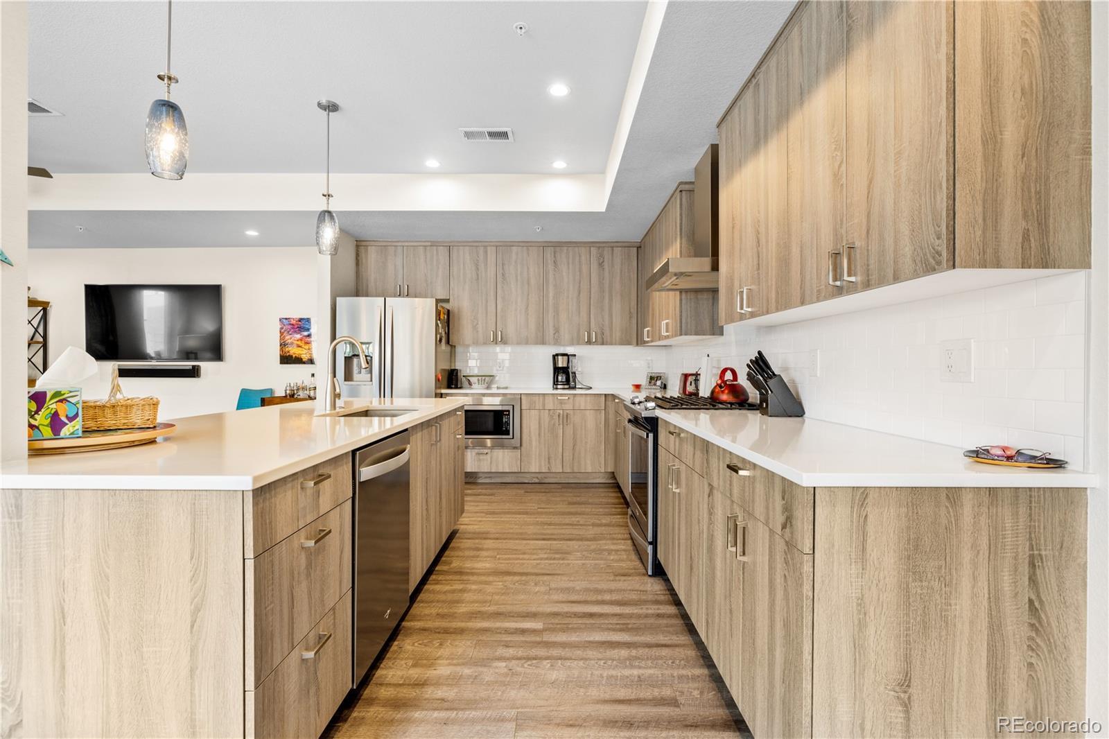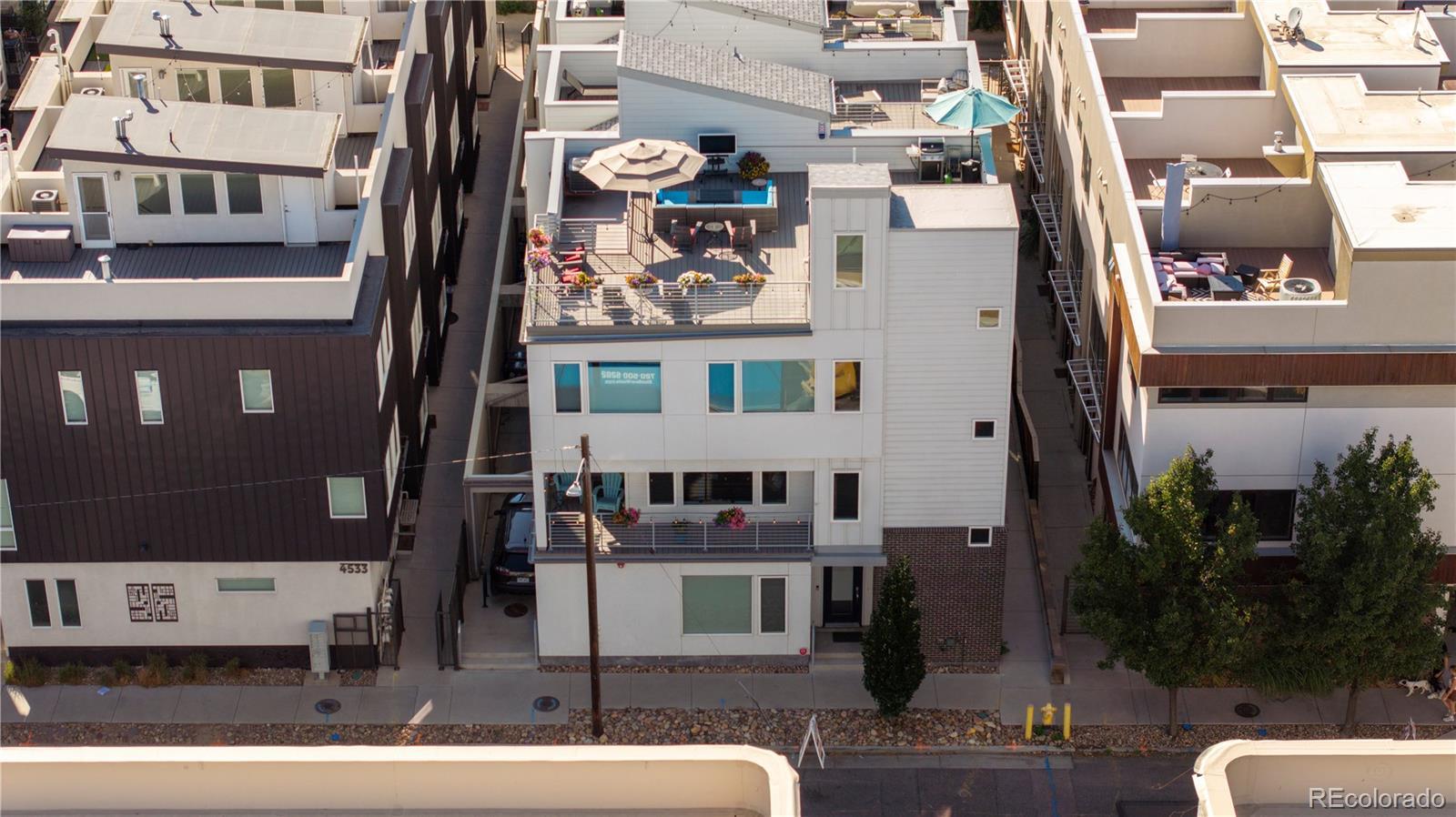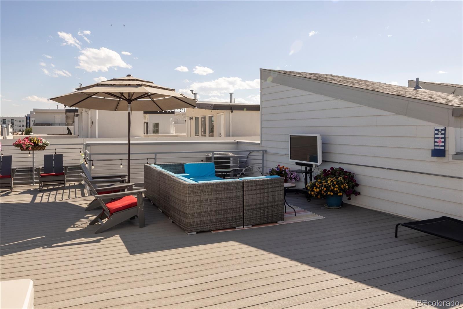 Entertainers Dream ~ Imagine hosting your family & friends on the spacious rooftop deck this spring & summer! During the cooler months, the spacious living/dining/kitchen rooms have plenty of room for hosting! Best in show on Tennyson Street in the Berkeley neighborhood! This is the largest street facing townhouse you will find on Tennyson Street at 2381 sq ft with a roof top deck that is just under 900 square feet of exceptional outdoor living space. To the west you have beautiful mountain views where you can watch colorful sunsets all summer long; looking to the east you will find you are in the heart of everything Tennyson Street has to offer. Upon entering you will notice a bright bedroom or home office, plus a full bath. The main floor is so open and spacious with a large dining area, living room and kitchen with storage galore; a half bath and large walk in pantry finish off this floor of the home. The main floor wrap around deck is a great spot to relax and watch the goings on of Tennyson Street. Up on the 3rd floor you will first notice the flex space that can be used as a home office, reading nook, or workout space. The generous primary suite will not disappoint walk a in closet, 5 piece bathroom that feels like a spa plus an additional closet. This floor of the home also boasts a large 2nd bedroom with five piece attached bath, and the laundry room. The home is amazing and the location even better...Tennyson Street is filled with restaurants, breweries, bars, coffee shops, galleries, salons, shops and even an indoor golf club. You are going to love living in this one of a kind townhouse! Construction across the street was completed in 2025.